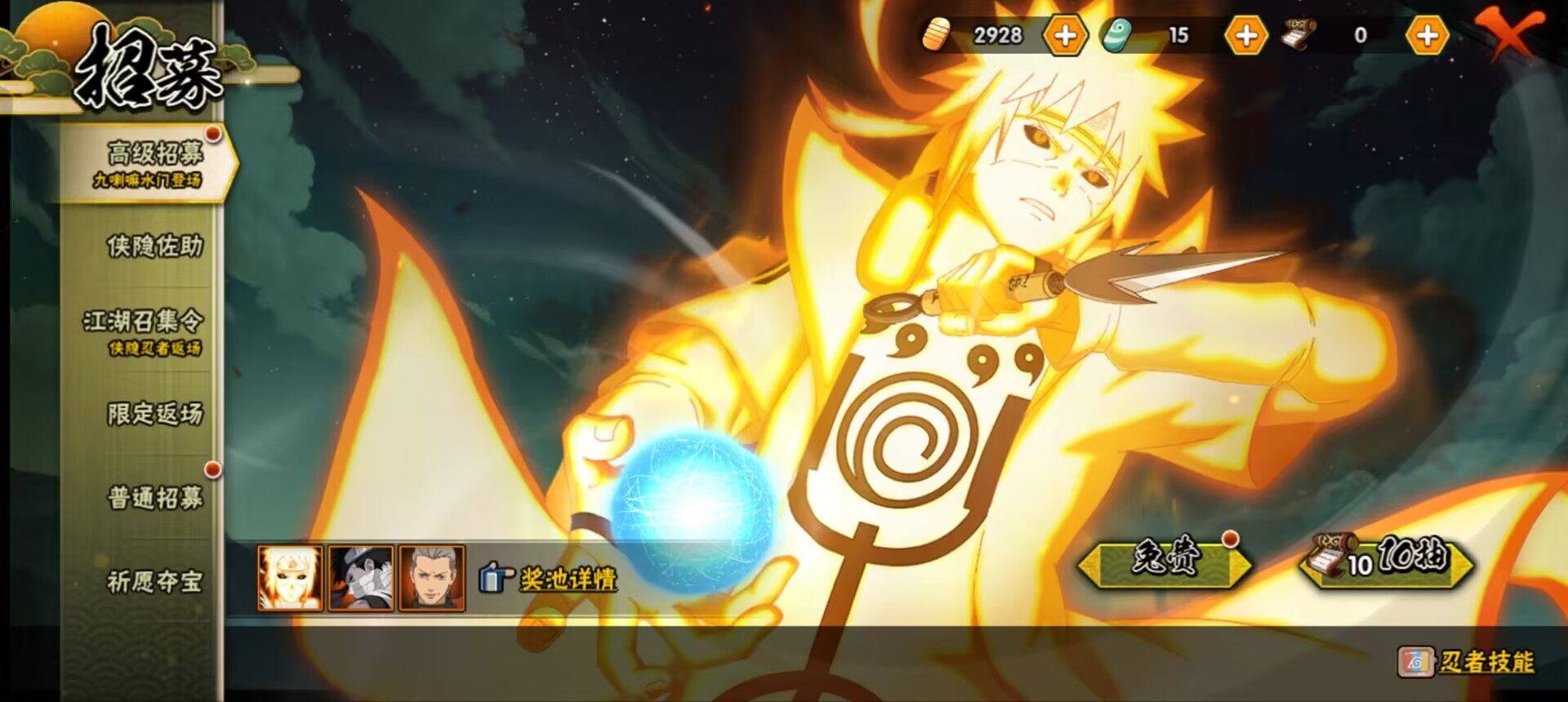 【S忍者】,宇智波佐助「永恒万花筒」,春野樱「忍界大战」,自来也「舞之豪杰」,漩涡鸣人「暴怒·第六尾」,宇智波鼬「秽土转生」,波风水门「秽土转生」,宇智波鼬「须佐能乎」,佩恩「天道」,波风水门,大蛇丸,