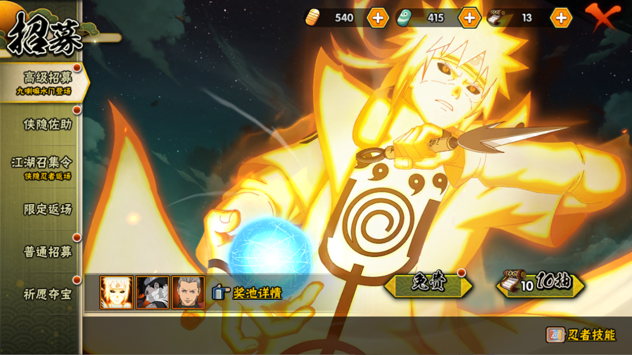 【S忍者】,宇智波止水「须佐能乎」,艾「忍界大战」,大筒木桃式,宇智波斑「秽土转生·解」,千手柱间「木叶创立」,宇智波佐助「永恒万花筒」,神秘面具男「红夜之刃」,春野樱「忍界大战」,漩涡鸣人「九喇嘛连结」,宇智波斑「木叶创立」,宇智波带土「忍界大战」,自来也「舞之豪杰」,旗木卡卡西「须佐能乎」,大筒木舍人「最终章」,自来也「传说中的三忍」,漩涡鸣人「暴怒·第六尾」,宇智波斑「白面具」,宇智波鼬「须佐能乎」,佩恩「天道」,波风水门,大蛇丸,纲手,