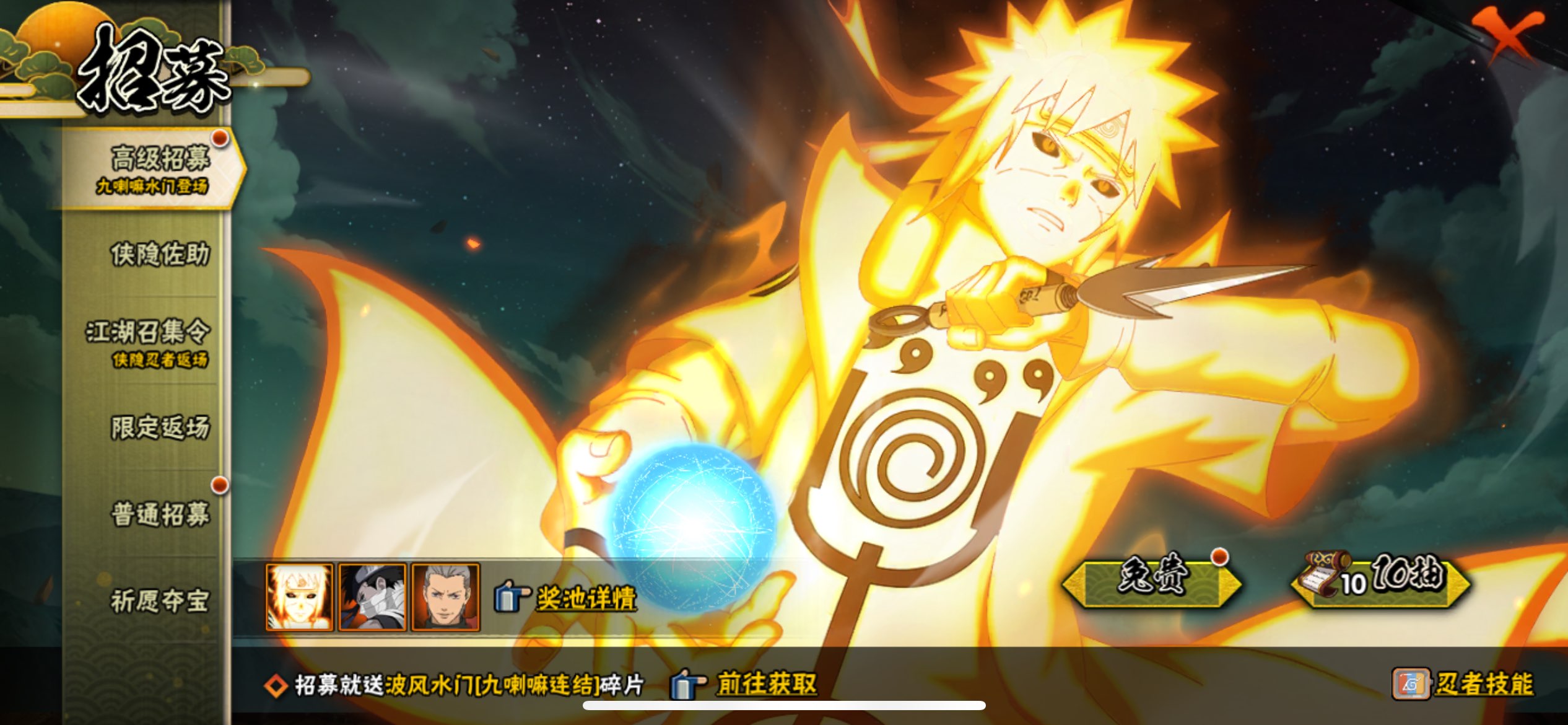 【S忍者】,漩涡鸣人「九喇嘛连结」,宇智波带土「忍界大战」,自来也「舞之豪杰」,宇智波鼬「秽土转生」,药师兜「仙人模式」,宇智波鼬「须佐能乎」,佩恩「天道」,波风水门,大蛇丸,