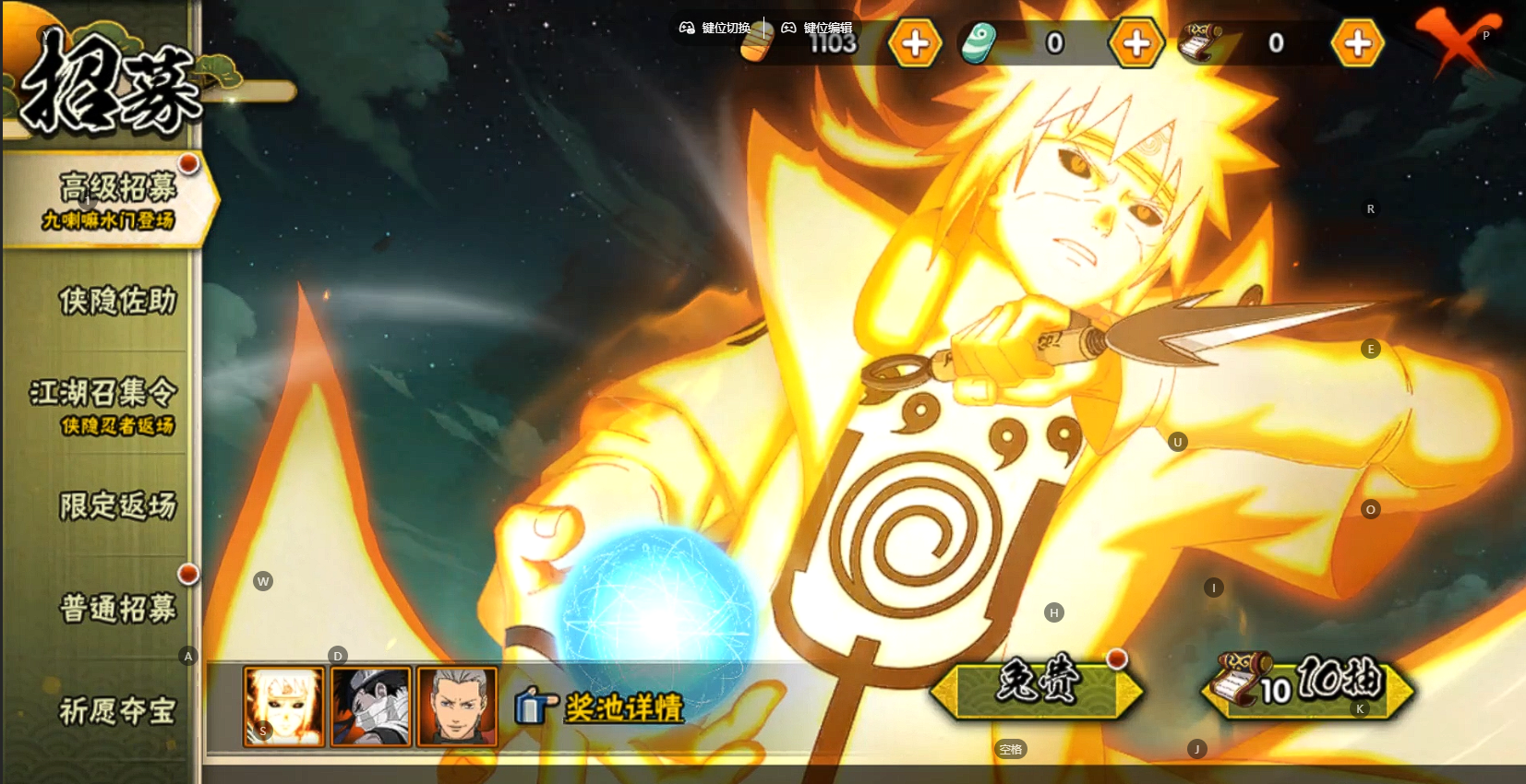 【S忍者】,宇智波斑「秽土转生·解」,宇智波佐助「永恒万花筒」,自来也「舞之豪杰」,旗木卡卡西「须佐能乎」,宇智波鼬「须佐能乎」,佩恩「天道」,波风水门,大蛇丸,