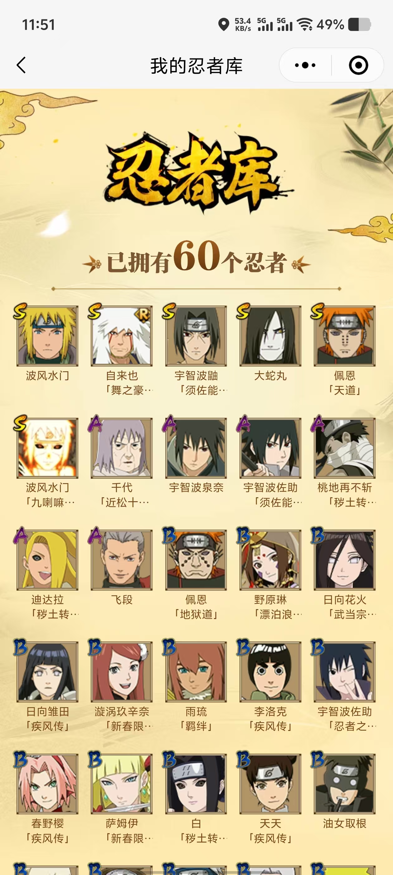PX_2214719-6S忍/6A忍/战力236W/V1/区服1519 【S忍者】,自来也「舞之豪杰」,宇智波鼬「须佐能乎」,佩恩「天道」,波风水门,大蛇丸,波风水门「九喇嘛连结」, 【A忍者】,宇智波泉奈,桃地再不斩「秽土转生」,宇智波佐助「须佐能乎」,迪达拉「秽土转生」,千代「近松十人卫」,飞段,