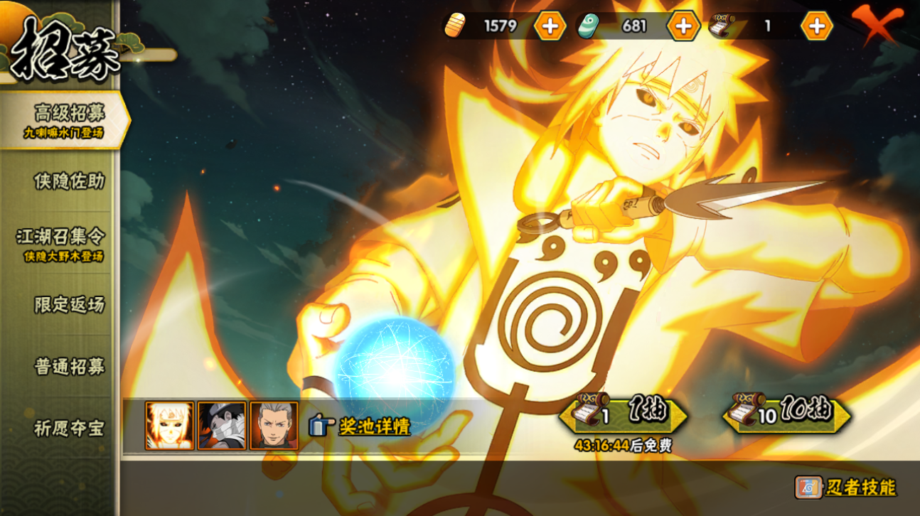 【S忍者】,宇智波止水「须佐能乎」,宇智波斑「秽土转生·解」,漩涡鸣人「九喇嘛连结」,迈特凯「死门」,自来也「舞之豪杰」,旗木卡卡西「须佐能乎」,宇智波斑「白面具」,宇智波鼬「须佐能乎」,佩恩「天道」,波风水门,大蛇丸,