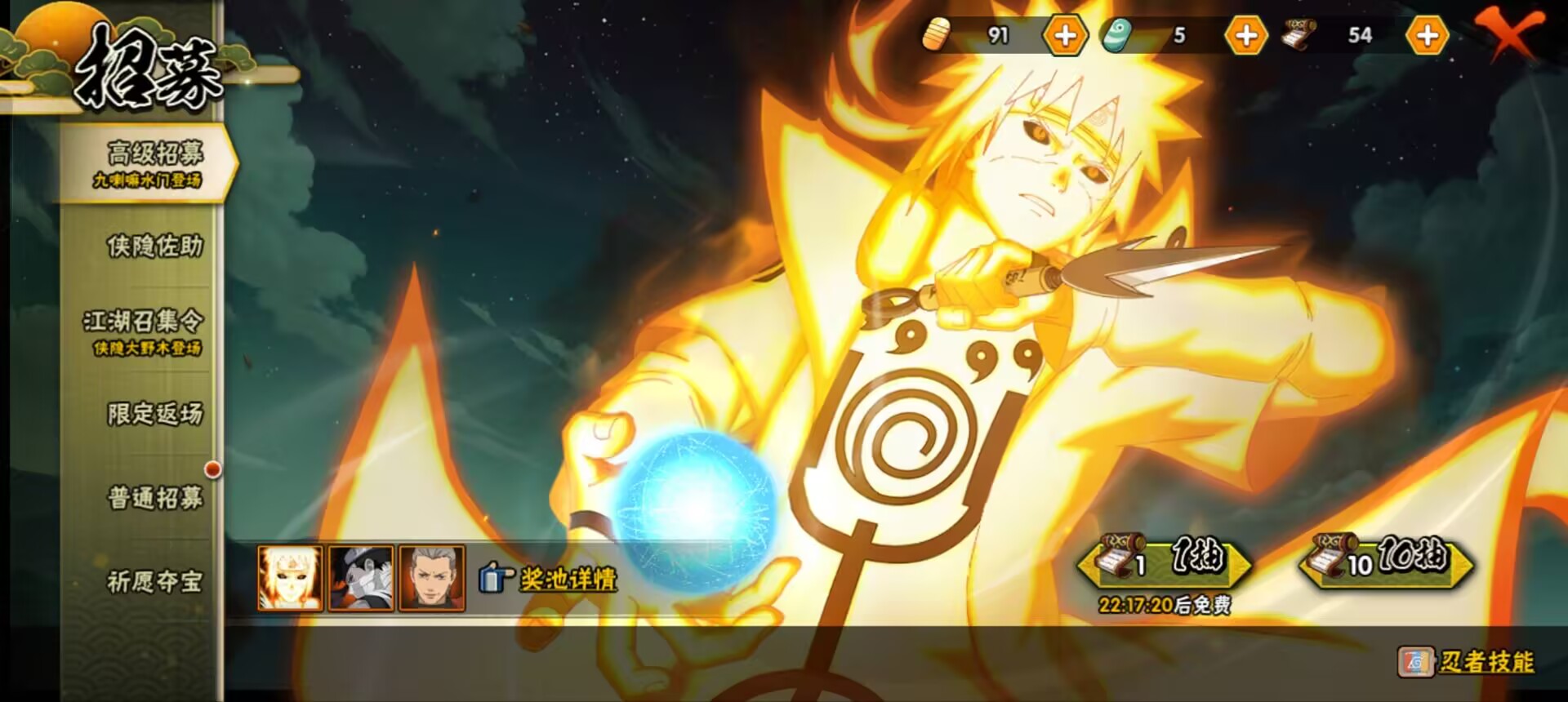 【S忍者】,宇智波斑「秽土转生·解」,宇智波佐助「永恒万花筒」,神秘面具男「红夜之刃」,春野樱「忍界大战」,漩涡鸣人「九喇嘛连结」,自来也「舞之豪杰」,旗木卡卡西「须佐能乎」,自来也「传说中的三忍」,神秘面具男,宇智波鼬「须佐能乎」,佩恩「天道」,波风水门,