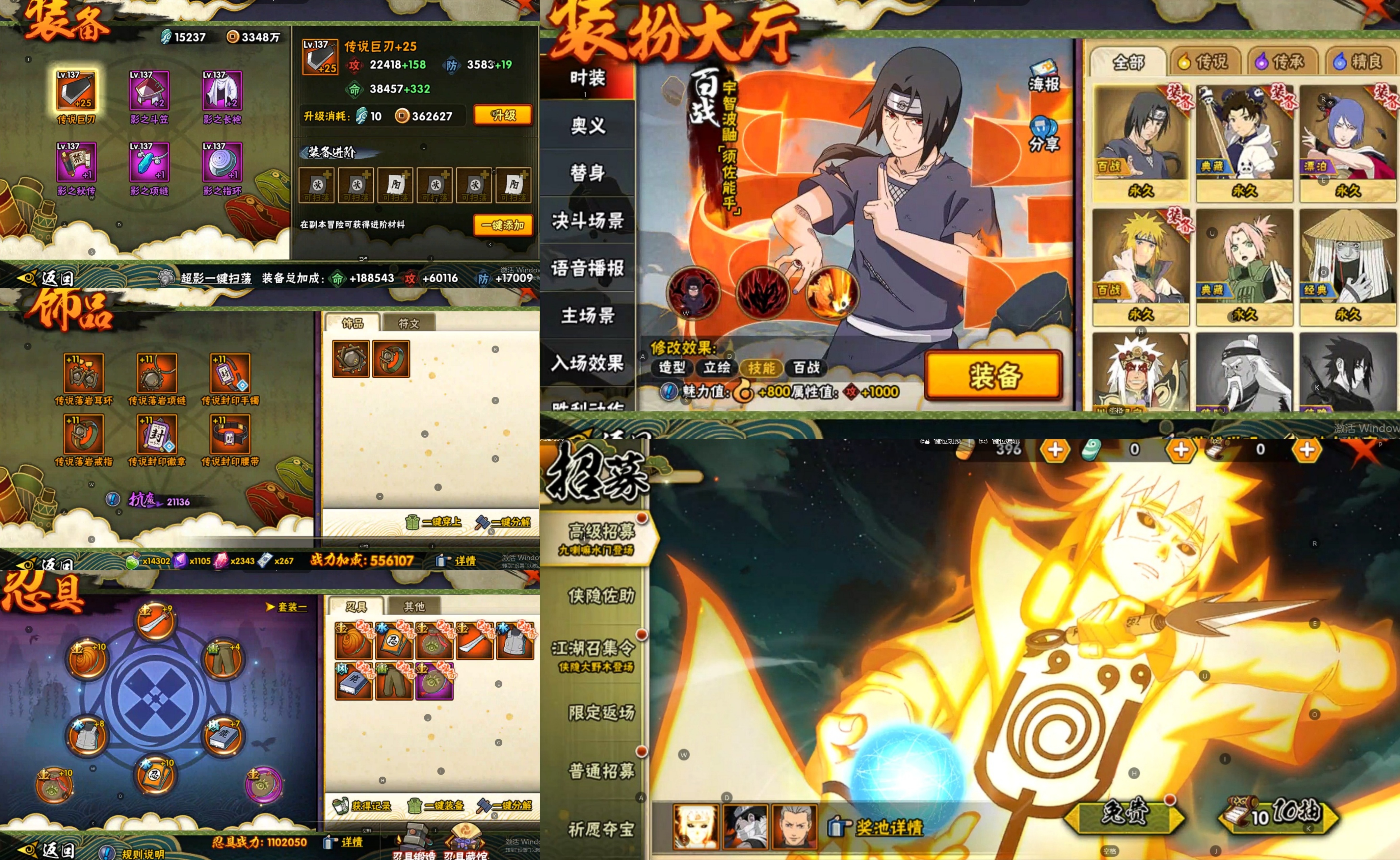 【S忍者】,宇智波佐助「永恒万花筒」,漩涡鸣人「九喇嘛连结」,自来也「舞之豪杰」,宇智波鼬「须佐能乎」,佩恩「天道」,波风水门,