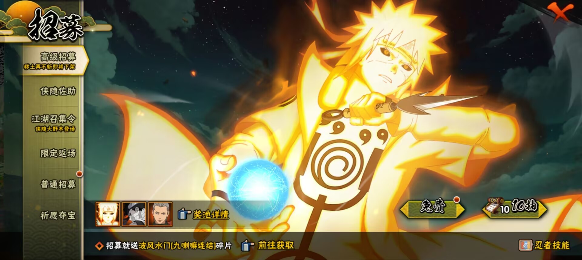 【S忍者】,宇智波斑「秽土转生·解」,宇智波佐助「永恒万花筒」,漩涡鸣人「九喇嘛连结」,迈特凯「死门」,自来也「舞之豪杰」,宇智波斑「秽土转生」,长门「秽土转生」,千手扉间,宇智波鼬「须佐能乎」,佩恩「天道」,波风水门,大蛇丸,