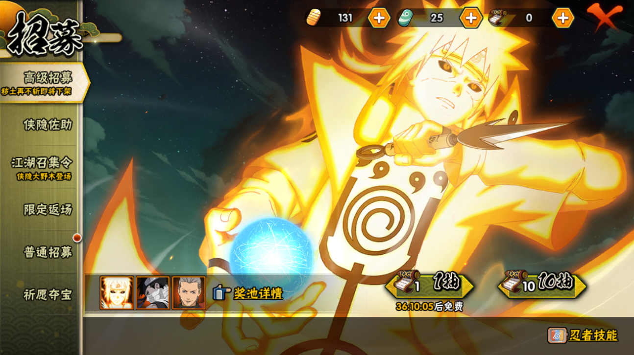 【S忍者】,迈特凯「死门」,自来也「舞之豪杰」,旗木卡卡西「须佐能乎」,自来也「传说中的三忍」,宇智波鼬「须佐能乎」,佩恩「天道」,波风水门,大蛇丸,