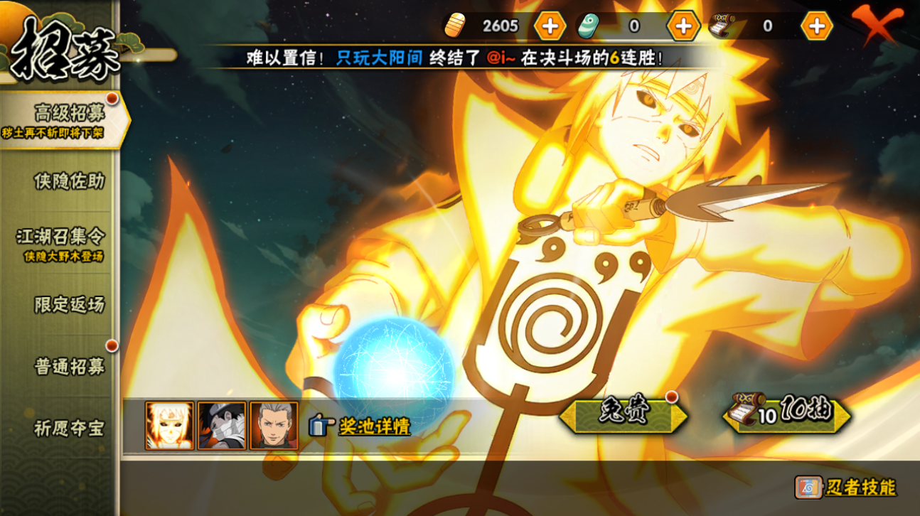 【S忍者】,宇智波斑「秽土转生·解」,宇智波佐助「永恒万花筒」,自来也「舞之豪杰」,旗木卡卡西「须佐能乎」,自来也「传说中的三忍」,宇智波斑「白面具」,宇智波鼬「须佐能乎」,佩恩「天道」,波风水门,波风水门「九喇嘛连结」,