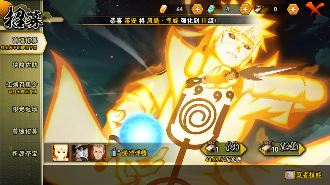 【S忍者】,宇智波止水「须佐能乎」,艾「忍界大战」,宇智波佐助「永恒万花筒」,宇智波带土「忍界大战」,自来也「舞之豪杰」,宇智波斑「白面具」,宇智波鼬「须佐能乎」,佩恩「天道」,波风水门,