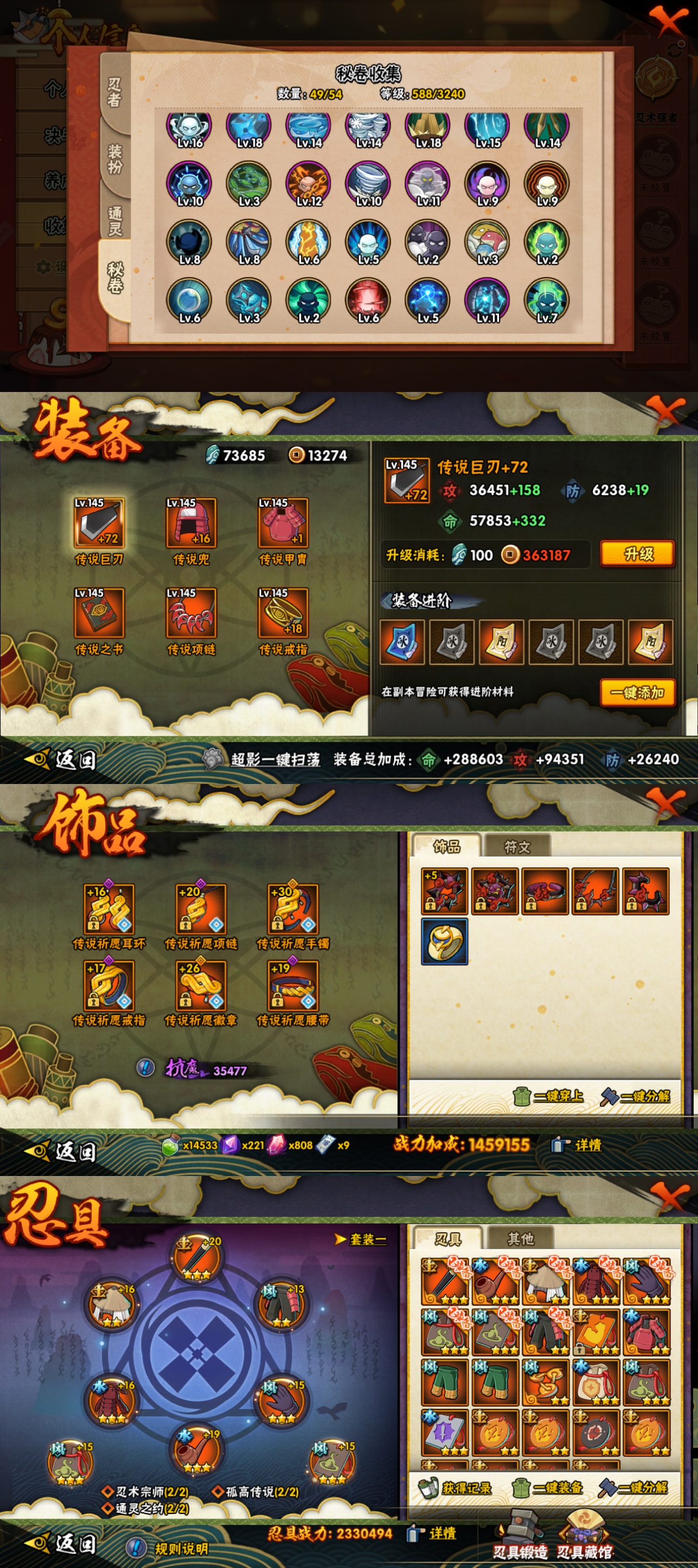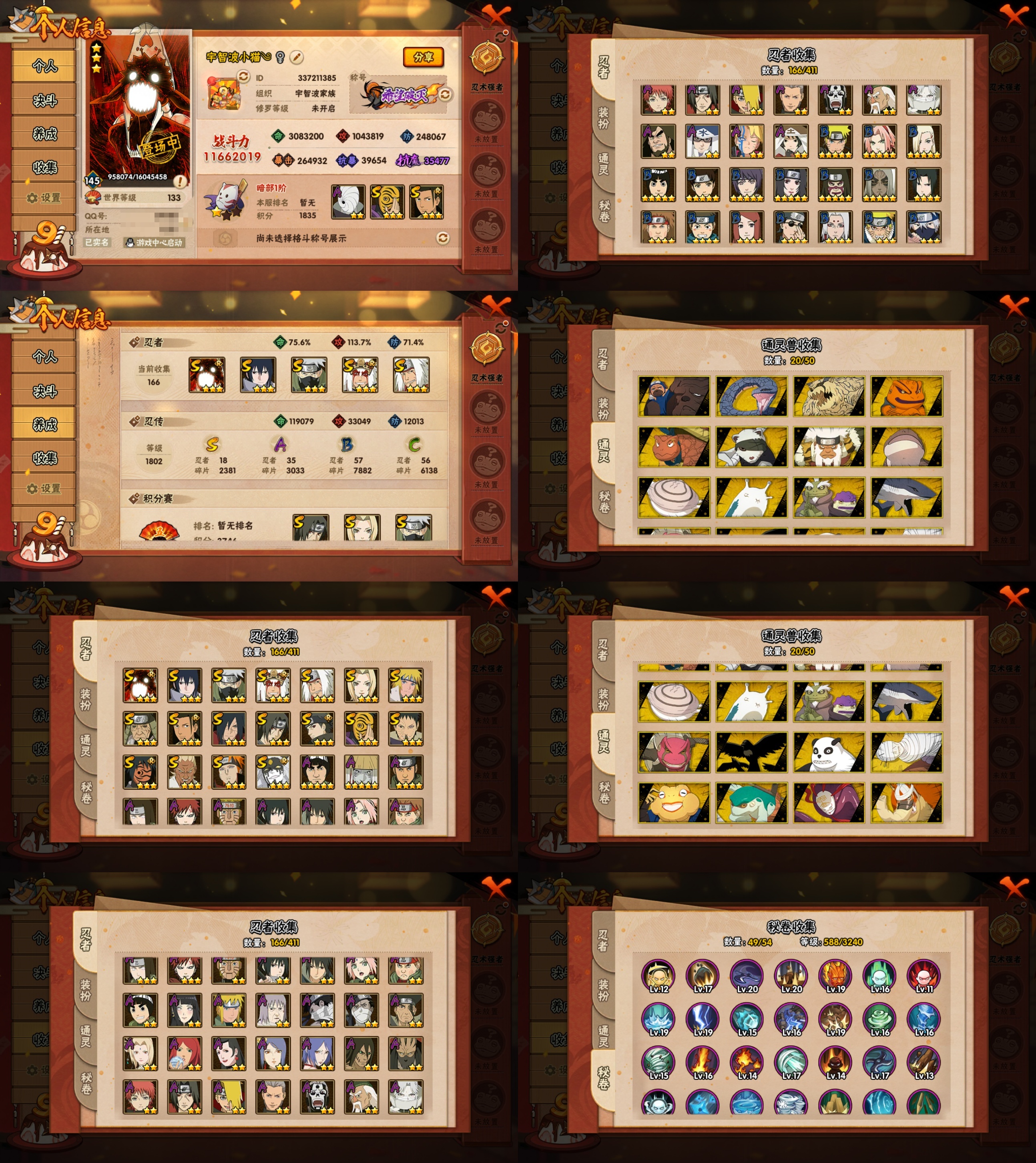 【A忍者】,土台「忍界大战」,纲手「侠隐江湖」,长十郎「六代目水影」,不缘,日向宁次「忍界大战」,漩涡博人「桃式显现」,日向雏田「最终章」,小南「漂泊浪客」,李洛克「忍界大战」,蝎「绯流琥」,宇智波泉奈,神农「羁绊」,桃地再不斩「秽土转生」,角都「秽土转生」,不风,波风水门「青年」,宇智波佐助「须佐能乎」,小南「新春限定」,千代「近松十人卫」,秋道丁次「忍界大战」,春野樱「百豪」,飞段「死司凭血」,飞段,迪达拉,我爱罗「疾风传」,蝎,干柿鬼鲛,宇智波鼬,猿飞阿斯玛,迈特凯,卑留呼「火之意志继承者」,桃地再不斩,