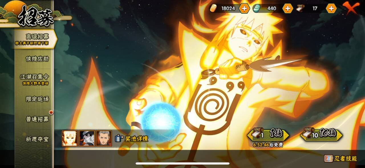 【S忍者】,宇智波止水「须佐能乎」,艾「忍界大战」,大筒木桃式,宇智波斑「秽土转生·解」,千手柱间「木叶创立」,宇智波佐助「永恒万花筒」,神秘面具男「红夜之刃」,春野樱「忍界大战」,大筒木金式,漩涡鸣人「九喇嘛连结」,迈特凯「死门」,自来也「舞之豪杰」,旗木卡卡西「须佐能乎」,大筒木舍人「最终章」,自来也「传说中的三忍」,漩涡鸣人「暴怒·第六尾」,宇智波斑「白面具」,宇智波鼬「须佐能乎」,佩恩「天道」,波风水门,大蛇丸,