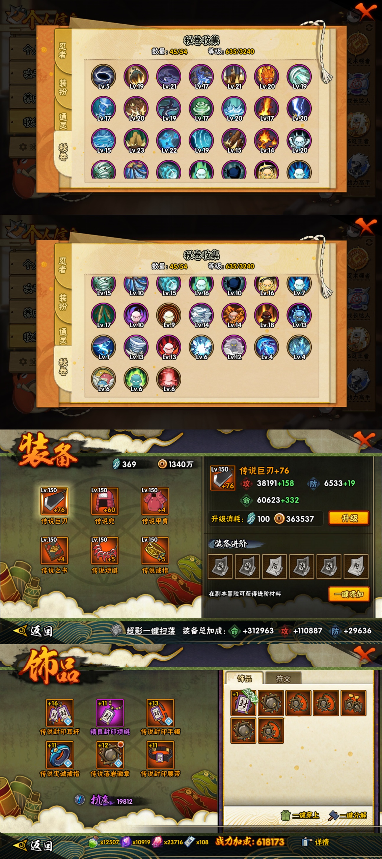 【S忍者】,宇智波止水「须佐能乎」,宇智波斑「秽土转生·解」,宇智波佐助「永恒万花筒」,漩涡鸣人「九喇嘛连结」,大野木「忍界大战」,迈特凯「死门」,宇智波斑「木叶创立」,宇智波带土「忍界大战」,自来也「舞之豪杰」,自来也「传说中的三忍」,宇智波鼬「秽土转生」,药师兜「仙人模式」,宇智波斑「秽土转生」,宇智波斑「白面具」,千手扉间「秽土转生」,波风水门「秽土转生」,无「二代目土影」,金角银角「秽土转生」,猿飞日斩「秽土转生」,长门「秽土转生」,宇智波斑,艾「四代目雷影」,千手扉间,神秘面具男,宇智波鼬「须佐能乎」,佩恩「天道」,波风水门,大蛇丸,自来也,纲手,