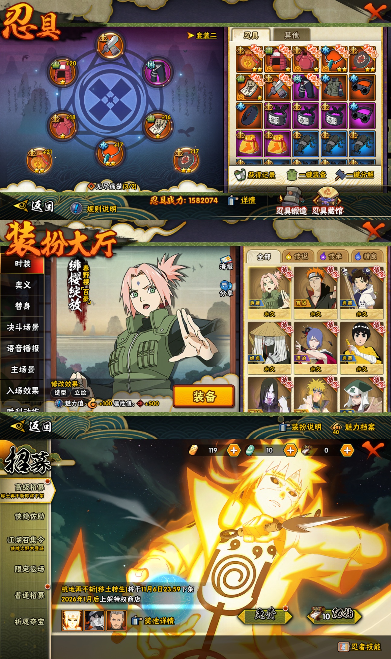 【A忍者】,纲手「侠隐江湖」,长十郎「六代目水影」,日向宁次「忍界大战」,旗木卡卡西「幻之真容」,小南「漂泊浪客」,李洛克「忍界大战」,不动,蝎「绯流琥」,宇智波泉奈,宇智波止水,长门「青年」,艾「青年」,波风水门「青年」,奇拉比「忍界大战」,宇智波止水「新春限定」,宇智波佐助「须佐能乎」,迪达拉「秽土转生」,小南「新春限定」,漩涡鸣人「九尾查克拉」,千代「近松十人卫」,药师兜「半蛇斗篷」,宇智波鼬「新春限定」,宇智波佐助「疾风传咒印」,我爱罗「忍界大战」,小南「夏日泳装」,秋道丁次「忍界大战」,大蛇丸「晓」,春野樱「百豪」,波风水门「新春限定」,照美冥「五代目水影」,宇智波佐助「万花筒写轮眼」,奇拉比,绝,漩涡鸣人「仙人模式」,旗木卡卡西「万花筒写轮眼」,角都「地怨虞」,飞段「死司凭血」,小南,飞段,迪达拉,我爱罗「疾风传」,蝎,干柿鬼鲛,宇智波鼬,猿飞阿斯玛,迈特凯,