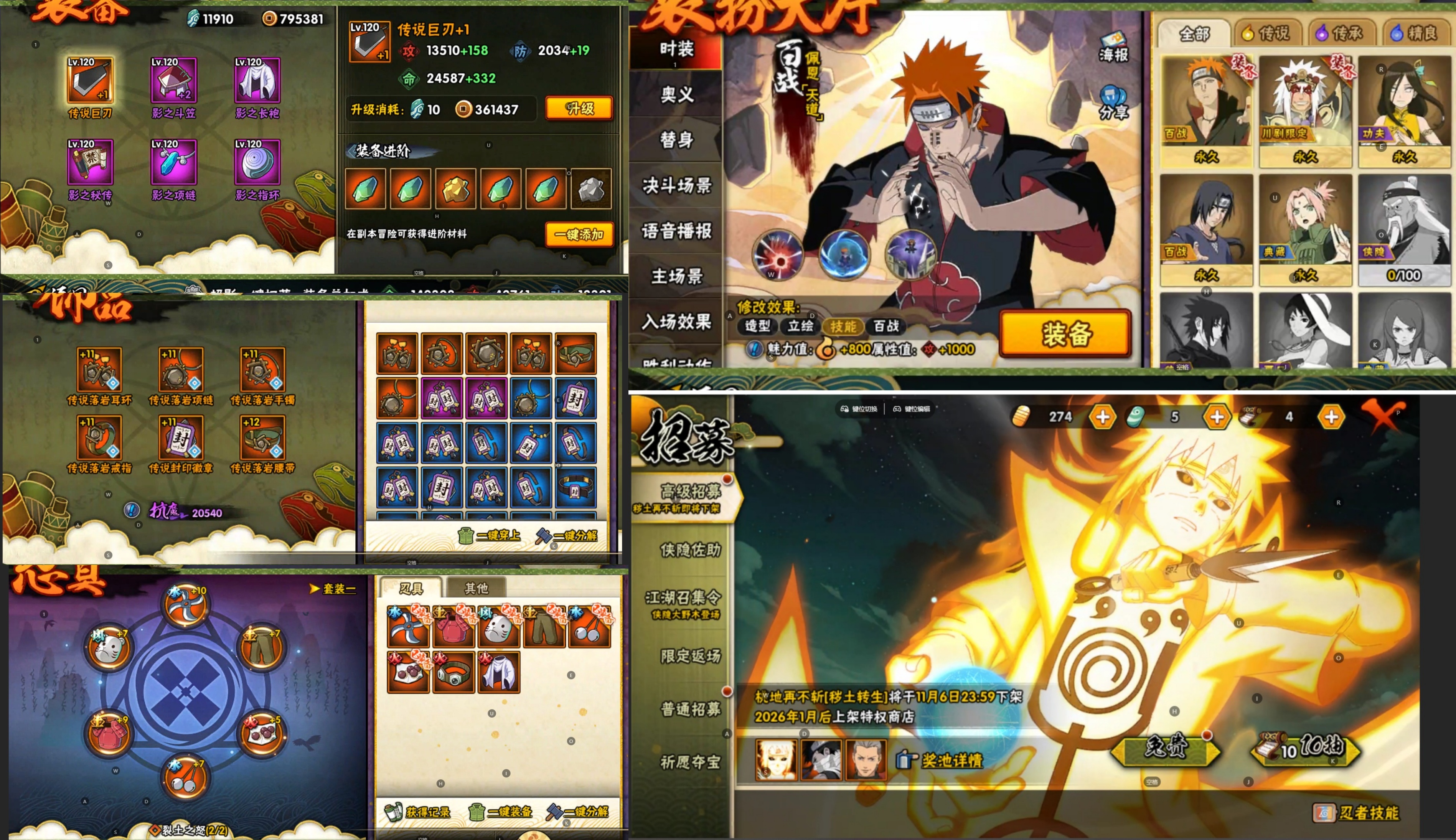 【S忍者】,自来也「舞之豪杰」,漩涡鸣人「暴怒·第六尾」,长门「秽土转生」,宇智波鼬「须佐能乎」,佩恩「天道」,波风水门「九喇嘛连结」,
