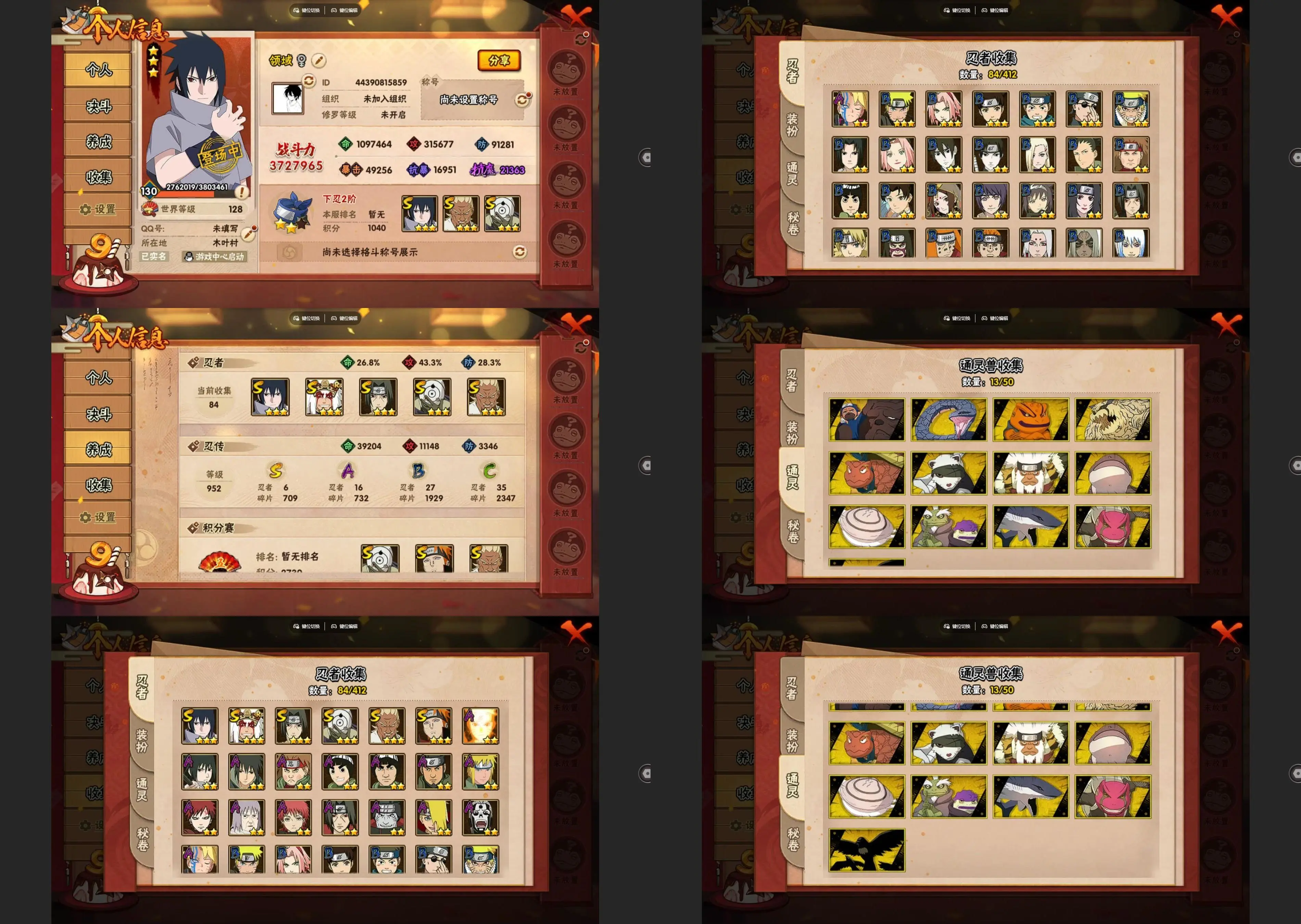 【S忍者】,艾「忍界大战」,宇智波佐助「永恒万花筒」,自来也「舞之豪杰」,宇智波斑「白面具」,宇智波鼬「须佐能乎」,佩恩「天道」,