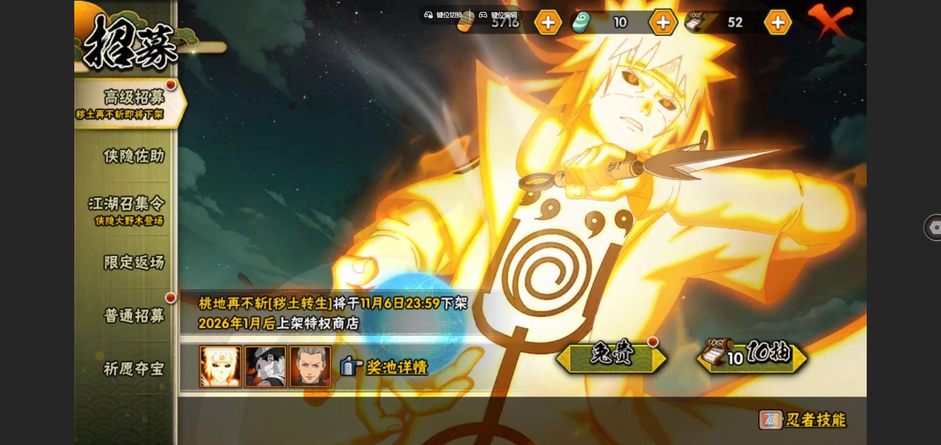 【S忍者】,神秘面具男「红夜之刃」,春野樱「忍界大战」,宇智波带土「忍界大战」,自来也「舞之豪杰」,千手柱间,宇智波鼬「须佐能乎」,佩恩「天道」,波风水门,