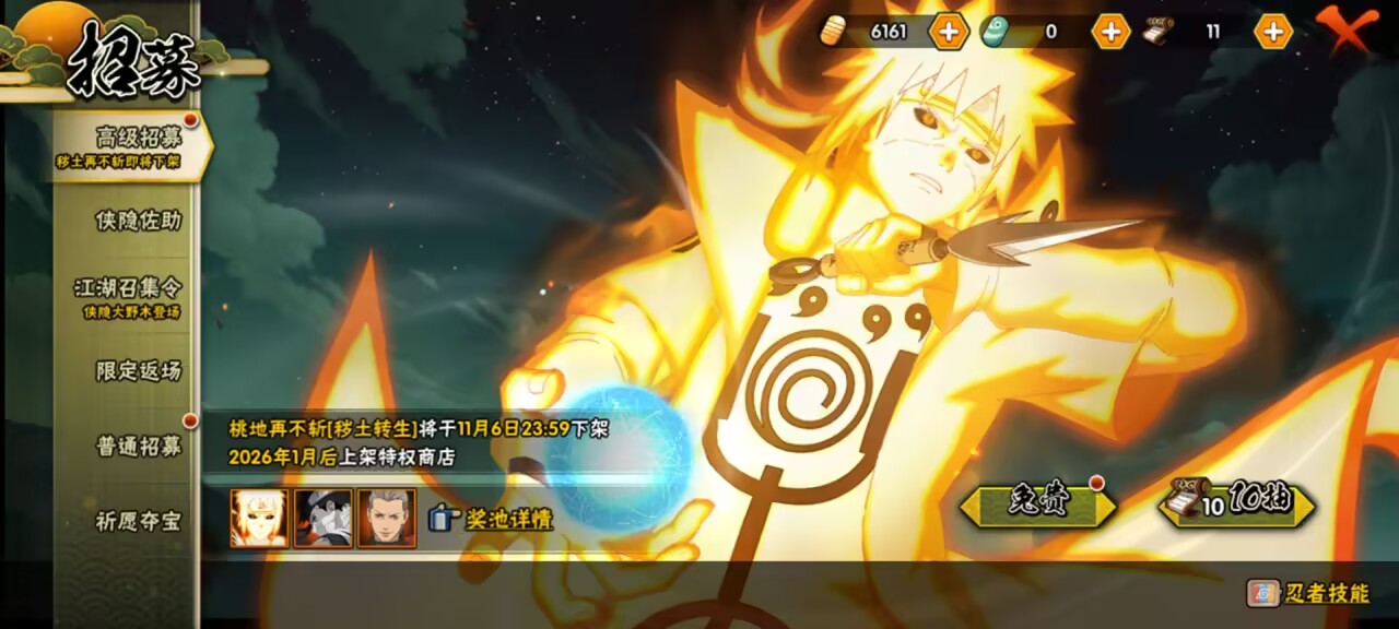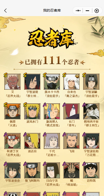 【S忍者】,艾「忍界大战」,宇智波斑「秽土转生·解」,自来也「舞之豪杰」,旗木卡卡西「须佐能乎」,宇智波鼬「须佐能乎」,佩恩「天道」,波风水门,