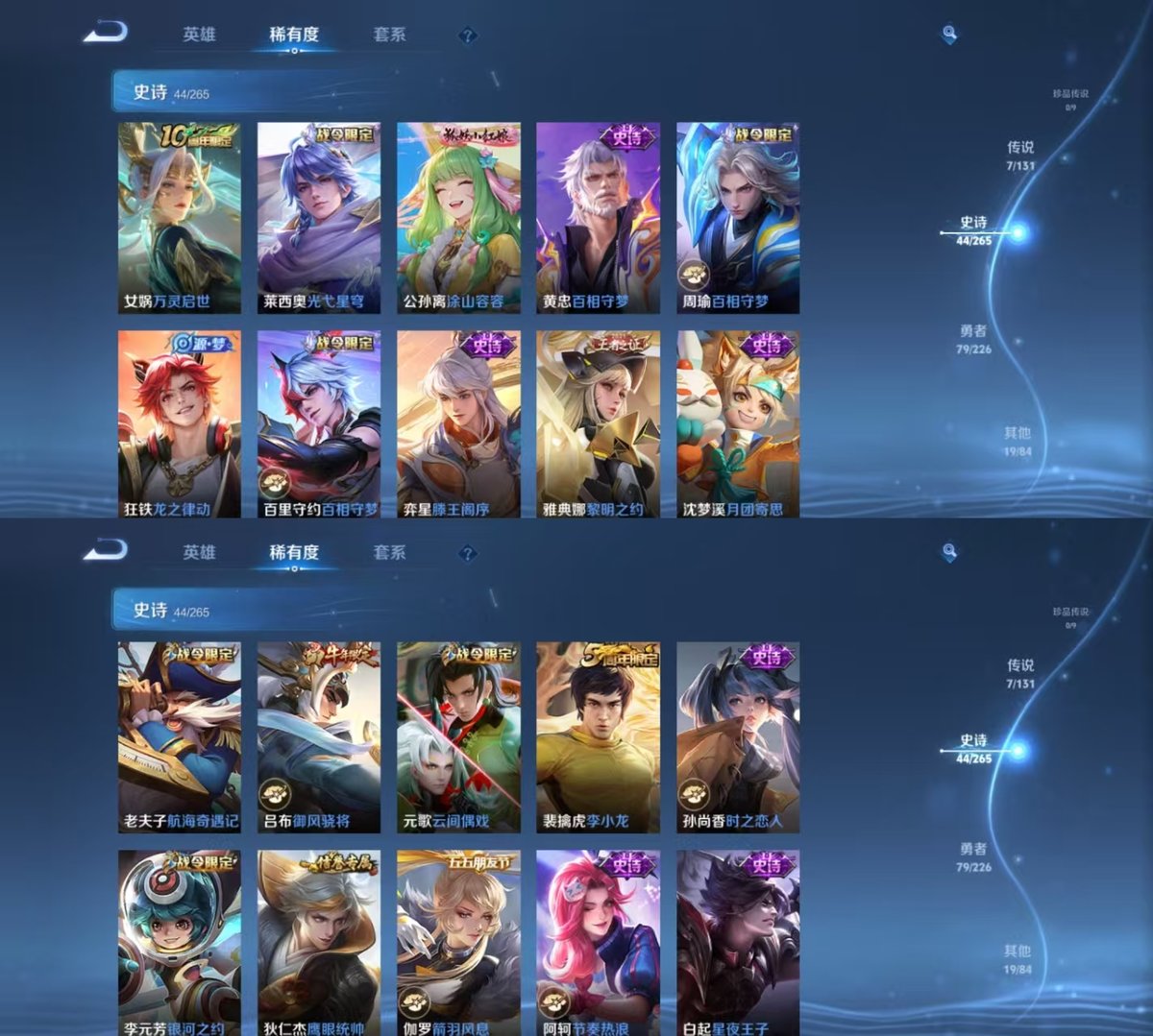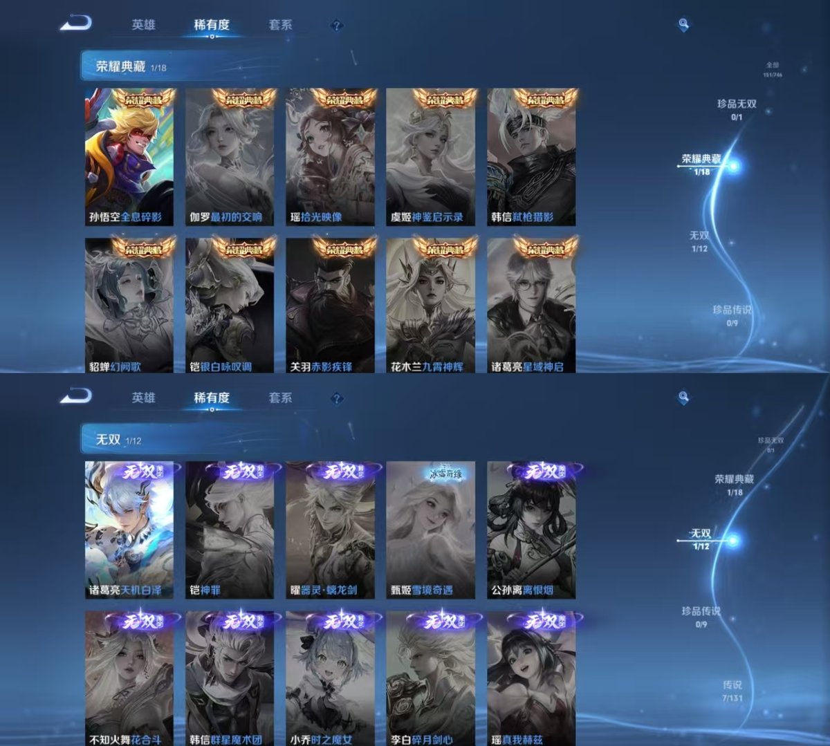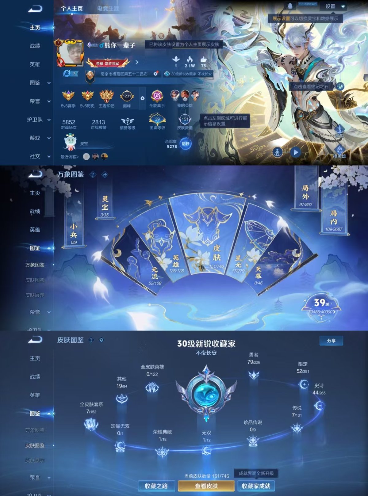 PX_2252396-实名:,可修改,贵族等级:,V7,英雄数:,125,皮肤数:,151,荣耀水晶:,全息碎影,无双皮:,天机白泽,传说皮:,绛天战甲,云霓雀翎,仲夏夜之梦,地狱之眼,妄想实况,神树通天,限定皮:,李小龙,御风骁将,鸣野蒿