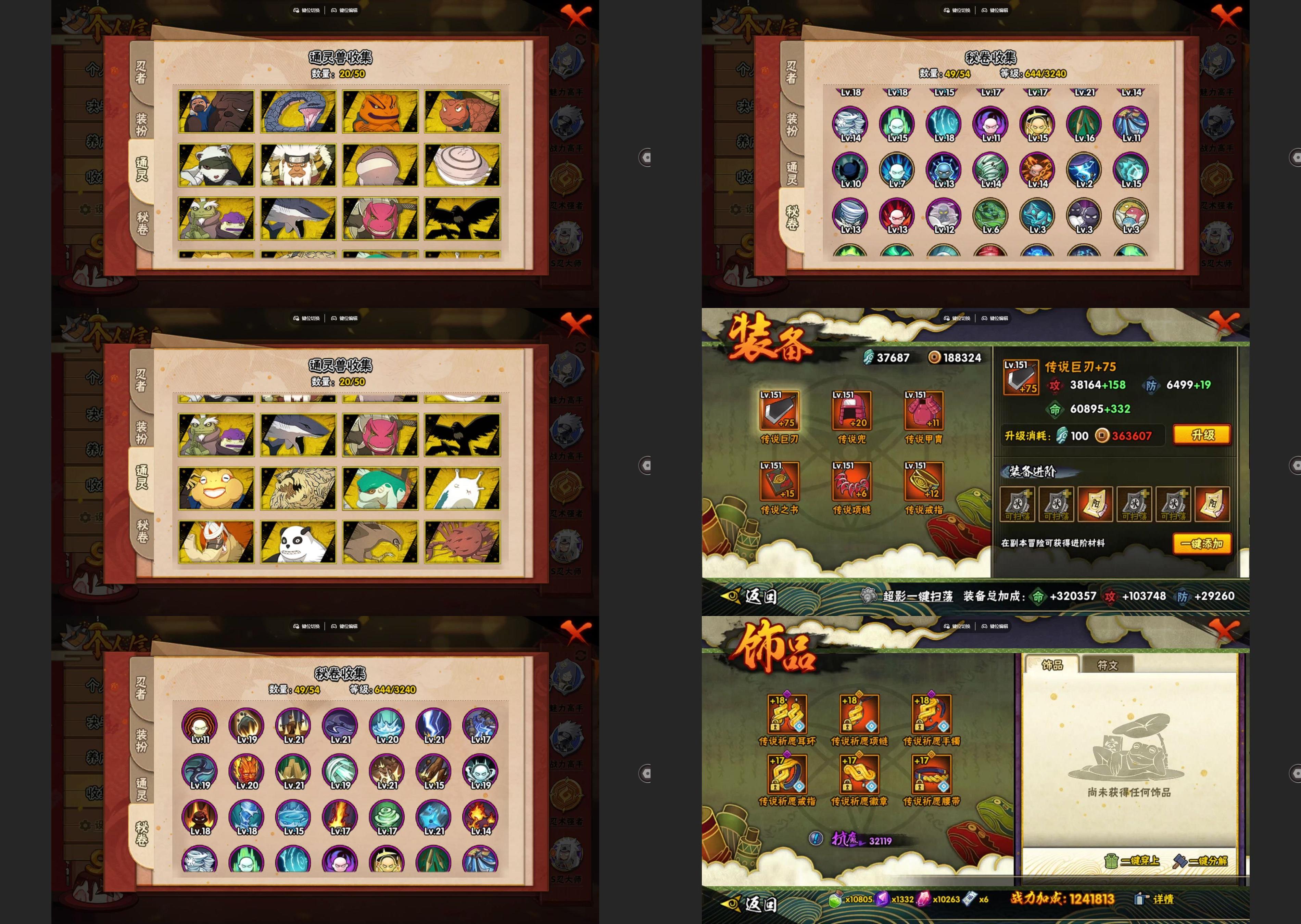 【A忍者】,土台「忍界大战」,长十郎「六代目水影」,日向宁次「忍界大战」,漩涡博人「桃式显现」,日向雏田「最终章」,李洛克「忍界大战」,不动,蝎「绯流琥」,宇智波泉奈,神农「羁绊」,桃地再不斩「秽土转生」,角都「秽土转生」,宇智波止水,长门「青年」,佩恩·六道「漂泊浪客」,艾「青年」,照美冥「侠隐江湖」,达鲁伊「五代目雷影」,不风,波风水门「青年」,宇智波佐助「须佐能乎」,桃地再不斩「漂泊武士」,迪达拉「秽土转生」,漩涡鸣人「九尾查克拉」,千代「近松十人卫」,药师兜「半蛇斗篷」,宇智波鼬「新春限定」,我爱罗「忍界大战」,秋道丁次「忍界大战」,大蛇丸「晓」,春野樱「百豪」,照美冥「五代目水影」,宇智波佐助「万花筒写轮眼」,漩涡鸣人「仙人模式」,角都「地怨虞」,飞段「死司凭血」,角都,小南,飞段,迪达拉,我爱罗「疾风传」,蝎,干柿鬼鲛,宇智波鼬,猿飞阿斯玛,迈特凯,