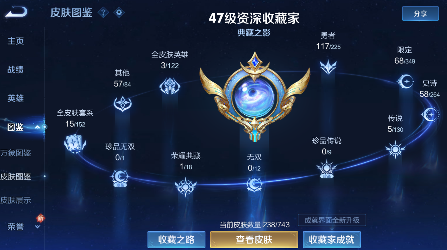 PX_2266243-实名:,可修改,贵族等级:,V7,英雄数:,125,皮肤数:,238,荣耀水晶:,弑枪猎影,传说皮:,山海·炽霜斩,乘龙·淬吴钩,幻光神枪,限定皮:,李小龙,梁祝,引擎之心,逐梦之影,大圣娶亲,高山流水,猪悟能,枫霜尽,五谷丰年,愿照·九州拓,亮点:,【精品号手慢无】超有性价比小号,47级收藏家典藏皮韩信弑枪猎影优质皮肤山海·炽霜斩,乘龙·淬吴钩,幻光神枪愿照·九州拓2848星币8个性按键性价比号