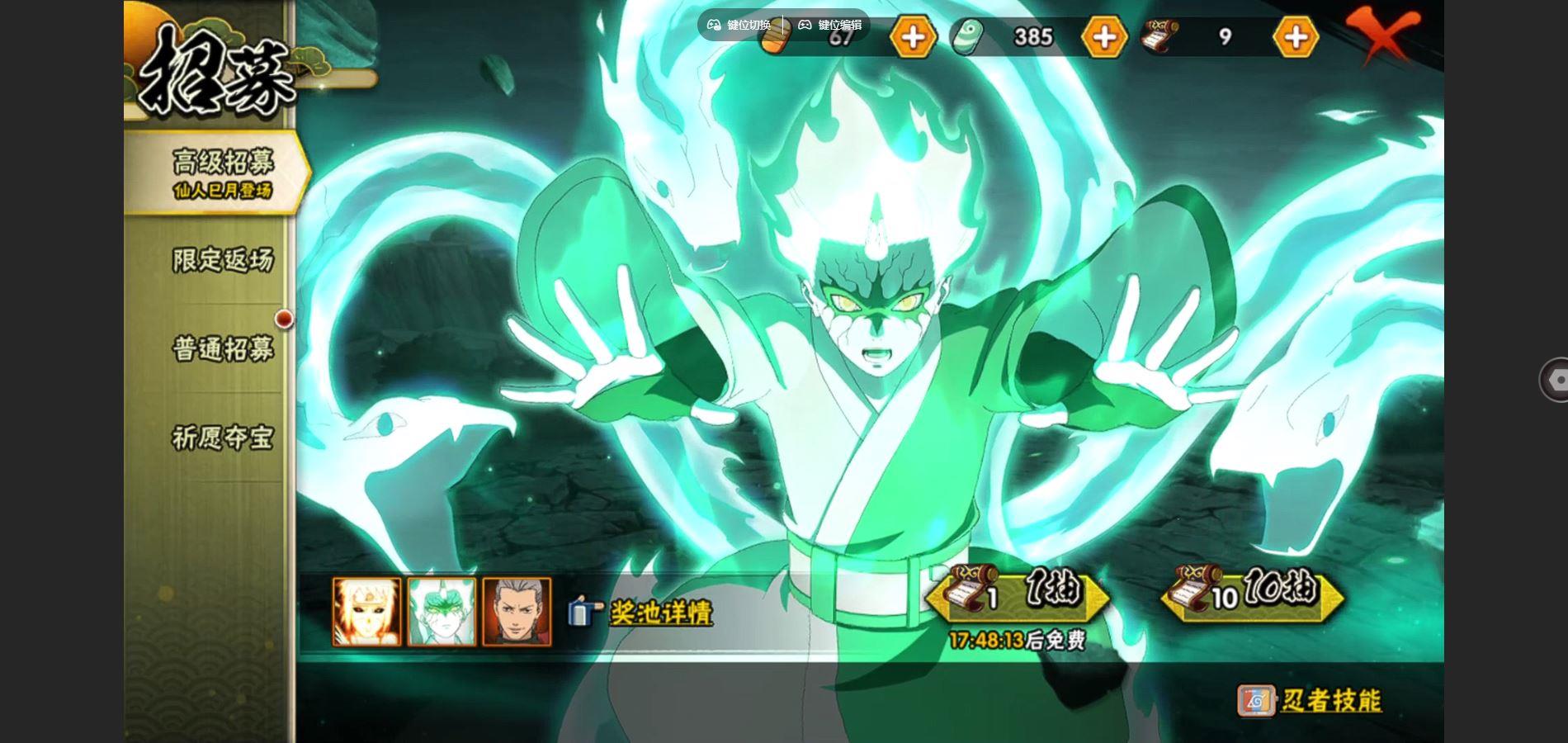 【A忍者】,土台「忍界大战」,不缘,日向宁次「忍界大战」,漩涡博人「桃式显现」,旗木卡卡西「幻之真容」,李洛克「忍界大战」,宇智波泉奈,桃地再不斩「秽土转生」,波风水门「青年」,宇智波佐助「须佐能乎」,迪达拉「秽土转生」,千代「近松十人卫」,秋道丁次「忍界大战」,飞段「死司凭血」,飞段,迪达拉,我爱罗「疾风传」,蝎,干柿鬼鲛,宇智波鼬,猿飞阿斯玛,迈特凯,