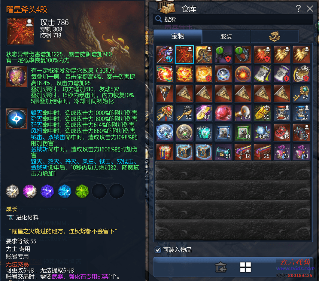 12549,无日峰力士,侠义团82段,二星太极石,一星太极石x3,雪峰元气石12段,天罚真气石12段,邪花斧头6段,曜皇斧头4段,龙虎斧头15段,蟠桃戒指1段,卓越暗海戒指3段,卓越泰天耳环3段,卓越泰天项链3段,极凰手镯6段,狂天腰带6段,齐天手套4段,极花秘功牌3段,武仙神功牌8段,毁灭梦幻魂12段,黄龙灵8段,极限守护石1段,晨晖星6段,衣服89,3500R,