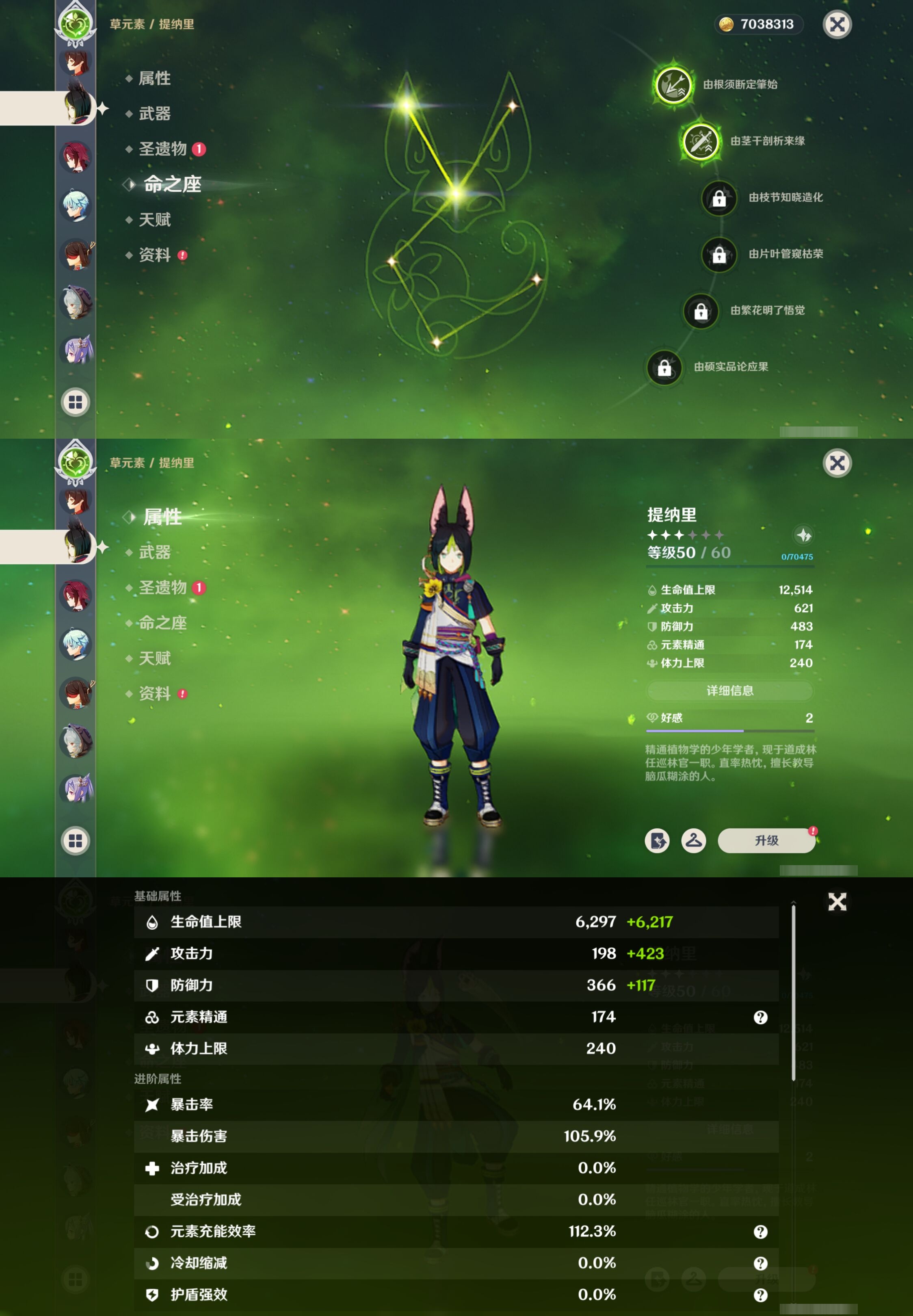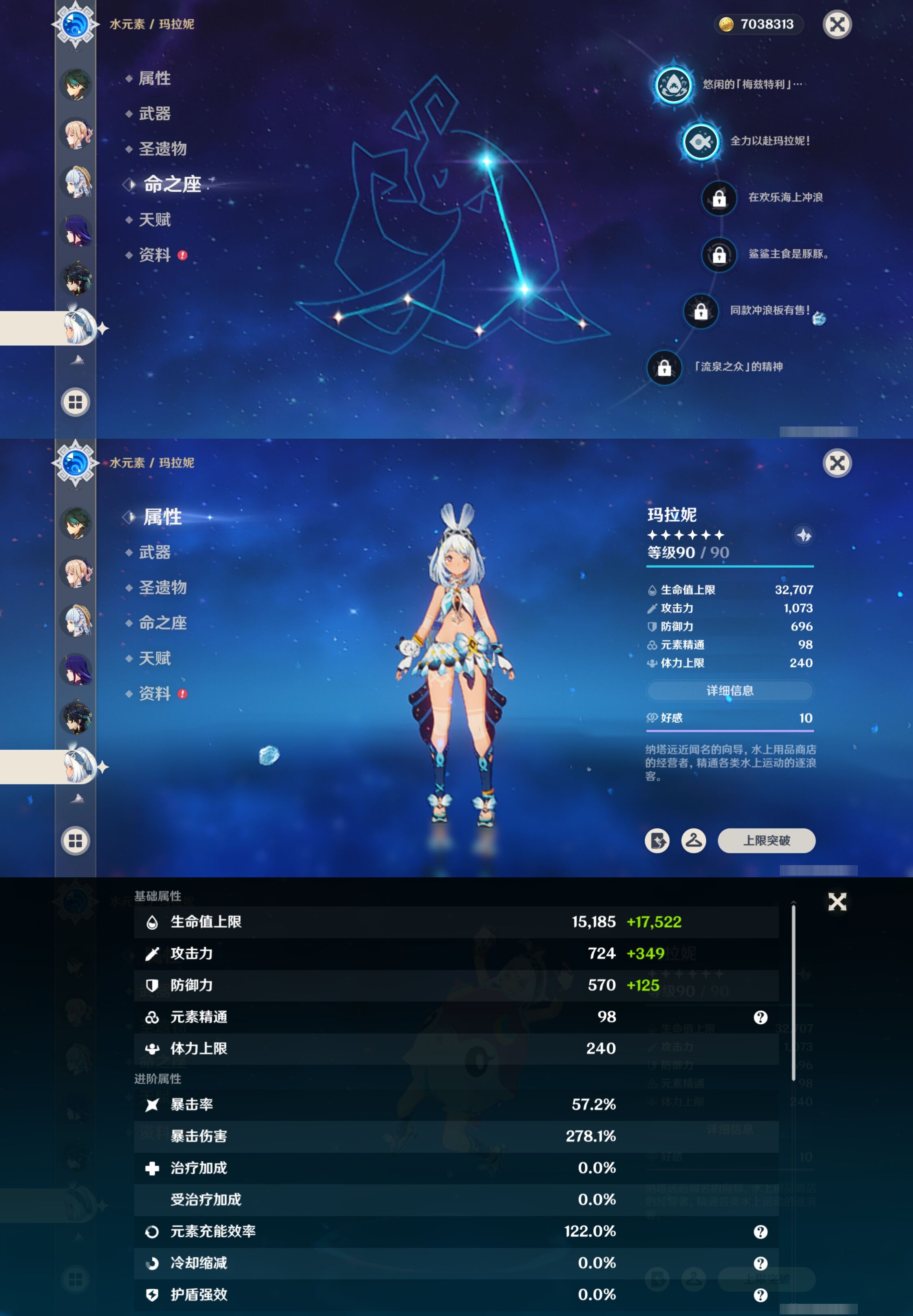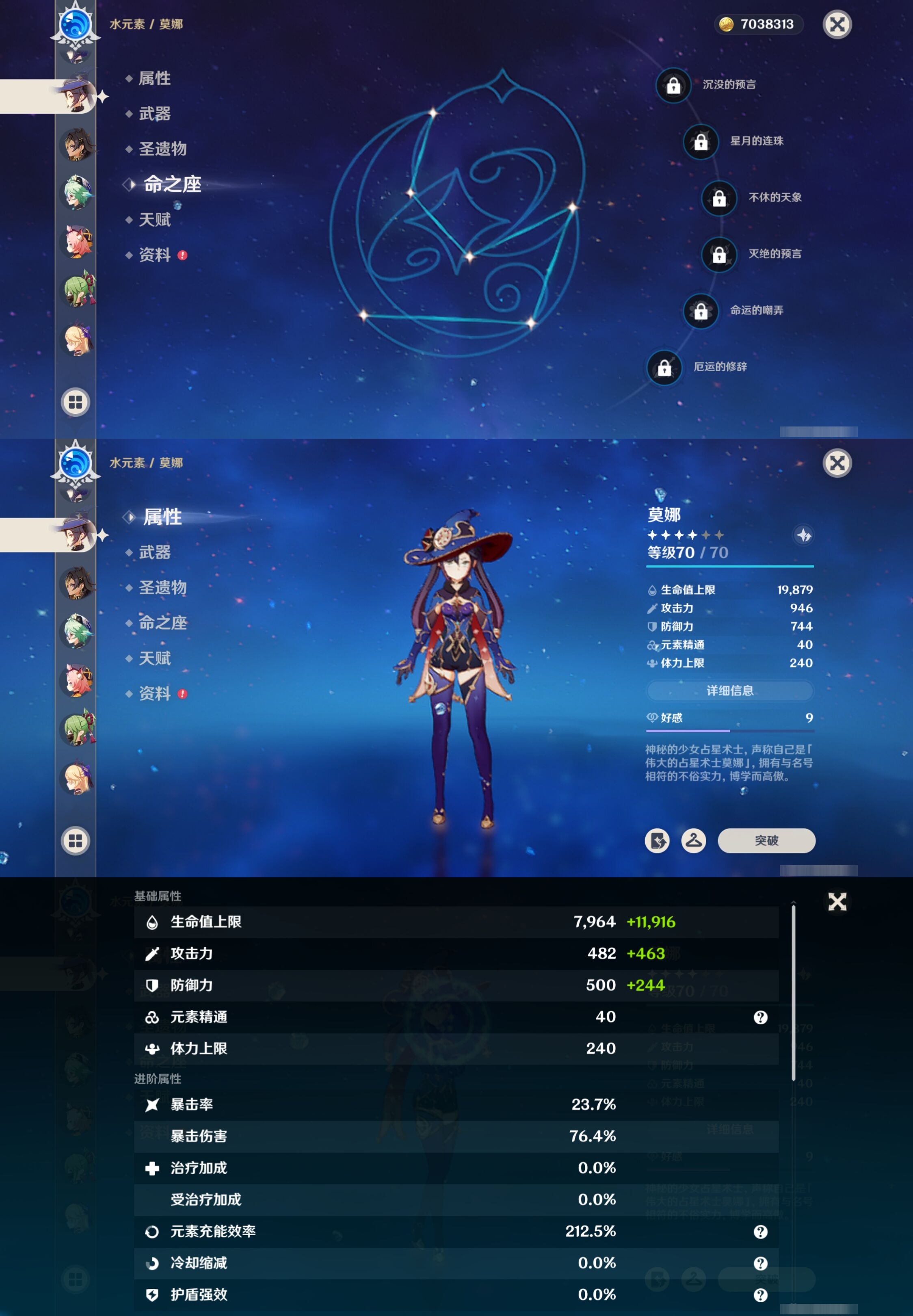 【19个五星角色】,满命那维莱特,3命刻晴,2命琴,2命玛拉妮,2命提纳里,1命魈,1命基尼奇,1命七七,0命芙宁娜,0命枫原万叶,0命希诺宁,0命优菈,0命阿蕾奇诺,0命神里绫华,0命雷电将军,0命钟离,0命莫娜,0命迪希雅,0命迪卢克,