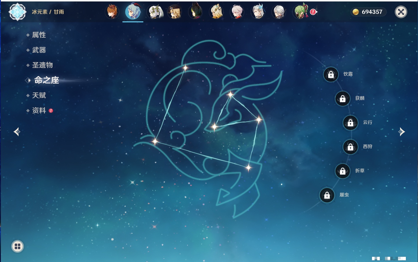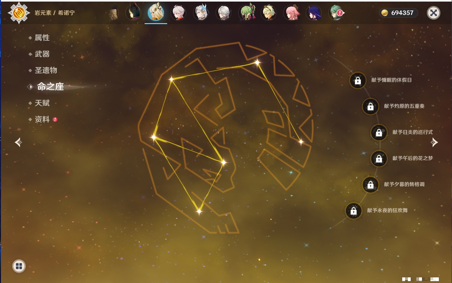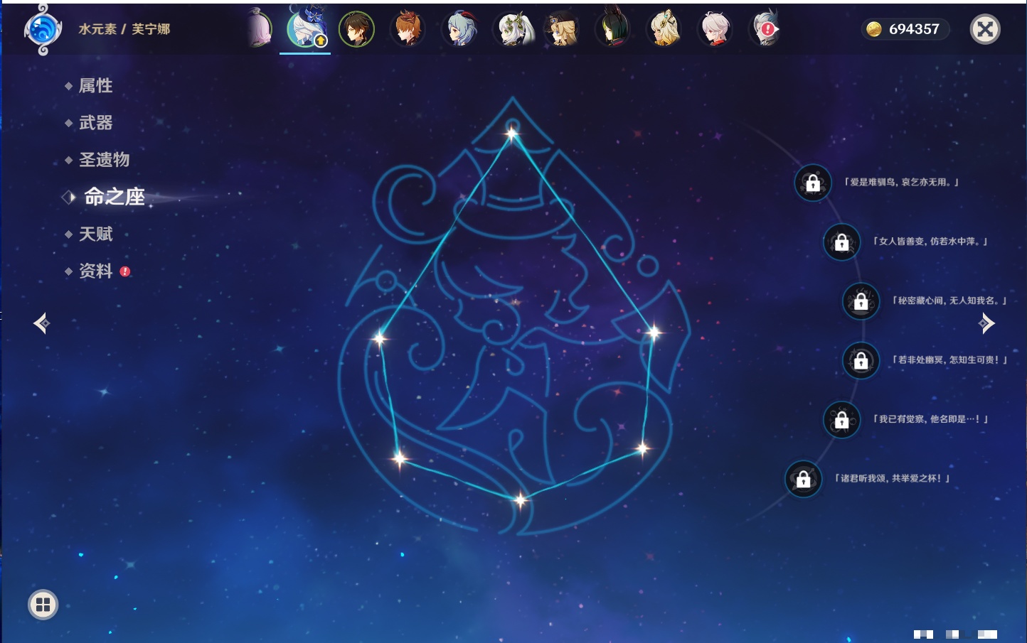 【21个五星角色】,2命七七,2命莫娜,1命阿蕾奇诺,1命那维莱特,1命迪希雅,1命提纳里,1命八重神子,0命芙宁娜,0命白术,0命艾尔海森,0命纳西妲,0命优菈,0命雷电将军,0命枫原万叶,0命钟离,0命甘雨,0命达达利亚,0命菲林斯,0命娜维娅,0命希诺宁,0命梦见月瑞希,