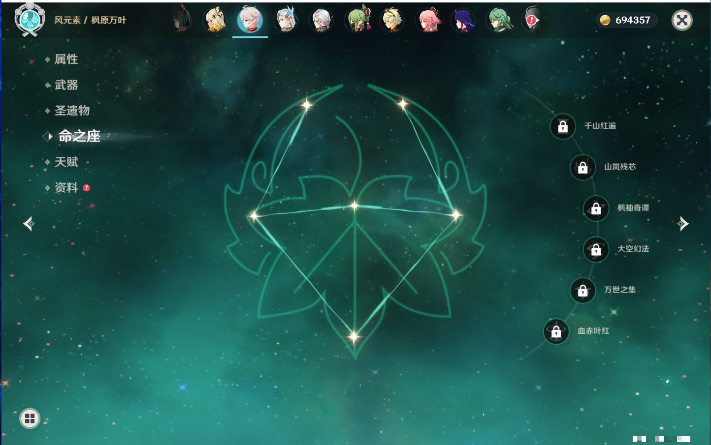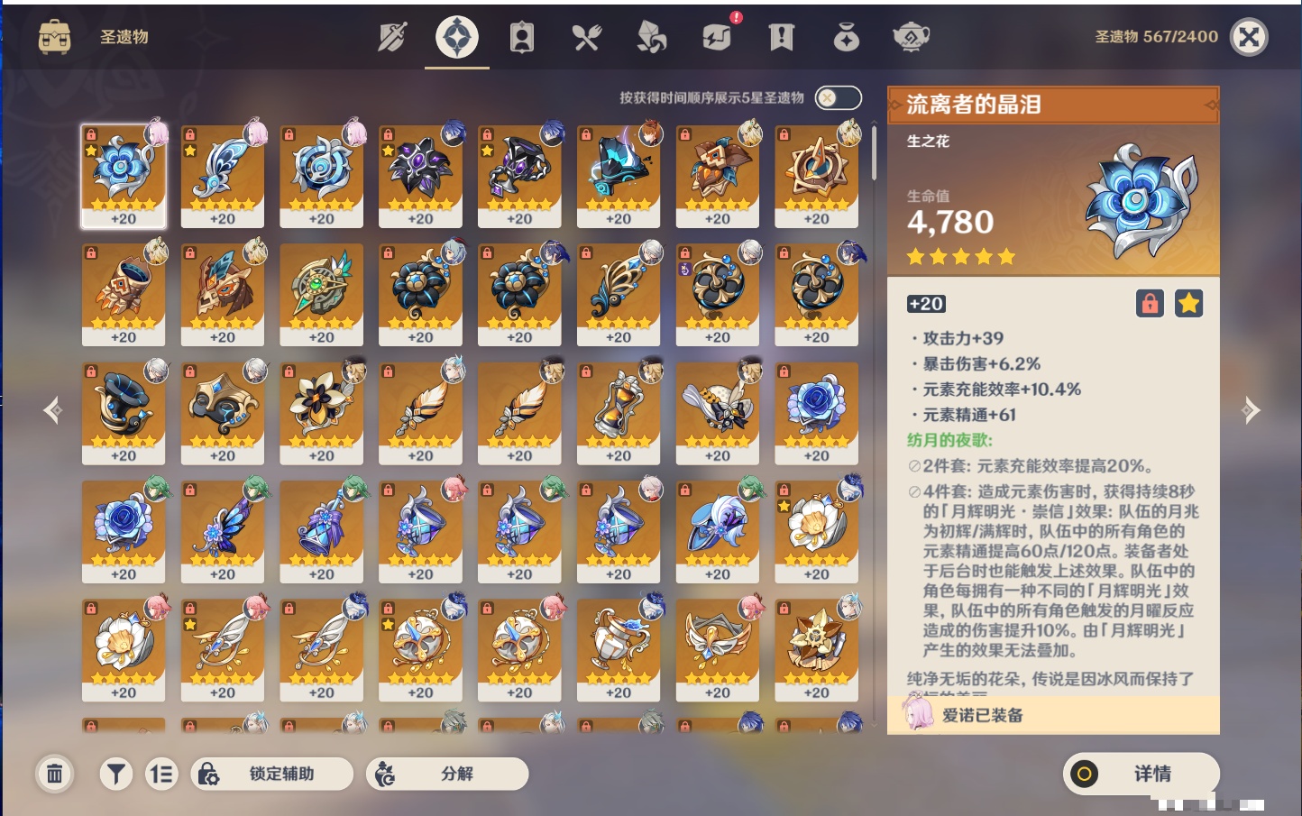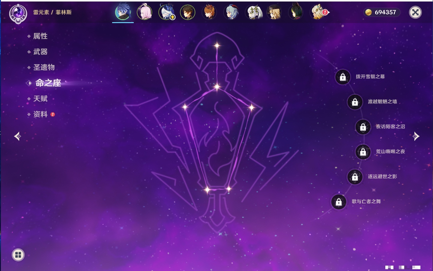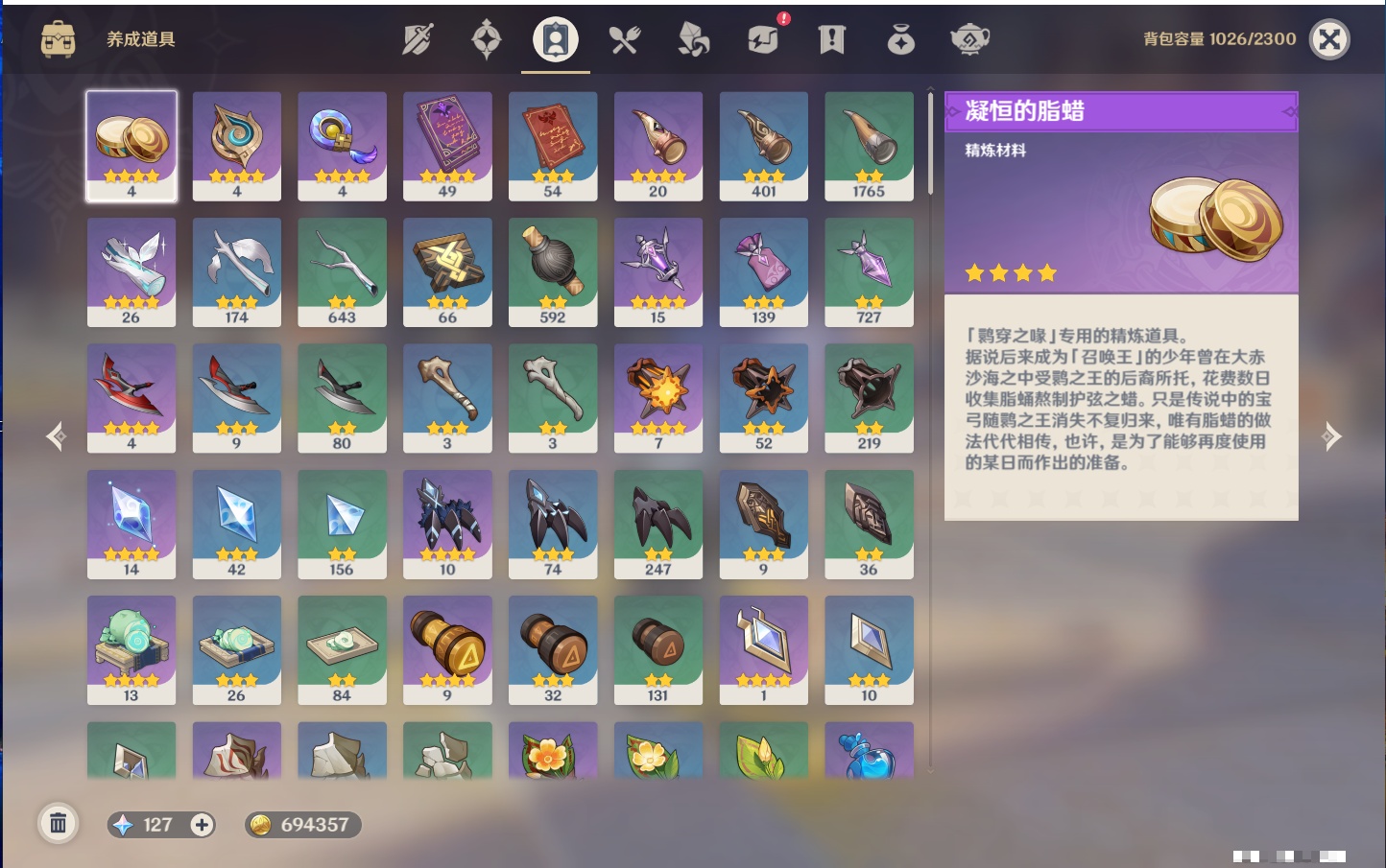 【12个五星武器】,精2天空之刃,精1最初的大魔术,精1若水,精1阿莫斯之弓,精1万世流涌大典,精1薙草之稻光,精1和璞鸢,精1贯虹之槊,精1天空之脊,精1狼的末路,精1裁叶萃光,精1圣显之钥,