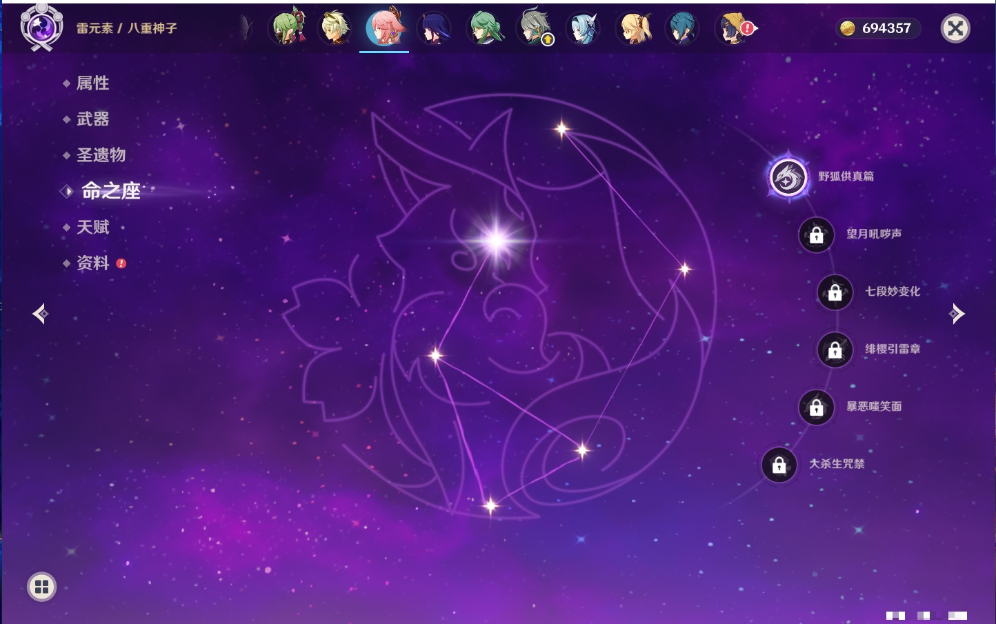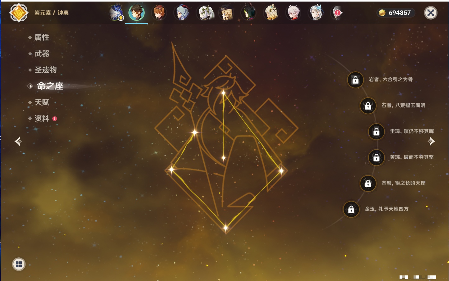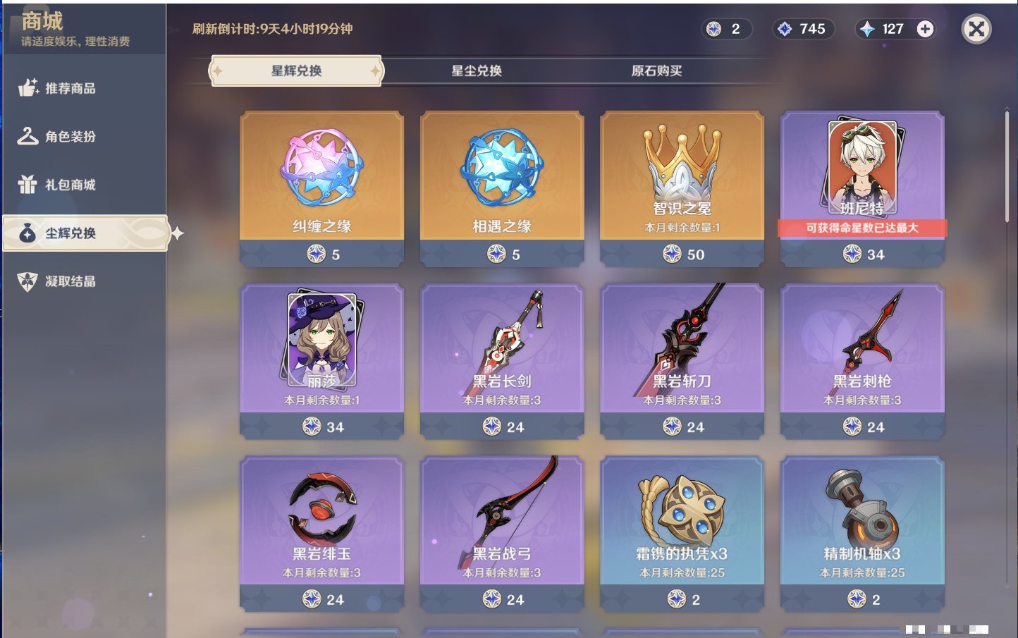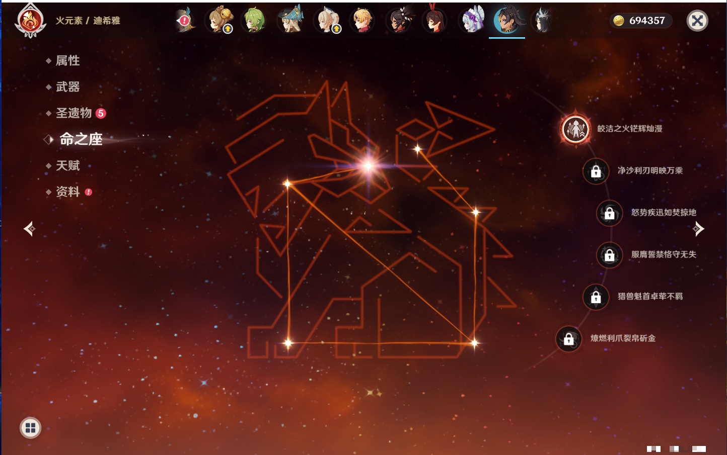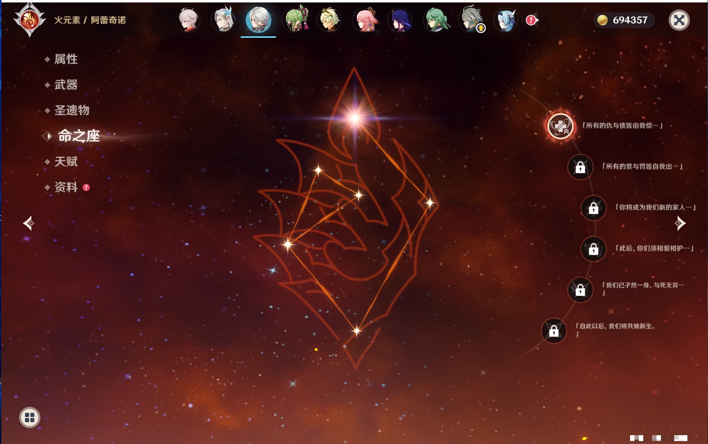 【12个五星武器】,精2天空之刃,精1最初的大魔术,精1若水,精1阿莫斯之弓,精1万世流涌大典,精1薙草之稻光,精1和璞鸢,精1贯虹之槊,精1天空之脊,精1狼的末路,精1裁叶萃光,精1圣显之钥,
