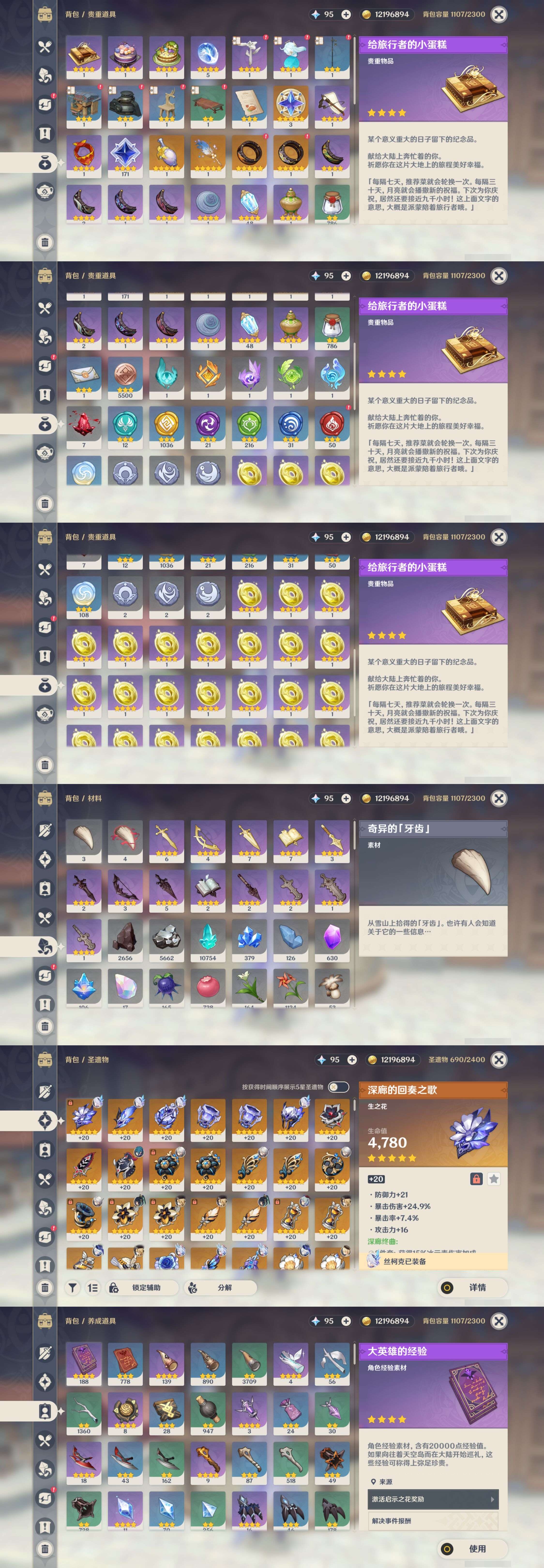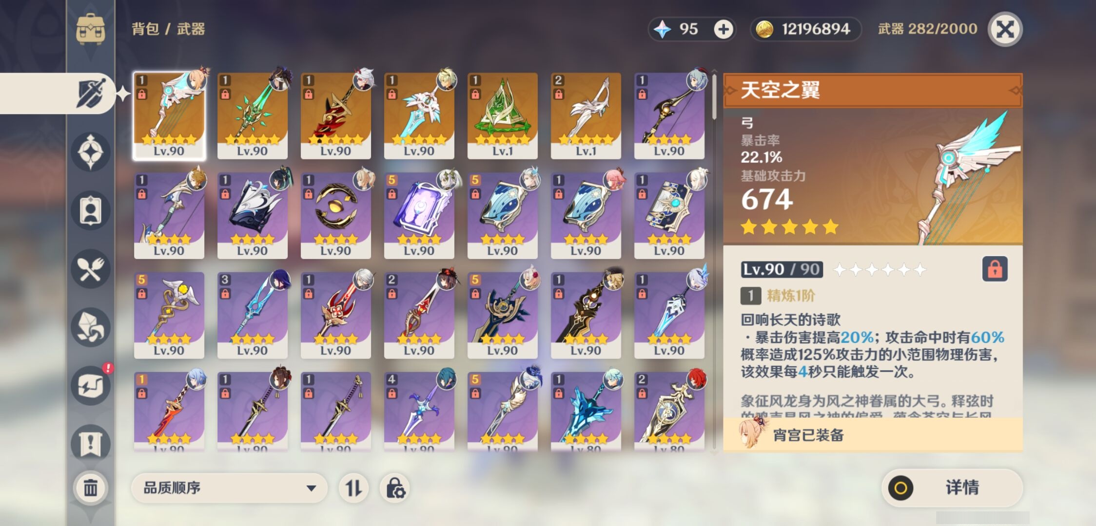 【6个五星武器】,精2风鹰剑,精1天空之翼,精1和璞鸢,精1赤角石溃杵,精1天空之刃,精1真语秘匣,4套,
