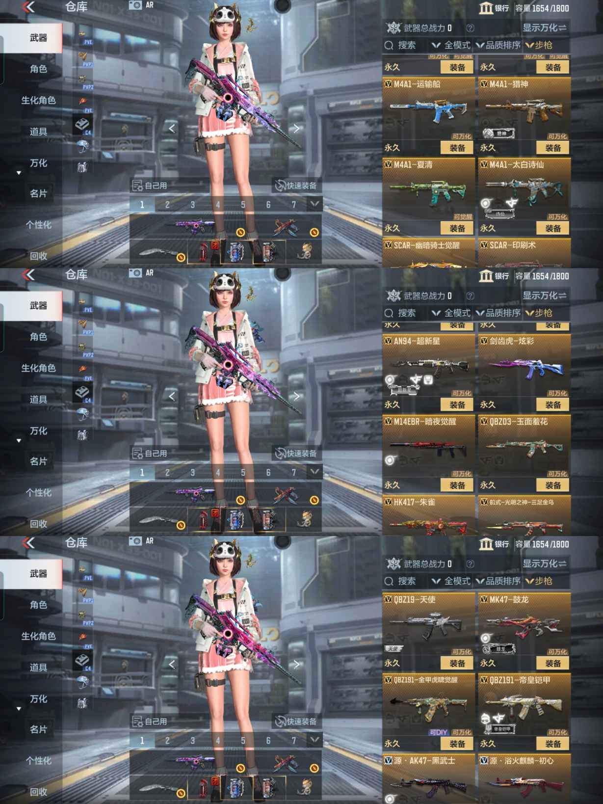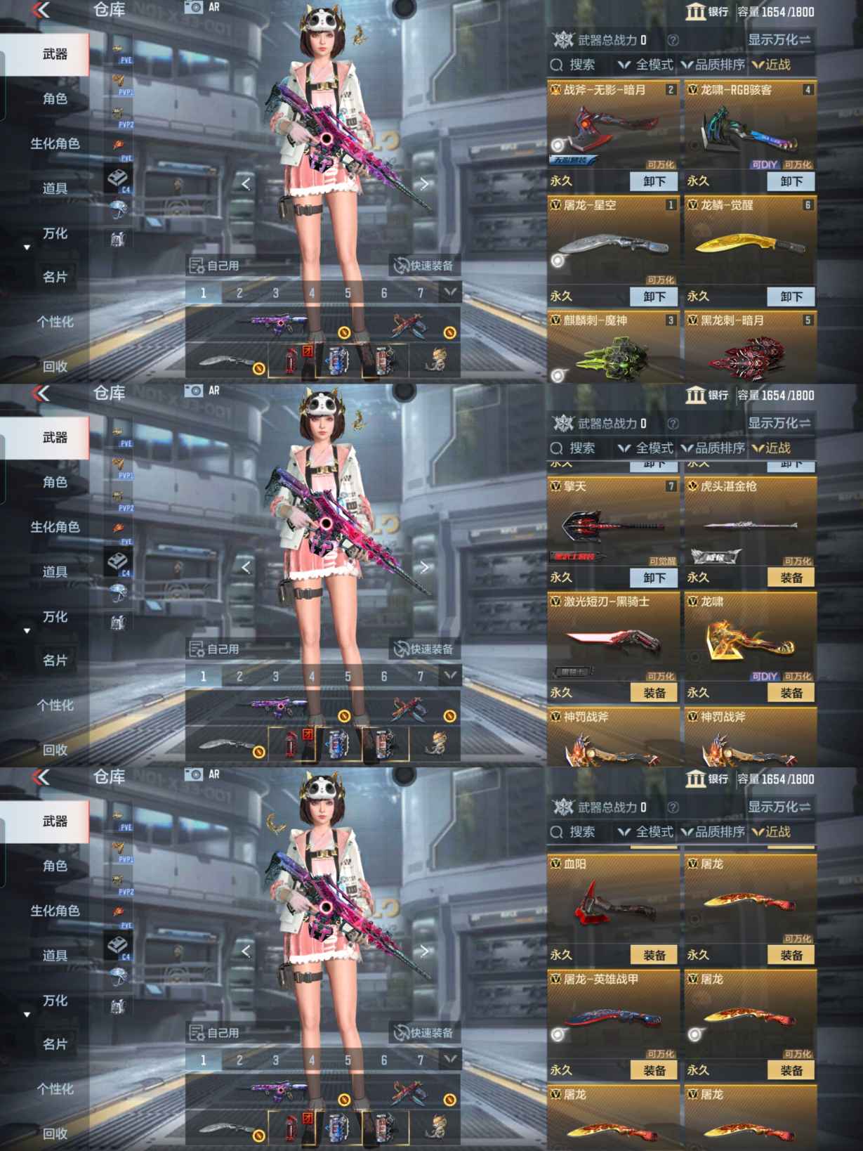 【史诗武器】风之子,黄金AK47,黄金QCW05,香蕉匕首,黄金锅-2018S2限定,黄金AWM-A,M4A1-XM-赢家,双持沙鹰-幽灵,M4A1-飞龙在天,沙鹰-飞龙在天,巴雷特-飞龙在天,铁锹-飞龙在天,AK47-飞龙在天,黄金MG3,红红火火手雷,98K-烛龙,黄金AK47-A,AK47-烛龙,黄金NAR,黄金零号,QBZ95-烛龙,手斧-御龙,毛瑟-御龙,AK47-铸魂,QBZ03-烛龙,疾火-流星,黄金M249,黄金拖鞋,AK47-惊魂骑士,AK47-死亡之翼,AK47-蜂鸟,黄金M14EBR,黄金手斧,AWM-深海猎手,黄金温切斯特,牛牛烟火,五色石闪光弹,欢声雷动闪光弹,左轮-金韵,黄金野牛,军用铁铲-金韵,AWM-暗杀之眼,CZS2-圣婴,黄沙剑,QBZ95-泰坦,M4A1-S-脉动,GLOCK18-小金刚,电磁机甲拳套,左轮-麟龙,斯泰尔-赤龙,23-湛蓝裂痕,黄金沙鹰-A,龙虾钳,集装箱闪光弹,黄金足球奖杯,AK47-御龙,黄金乌兹双枪,沙鹰-银角大王,双刃-昼伏夜影,AN94-四凶,HK416-黑石猴,巴雷特-麟龙,QBZ03-麟龙,燃烧弹-烛九阴·昼,高爆手雷-狙击高手,改装GLOCK-排插军迷,AN94-游戏主播,军用铁锹-赤龙,09式狙-魔音长歌,疾爆手雷,5-内涵玄机,黄金RPK,虎威金鳞枪,血饮刀,9A91-魔蜥,9A91-魔蜥,AK47-泰坦破坏者Ⅰ,黄金M249,镇关锤,AK47-泰坦破坏者Ⅰ,利爪之锋,9A91-魔蜥,闪光弹-宇航兔兔,蚩尤战弓,双刃-昼伏夜影,镇关锤