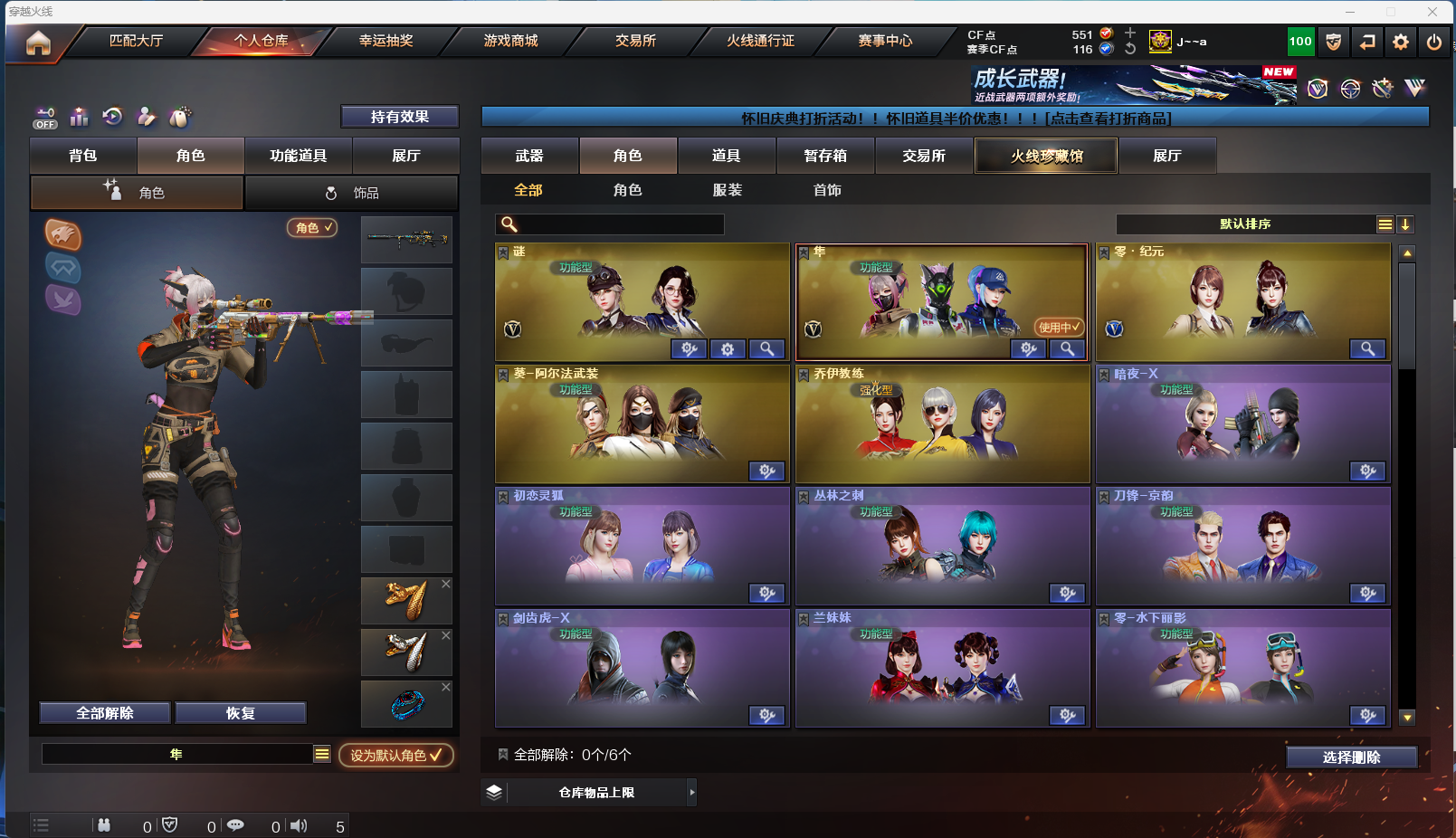 【通用级角色】零-水下丽影,灵狐者-黄金海岸,猎狐者-11周年,铁骑荣耀,暗夜-X,剑齿虎-X,初恋灵狐,兰妹妹,刀锋-京韵,蔚蓝,潘多拉-N,零·纪元,丛林之刺