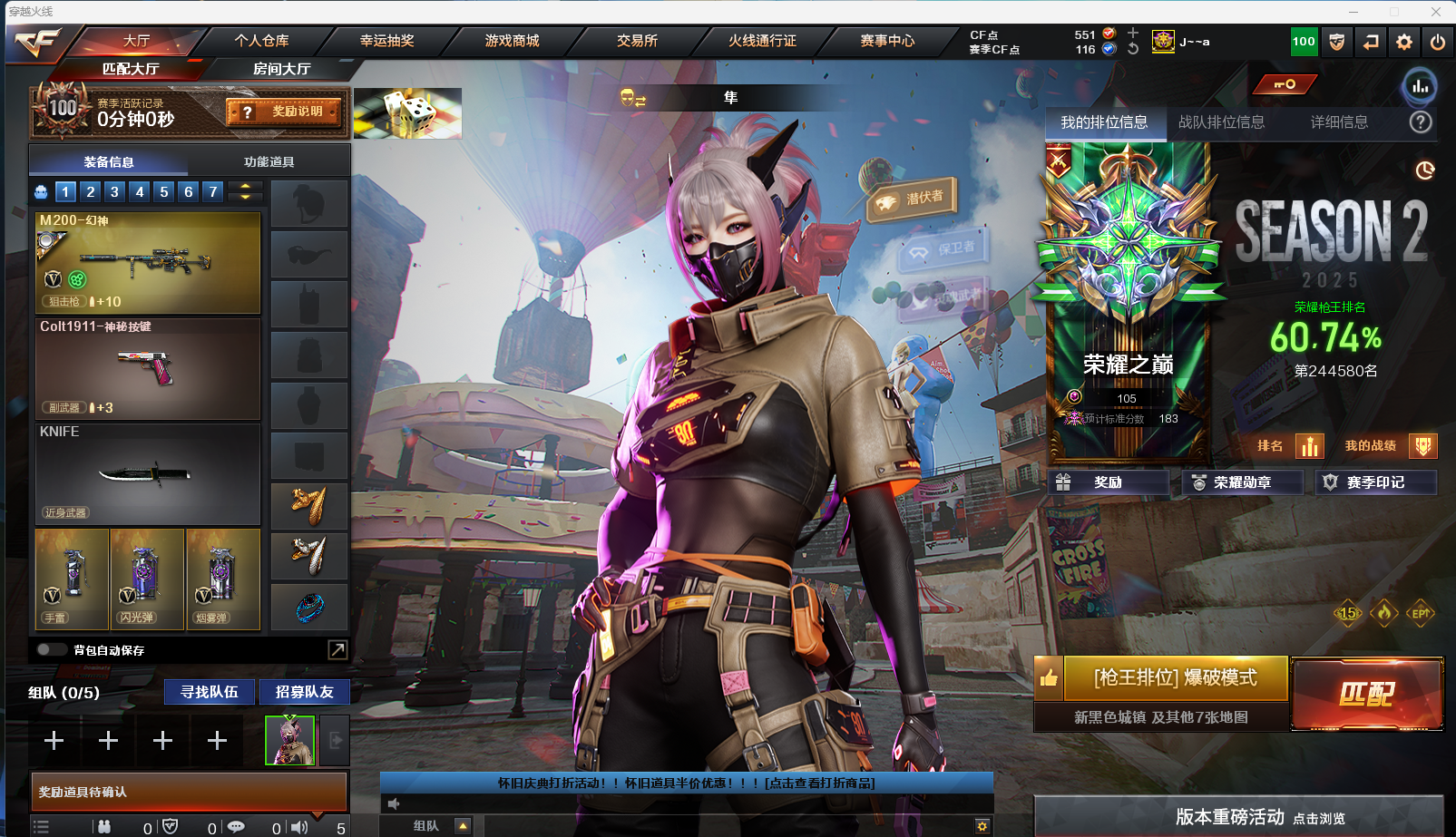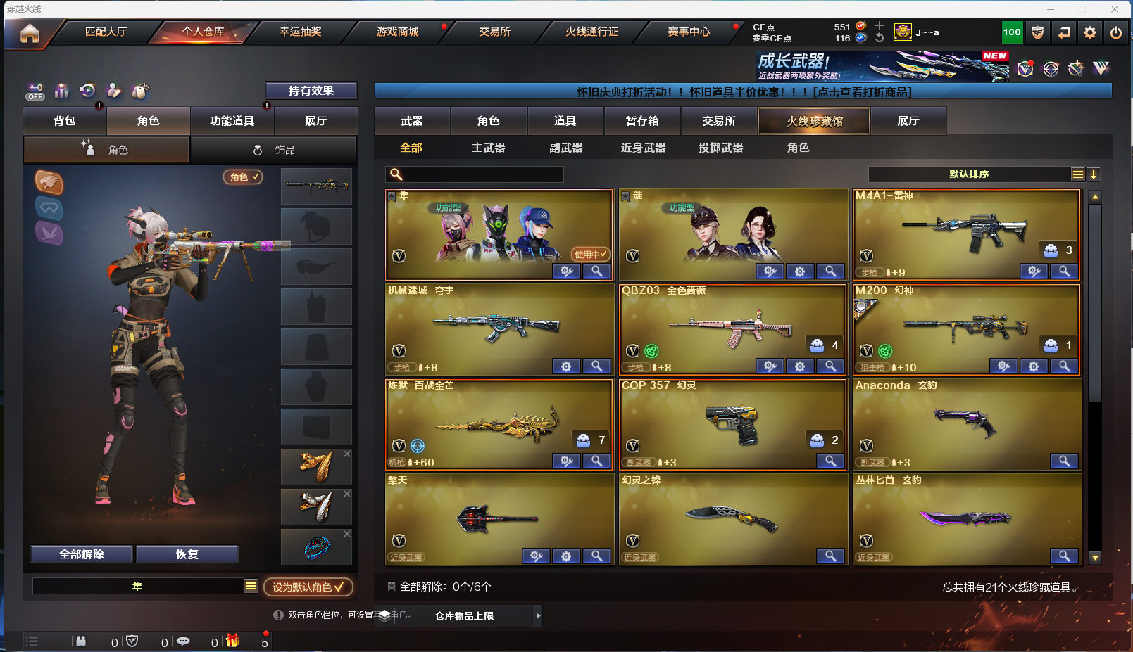 PX_2217040-9【等级】102【区服】北方大区,幻神带皮肤【段位】荣耀之巅【英雄角色】2【英雄武器】22【英雄级角色】隼,谜,【英雄级武器】Barrett-碧霄极光,M4A1-雷神,丛林匕首-玄豹,Anaconda-玄豹,丛林匕首-玄豹,烟雾弹-玄豹,闪光弹-玄豹,高爆手雷-玄豹,炼狱-百战金芒,擎天,麒麟刺-百战金芒,M4A1-再燃火线,机械迷城-穹宇,QBZ03-金色蔷薇,高爆手雷-幻灵,COP,357-幻灵,高爆手雷-幻灵,M200-幻神,幻灵之锋,闪光弹-幻灵,烟雾弹-幻灵