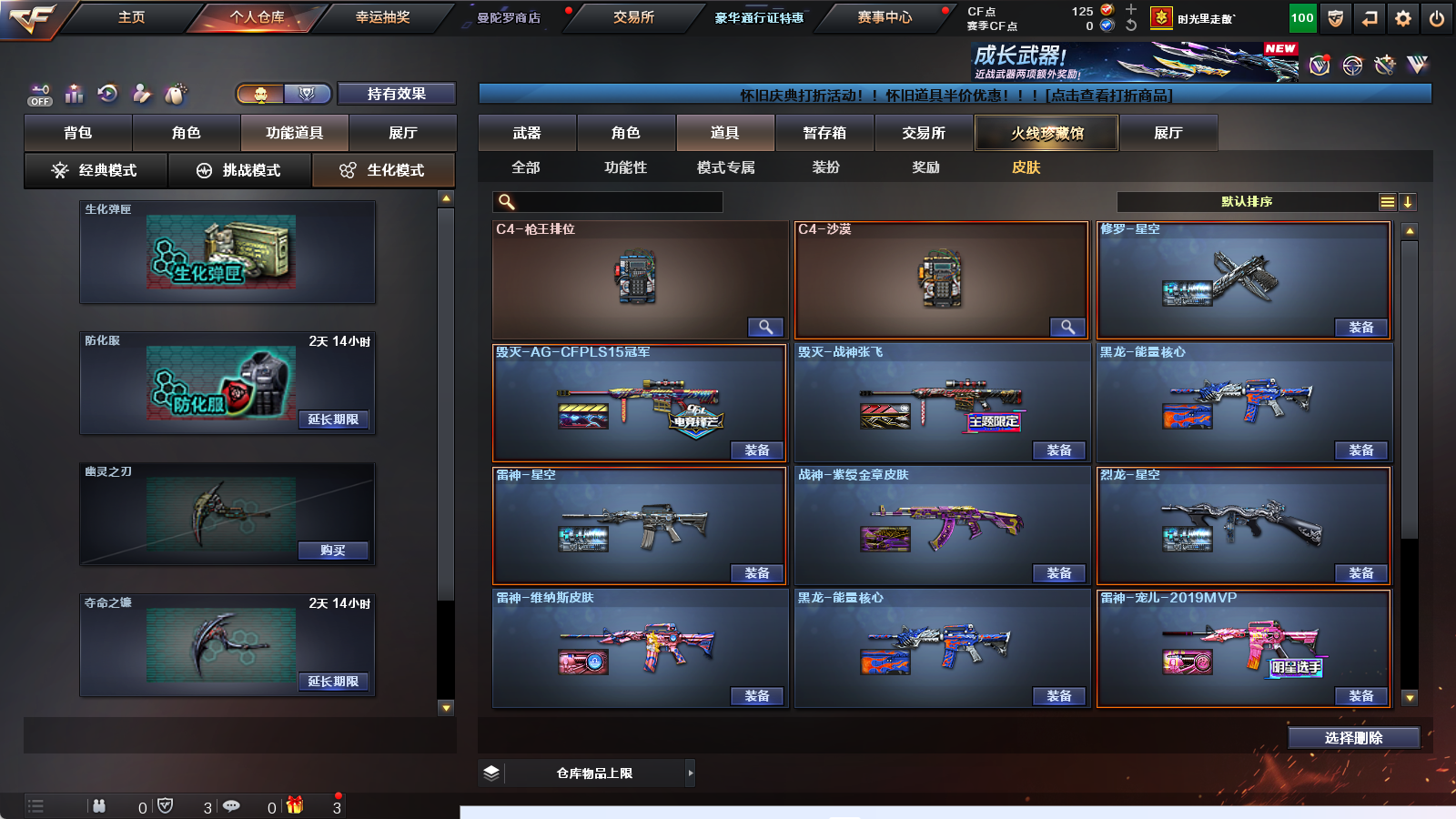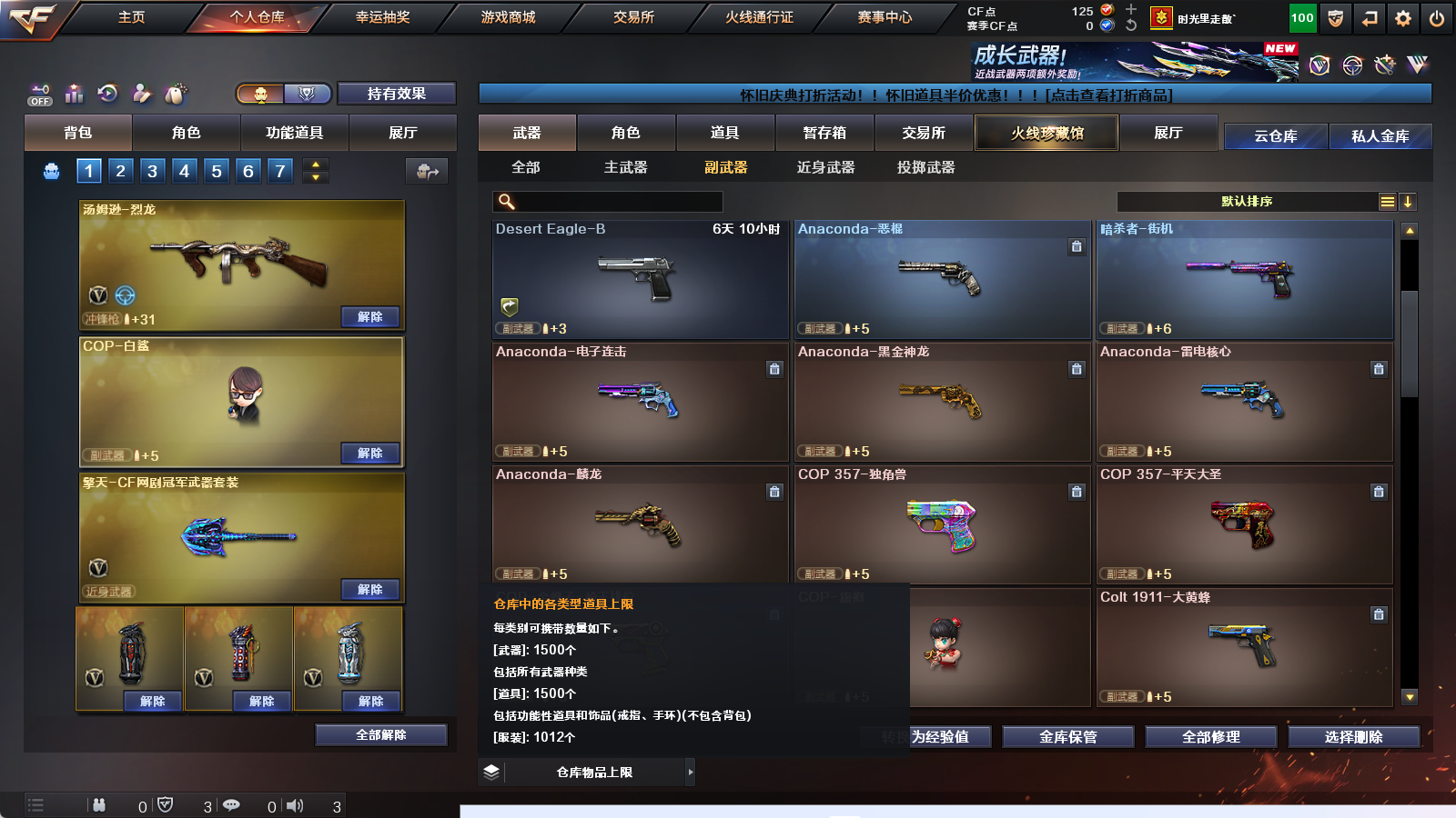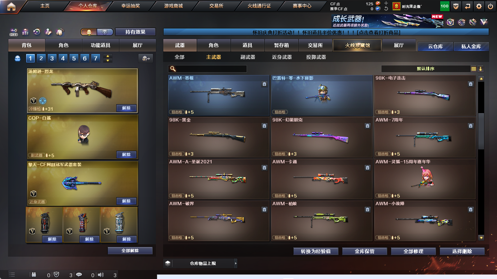 【普通武器】降世魔童,死亡之眼-电子连击,加利尔ACE-零号,精英手雷II,愤怒公牛左轮-枪王排位,流光斩魔刀-枪王排位,AK47-圣诞节[2019],EVO3A1-温暖冬日,幻影沙鹰-枪王排位,虹光丛林匕首-枪王排位,虹光鹰爪-枪王排位,招财猫-枪王排位,蝴蝶刀-枪王排位,黄金Anaconda,M16A2-破界,Anaconda-雷电核心,Anaconda-电子连击,柯尔特-涂鸦,金箍棒,AWM-破界,SteyrAUGA1,TAR21,瓦尔特WA2000,98K-电子连击,G36C-宇航兔兔,CF05-秦师,暗金M200,M200-大黄蜂,Spas-12-幻能朋克,AK47-荆桃,动力CPW-,新春神龙,AWM-冥府犬,SPAS-12-卡通,M240B-卡通,疾爆手雷-电子连击,Scar,Light-电子连击,手雷-万圣节2021,激光长刃-朋克,M82A1-水枪,AK47-魔将,沙鹰-魔将,CBS-魔将,M200-美杜莎,M4A1-火线初心,M4A1-水枪,龙珠,QBZ03-电子连击,闪光弹-静谧之夜,EVO,III-祥云,M4A1-圣诞2021,动力CPW-锦绣游龙,暗金鹰爪,尼泊尔-大黄蜂,Scarlight-炫彩,愤怒的公牛-朋克,Cop,357-秦师,闪光弹-11周年,EVOIII-神兵利器,新USP-春桃,新USP-锋芒破茧,COP-金蝉子-枪王排位,幻影双斧-枪王排位,胜利奖杯闪光弹-枪王排位,幻影Anaconda-枪王排位,M4A1-T,银色M4A1-A,闪光弹-维纳斯,幻影扳手-枪王排位,幻影沙鹰-枪王排位,白银警棍,沙漠之鹰-暗炎,黄金尼泊尔,mac-10-蒸汽钟表,Cop357-灵狐,CPW-灵狐,军用手斧-灵狐,AK47-蓝水晶,AK47-轮回,疾爆手雷-9周年,AWM-7周年,棒球棒-像素,闪光弹-像素,粉色烟雾弹-娜塔莉娅,EVO,III-锦绣游龙,月饼手雷,FR-F2-彩蝶,Barrett-神兵利器,Cop357-迷彩,M4A1-暗金风暴,Barrett-蒸汽钟表,Colt,1911-锦绣游龙,幻刃-枪王排位S28,QBZ95,紫色烟雾弹-神秘黑洞,粉色烟雾弹-萌杀,猫猫手套,沙漠之鹰-苍龙,汽锤-小故障,5-枪王排位,汽锤-醒狮,G36-精英,Cop357-娜塔莉娅,Cop357-凤灵,闪光弹-二次元蓝,闪光弹-锦绣游龙,高爆手雷-机甲刑天,煤炭-圣诞节2023,龙拳,Barrett-苍龙,森林灭火神器-打火鞭,M200-枪王排位,EVO,III-烈虎,破天狂龙,AA-12-圣龙,魔能镰刀,百城AK47,Anaconda-恶棍,AK-12-恶棍,AWM-恶棍,枪王之刃,OTs-23-精英爆破,精英手雷III,紫色烟雾弹-神秘黑洞,M4A1-狼牙,闪光弹-关羽,新USP-锋芒破茧,彩蛋-捣乱兔兔,粉色烟雾弹-幻能朋克,AK47-火种,沙鹰-醒狮,闪光弹—道聚城,M4A1-朋克,COP,357-平天大圣,闪光弹-黄钻贵族,毛瑟军用手枪,M249-幽灵,闪光弹-独角兽,M4A1-蓝水晶,激光长刃-朋克,98K-幻能朋克,贝雷塔-李思楠,沙鹰-御龙,马来剑-独角兽,COP,357-独角兽,粉色烟雾弹-15周年嘉年华,尼泊尔-翡翠,水晶双管猎枪,QBZ03-月,M4A1-T,Spas-12-幻能朋克,M4A1-凤灵,汽锤-醒狮,Barrett,M82A1,破天九龙,闪光弹-擎天柱,新USP-春桃,闪光弹-京剧黄,惨叫鸡高爆手雷,M200-月,M200-醒狮,闪光弹-大黄蜂,M200-清凉夏日,贝雷塔687-醒狮,蓝色烟雾弹,黄色烟雾弹,AWM-银月,沙鹰-醒狮,M6突击步枪,魔能飞环-曼陀罗,新USP-枪王排位奖励,新USP-枪王排位奖励,MAC-10-涂鸦,迷你生化手雷,迷你生化手雷,MAC-10-涂鸦,胜利之火,虹光丛林匕首-枪王排位,军用手斧-平天大圣,闪光弹-QQ20周年,Barrett-麟龙,5-红水晶,尼泊尔军刀,雄黄酒手雷,粽子手雷限定版,双生雷-恶棍,军用铁锹-蓝钻,黄金M14EBR,沙漠之鹰-苍龙,EVOIII-炫光四叶草,刘易斯枪,沙漠之鹰-战龙,Anaconda-麟龙,AWM-冥府犬,M1216-暗金,Cop357-迷彩,AWM-小故障,AWM-蓝水晶,绿色烟雾弹,影之刃-小故障,M4A1-蓝水晶,尼泊尔-凤灵,98K-黑金,AK47-紫鸢,M700,新USP-枪王排位奖励,招财猫-枪王排位,环刃-枪王排位,USP-黑大圣,闪光弹-巨浪,海滩汪汪-巴雷特,魔能飞环-曼陀罗,沙鹰-蓝水晶-曼陀罗,闪光弹-神兵利器,EVOIII-神兵利器,AWM-灵狐-15周年嘉年华,霓虹左轮-枪王排位,手雷-15周年嘉年华,荣耀之证-荣耀之巅,暗杀者-街机,街机小灰机,COP-白鲨,灵狐卡片-15周年嘉年华,粉色烟雾弹-15周年嘉年华,M4A1-紫狱,QBZ03-街机,精英手雷VII,蝴蝶刀-枪王排位,23-湛蓝裂痕,荣耀之证-荣耀之巅,太极扇-锋芒,EVO,III-秘银,M4A1-小黄鸡,手雷-炫彩,G36C-宇航兔兔,FAMAS,G2-炫彩,愤怒公牛左轮-丹龙,丛林匕首-玫瑰,激光匕首,Cop.,357,彩蛋,蓝色烟雾弹-机甲刑天,EVO,III-蓝色魅影,QBZ95-泰坦,HK417-遗迹,碳合金短刀-9周年,胡萝卜匕首,糖衣炮弹,柯尔特-萌杀,斩神刀-青帝,红龙SCARLight,斯特林-熔岩,KAC-情人节2021,蜡烛-圣诞2021,手榴弹-圣诞2021,M14EBR-粉红伪装,M4A1-蓝钻,AWM-A-圣诞2021,闪光弹-小乔,手雷-圣诞节[2019],AK47-万圣节2021,镰刀-万圣节2021,黄金沙漠之鹰,手雷-幻彩,萨维奇110,麦特左轮,蟒蛇,M60,Anaconda,Cop357-迷彩,巴雷特-绚樱,Colt,1911-大黄蜂,M14EBR-大黄蜂,迷彩沙鹰-70KG,Colt,1911-大黄蜂,AWM-卡通,AK47-十年火线,AWM-涂鸦,M37-葵,闪光弹-枪娘,闪光弹-万圣节2019,M14EBR-CFS,2020,粽子手雷加强版,沙漠之鹰-暗杀者,鹰爪-暗夜,AK47-QT,丛林匕首-紫鸢,Colt,1911-大黄蜂,AK-103-红色悦动,凤凰之锋,M4A1-红色线条,PMR,30-金色豹纹,M4A1-QT,斩魔刀-白龙,暗杀者-绿豆,Anaconda-黑金神龙,COP,357-牡丹,COP-旗袍,M4A1-秘银赤龙,沙鹰-娜塔莎,C.A.T,AWM-枪娘,AK47-娜塔莎,G3A3-SS,P90-迷彩,锤子,尼泊尔-英特尔,FAMAS,G2-碳素,强化版迅捷虫手雷,M82A1-8周年,斯泰尔-万圣节2020,烟雾弹-冠军广东,沙漠之鹰-CFS,AK47-狂欢-CFS,尼泊尔-水晶之心,M4A1-S-能量核心,爱之雷,猫猫手套,AWM-万圣节刀锋,加利尔ACE,G36K,AWM-A,尼泊尔-2018圣诞,G3A3-迷彩,M249-烈火,M14EBR-天羽,AK47-绚樱,Desert,Eagle-A,巴雷特-零-水下丽影,DesertEagle,丛林匕首-蓝色骑士,SR99-红色闪电,SMOKE,FLASHBANG,SMOKE,SMOKE,FLASHBANG,COP,357--绚樱,COP357,SMOKE,FLASHBANG,SMOKE,FLASHBANG,金丝匕首,M4A1-Guitar,炫彩,军用铁锹-荷鲁斯,GRENADE,DesertEagle,棒球棒-红色闪电,鞭炮手雷,AK-47,FL