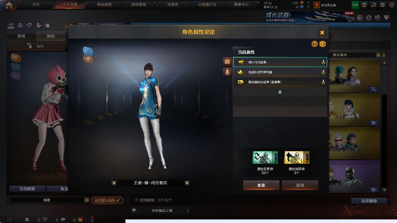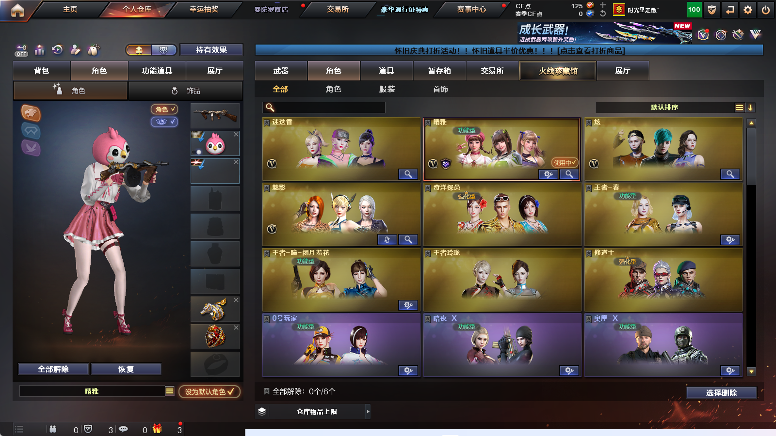 【通用级角色】空,新娜塔莎,灵狐者-X,潘多拉-X,暗夜-X,雪莉杨,青霞仙子,娟娟,灵狐者-职业经理,奥摩-X,剑齿虎-X,圣诞潘多拉-X,龙儿-小淘气,初恋灵狐,木兰,嘉年华灵狐,电竞少女,电光少女,奇洋探员,0号玩家
