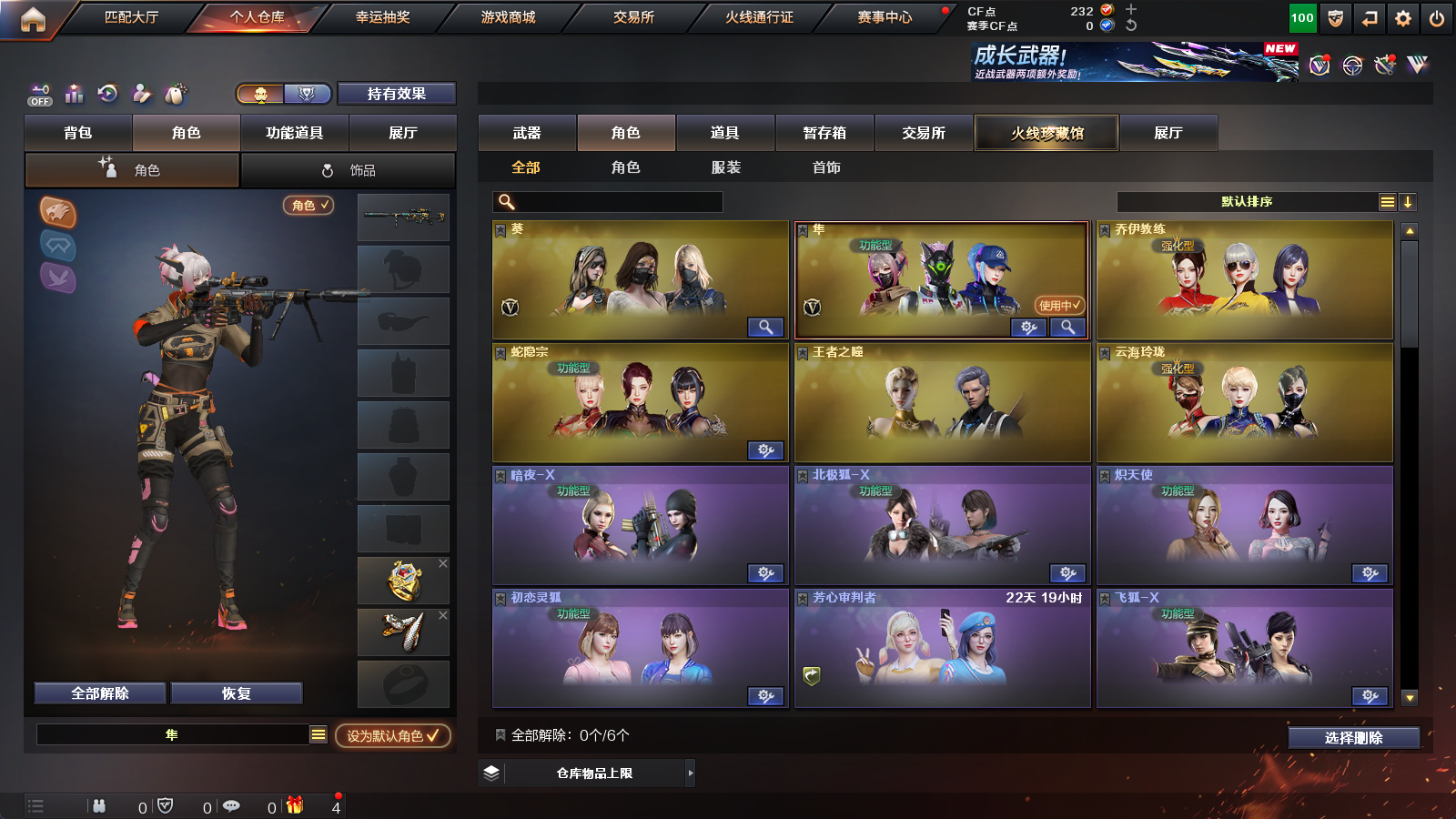 【强化级角色】幻影,雷霆-α,雷霆-β,复仇者,堕天使,G.E.M.邓紫棋,陈龙野-X,救世复仇,精英部队,王力宏,海军陆战队,国境防卫者,西部牛仔-网吧专属,铁扇公主,代号:翼,超能女侍,乔伊教练,