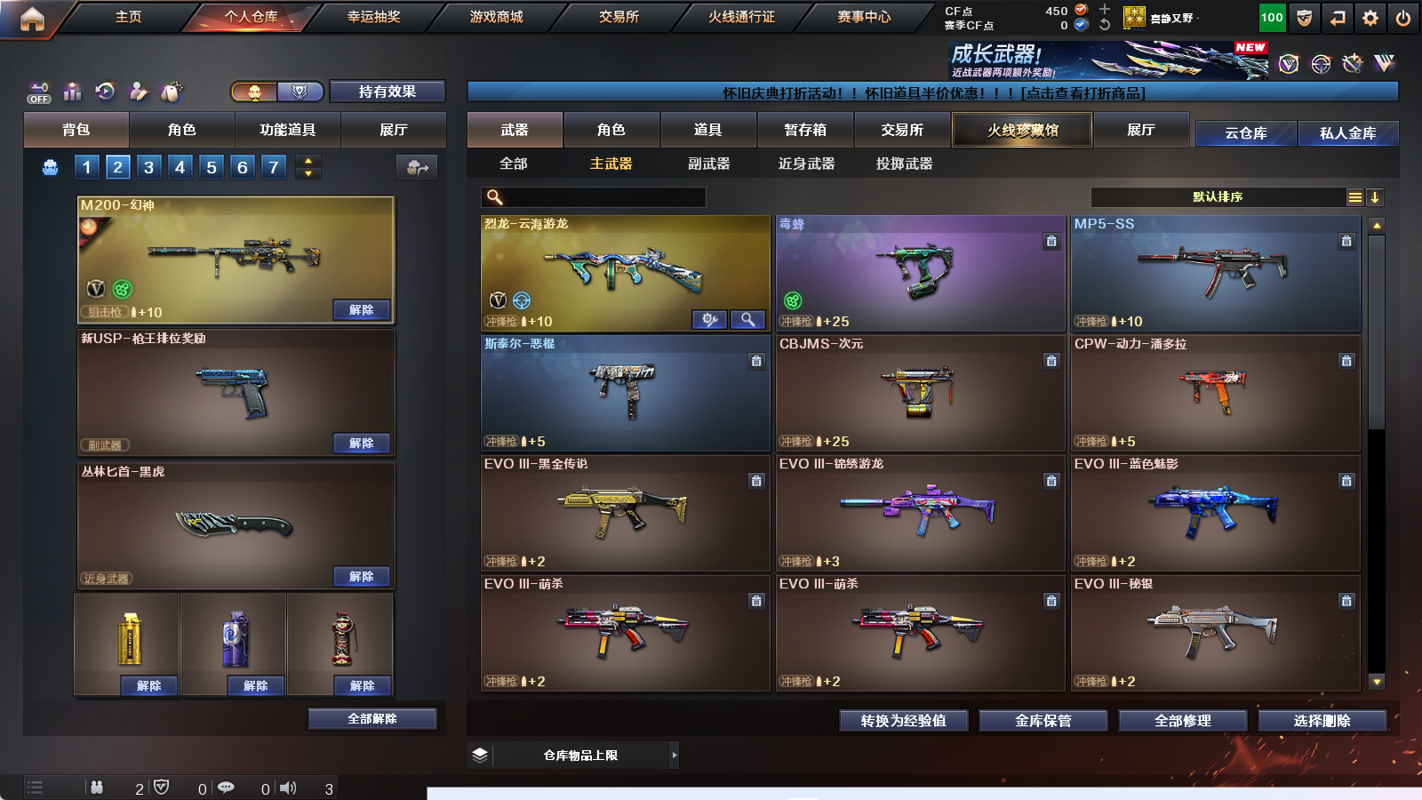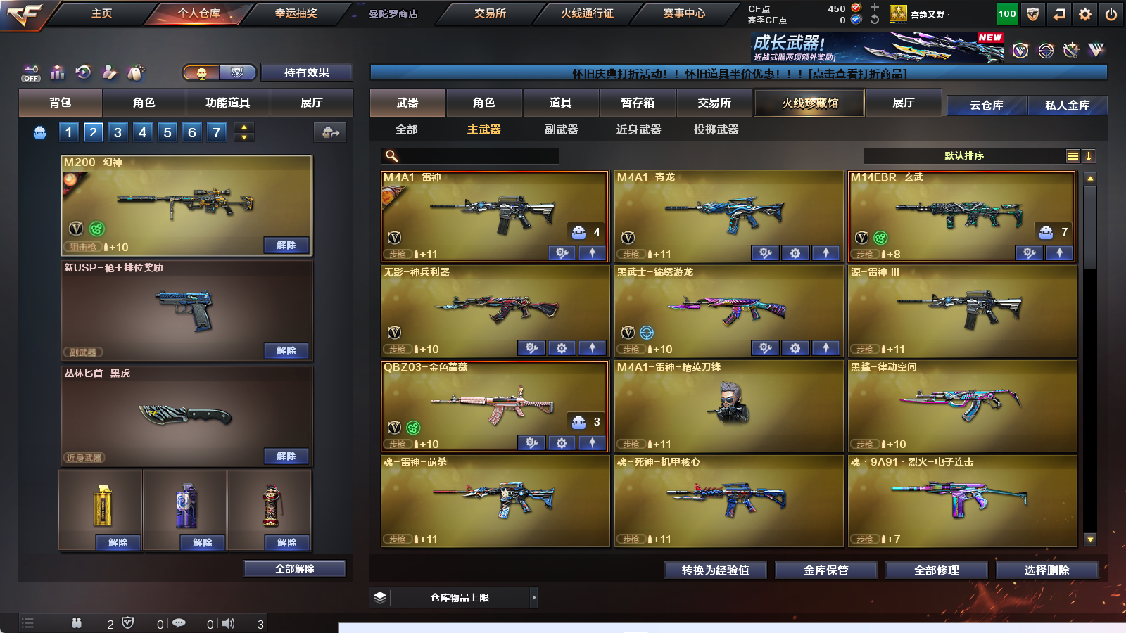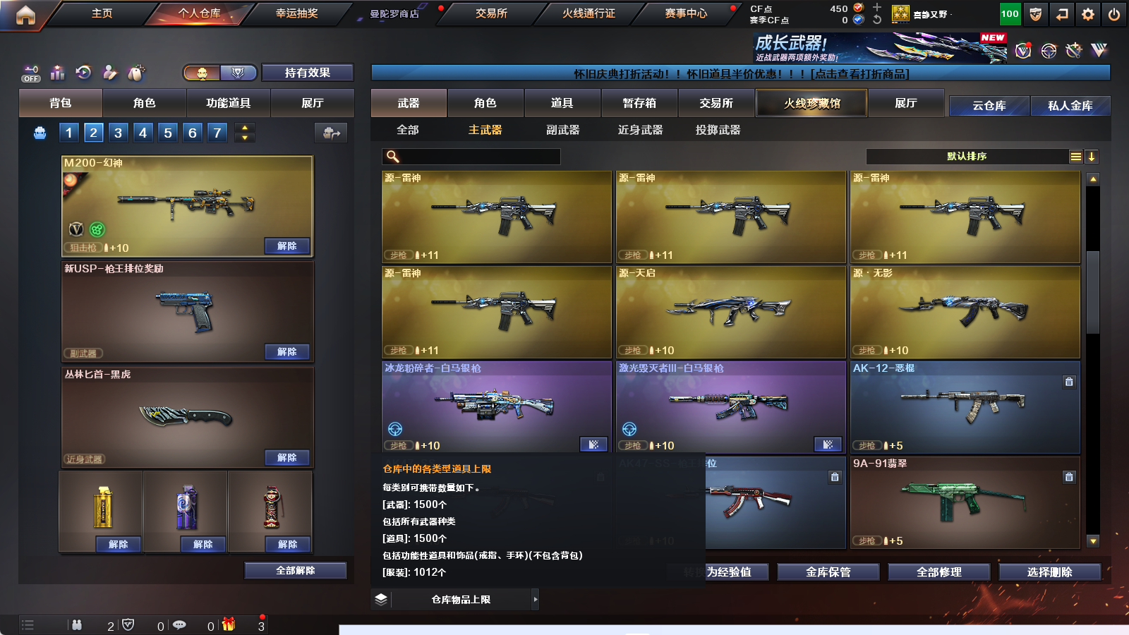 【英雄级武器】QBZ03-金色蔷薇,黑武士-锦绣游龙,烈龙-云海游龙,擎天-云海游龙,M4A1-雷神,龙啸,M14EBR-玄武,M4A1-青龙,M200-幻神,手雷-云海游龙,Barrett-云海玲珑,屠龙-云海游龙,无影-神兵利器