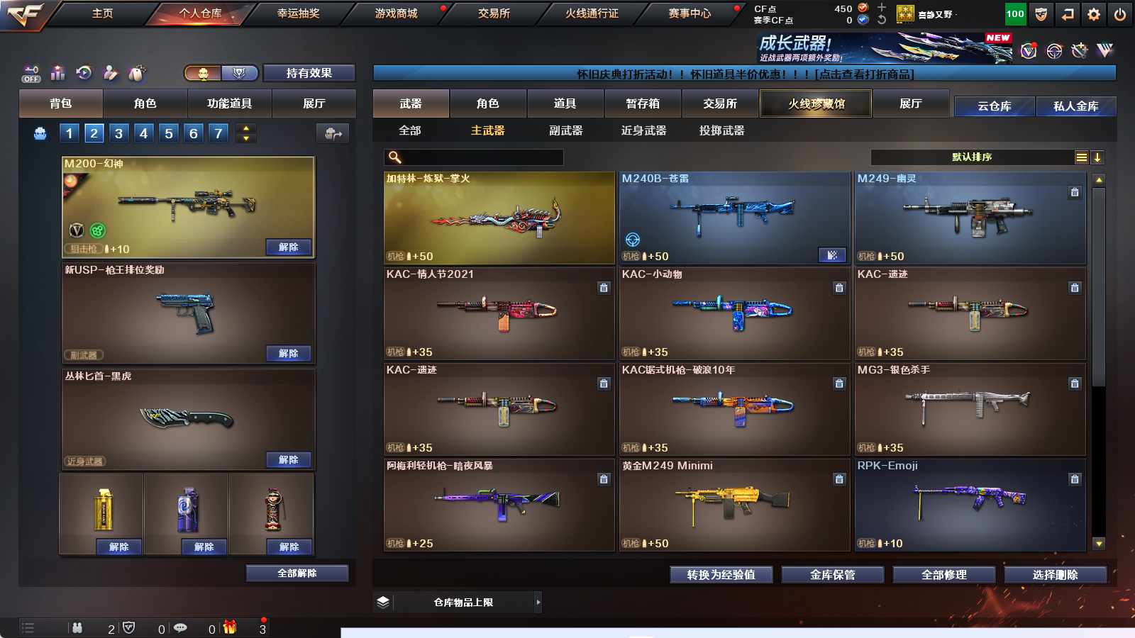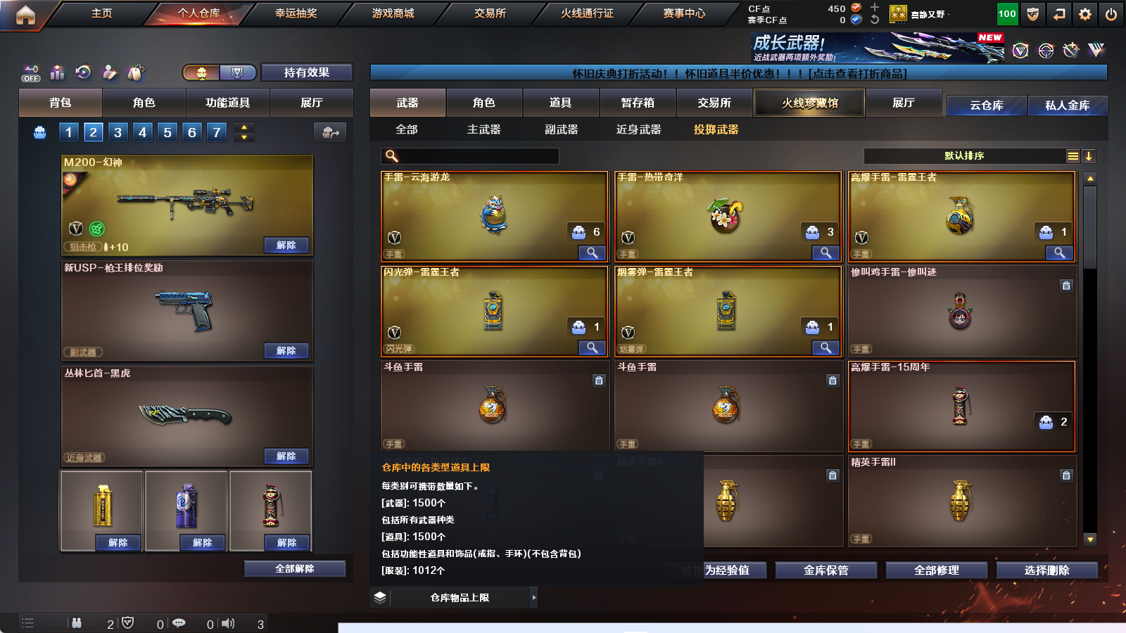 【普通武器】M4A1-雷神-精英刀锋,SPAS12-恶棍,红色烟雾弹,DesertEagle,DesertEagle,精英手雷II,AK47-轮回,愤怒公牛左轮-枪王排位,流光斩魔刀-枪王排位,M4A1-小菜鸡,AWM-小故障,M14EBR-S-落樱,9A91-破浪10年,黄金毛瑟,深海巨钳,QBZ03-电子连击,黄色烟雾弹,蜘蛛手雷-万圣节2023,暗杀者-静谧之夜,EVOⅢ-黑金传说,紫色烟雾弹-神秘黑洞,刺刀指虎-霓虹,粉色烟雾弹-甜蜜火力,Anaconda-炽焰核心,军用手斧-萌杀,闪光弹-宇航兔兔,雷蛇加特林,黄金AK-47,Barrett,M82A1,黄金AWM,黄金军用手斧,黄金M4A1,9A-91翡翠,新USP-春桃,M4A1-PINK,暗金沙漠之鹰,荣耀之证-荣耀之巅,白银AK-47,M4A1-青花瓷,M4A1-T,Cop,357-秦师,生化手雷,M14EBR-阿努比斯,沙漠之鹰-暗炎,Ultimax,100-金色豹纹,SPAS-12-卡通,沙漠之鹰-QT,M14EBR-粉红伪装,EVO,III-锦绣游龙,Scarlight-锦绣游龙,月饼手雷,棒球棒-像素,Cop357-迷彩,刘易斯枪,AK-47,闪光弹-狐妖,QBZ03-次元,CBS-次元,胜利奖杯手雷-枪王排位,QBZ191-海滩派对,闪光弹-关羽,COP-机甲刑天,闪光弹-飞虎队,烟雾弹-银月,鲲鹏手雷,烟雾弹-银月,幻刃-枪王排位S28,EVOIII-萌杀,闪光弹-飞虎队,高爆手雷-机甲刑天,烟雾弹-银月,烟雾弹-银月,烟雾弹-银月,鲲鹏手雷,KSG15-幻彩,COP-青帝,红色烟雾弹-锦绣游龙,KAC-小动物,M200-枪王排位,闪光弹-锦绣游龙,SPAS-12-卡通,Cop357-海滩派对,枪王之刃,OTs-23-精英爆破,煤炭-圣诞节2023,M4A1-暗金风暴,青花扇,毛瑟-青花瓷,闪光弹-QQ超级会员,Desert,Eagle-A,Barrett,M82A1,闪光弹-京剧黄,高爆手雷-15周年,Colt,1911-锦绣游龙,COP,357-平天大圣,M249-幽灵,动力CPW-锦绣游龙,5-枪王排位,精英手雷III,沙鹰-枪王排位,QBZ191-海滩派对,绿色烟雾弹,FNTPS,ScarLight-凤灵,魔能飞环-曼陀罗,胜利奖杯闪光弹-枪王排位,胜利奖杯烟雾弹-枪王排位,唐刀-大唐荣耀,AK-47-红龙,EVO,III-蓝色魅影,AWM-恶棍,AWM-恶棍,SR99-红色闪电,M37-春桃,招财猫-枪王排位,G36C-宇航兔兔,COP,357-牡丹,QBZ03-月,AK47-茉莉,军用铁锹-QT,新USP-春桃,新USP-枪王排位奖励,青花扇,胜利奖杯手雷-枪王排位,黄金M14EBR,M200-春桃,雷蛇加特林,沙漠之鹰-苍龙,虹光丛林匕首-枪王排位,COP,357-独角兽,猫猫手套,军用铁锹-蓝钻,蝎式冲锋枪-青花瓷,SR-25-小动物,闪光弹-枪王排位,AK47-破空冰刃,鲲鹏手雷,精英手雷II,StG44,QBZ03-次元,KAC-情人节2021,伪装之锋,萨拉坦铁棍,闪光弹-虎牙,巴雷特-情人节2020,98K-黑金,沙漠之鹰-新春特别版,虹光鹰爪-枪王排位,胜利奖杯闪光弹-枪王排位,胜利奖杯烟雾弹-枪王排位,COP-金蝉子-枪王排位,手雷-波特魔方,汤姆逊-老兵,红色烟雾弹-,新春神龙,AWM-红色悦动,斯泰尔-巧克力,AWM-饼干情人,USP-掌上穿越火线,水晶沙漠之鹰,芭蕉扇,AK47-SS-枪王排位,虹光丛林匕首-枪王排位,Desert,Eagle-S,双龙,龙拳,黄金M4A1,EVO,III-秘银,AWM-恶棍-枪王排位,COP-机甲刑天,AWM-A,疾爆烟雾弹,M4A1-S,Desert,Eagle-S,破天狂龙,黄金丛林匕首,Colt,1911-大黄蜂,沙鹰-青龙,胜利奖杯手雷-枪王排位,AK47-EMOJI,M200-月,AK47-祥云苍龙,98K-幻能朋克,雷神之怒-机甲核心,Cop357-凤灵,暗杀者-绿豆,M4A1-XS-耀龙,尼泊尔-机甲刑天,Cop357-赤龙,新USP-枪王排位奖励,精英手雷II,环刃-枪王排位,Cop357-迷彩,蓝色魅影,Cop357-凤灵,军用铁铲-航天科技,M14EBR-S-落樱,小刀-雪原,M700,FR-F2-炫彩,CPW-动力-潘多拉,98K-冰雪霸主,军用手斧-萌杀,迷彩沙鹰-70KG,AK47-CFPL青花瓷出征利器,M200-朋克,USP-掌上穿越火线,M4CQBR-AP-孔明,鹰爪-枪王排位,KAC锯式机枪-破浪10年,2022裸装荣耀之证,Cop357-维纳斯,M4A1-S-能量核心,USP-黑大圣,AWM-S-绿松石,Cop357-维纳斯,Anaconda-狂獠,AK-12-恶棍,M14EBR-QT,M4A1-战损,M21-甜心,萨维奇110-黄蜂,沙漠之鹰-盛典-CFS,2022,AK-47-二次元,EVOIII-,曹操,闪光弹-网吧专属,COP,357-平天大圣,Ultimax,100-金色豹纹,M200-月,Barrett-耀龙,M4A1-战损,斯泰尔-恶棍,Barrett-耀龙,柯尔特-捣乱兔兔,M200-神秘黑洞,QBZ03-月,蟒蛇-炫彩,刺刀指虎-朋克,M4A1-蓝水晶,AWM-小故障,AK-103-甜心,M4A1-XS-赤龙,闪光弹-Wegame,鲲鹏手雷,暗杀者-绿豆,5-黄蜂,闪光弹-十二生肖-猴,M4A1-狂欢-CFS,生化手雷,AWM-灵狐-15周年嘉年华,手雷-15周年嘉年华,烟雾弹-孔明,军用铁锹-QT,AWM-万圣节刀锋,暗金沙漠之鹰,小刀-雪原,胜利奖杯手雷-枪王排位,金丝匕首,DesertEagle,AN94,SPAS-12-雷电核心,柯尔特-玫瑰,Cop357-萌杀,Cop357-萌杀,MAC-10-幻能朋克,闪光弹-枪王排位,沙鹰-枪王排位,AK47-茉莉,Cop357-萌杀,闪光弹-快手,M14EBR-粉红伪装,M4A1-S-火种,灵狐卡片-15周年嘉年华,粉色烟雾弹-15周年嘉年华,FAMAS,G2-碳素,雷神之怒-机甲核心,MP5K,A4-重金属,丛林匕首-枪王排位,马来剑-锋芒破茧,机械手雷,刺刀指虎-霓虹,匕首-绿松石,AK-47-二次元,丛林匕首-玫瑰,USP-黑大圣,M4CQBR-AP-孔明,尼泊尔-大黄蜂,23-湛蓝裂痕,AK-74,金丝匕首,金丝匕首,金丝匕首,金丝匕首,金丝匕首,KSG15-幻彩,黄金温彻斯特,凤凰之力,M4A1-蓝水晶,金箍棒,AK47-齐天大圣,双龙,影之刃-小故障,MAC-10-涂鸦,Ultimax,100-金色豹纹,愤怒公牛左轮-枪王排位,蝴蝶刀-枪王排位,精英手雷VII,凤凰之力,M4A1-卡通,AWM-Pink,超级矮个子-绝迹,尼泊尔军刀-战龙,沙漠风暴,Spas-12-幻能朋克,KAC-遗迹,FAMAS,G2-碳素,斗鱼手雷,M4A1,FAMAS,G2-碳素,胜利奖杯闪光弹-枪王排位,COP-金蝉子-枪王排位,胜利奖杯烟雾弹-枪王排位,丛林匕首-黑虎,M37-恶棍,动力CPW-摸金校尉,Barrett-捣乱兔兔,胜利之光,虹光鹰爪-枪王排位,刺刀指虎-朋克,AK47-狼牙,9A91-卡通,RPK-Emoji,MP5-SS,烟雾弹-孔明,暗金鹰爪,MAC-10-幻能朋克,M4A1-战损,尼泊尔-T,新USP-锋芒破茧,迷彩沙鹰-70KG,KAC-遗迹,AK-47-二