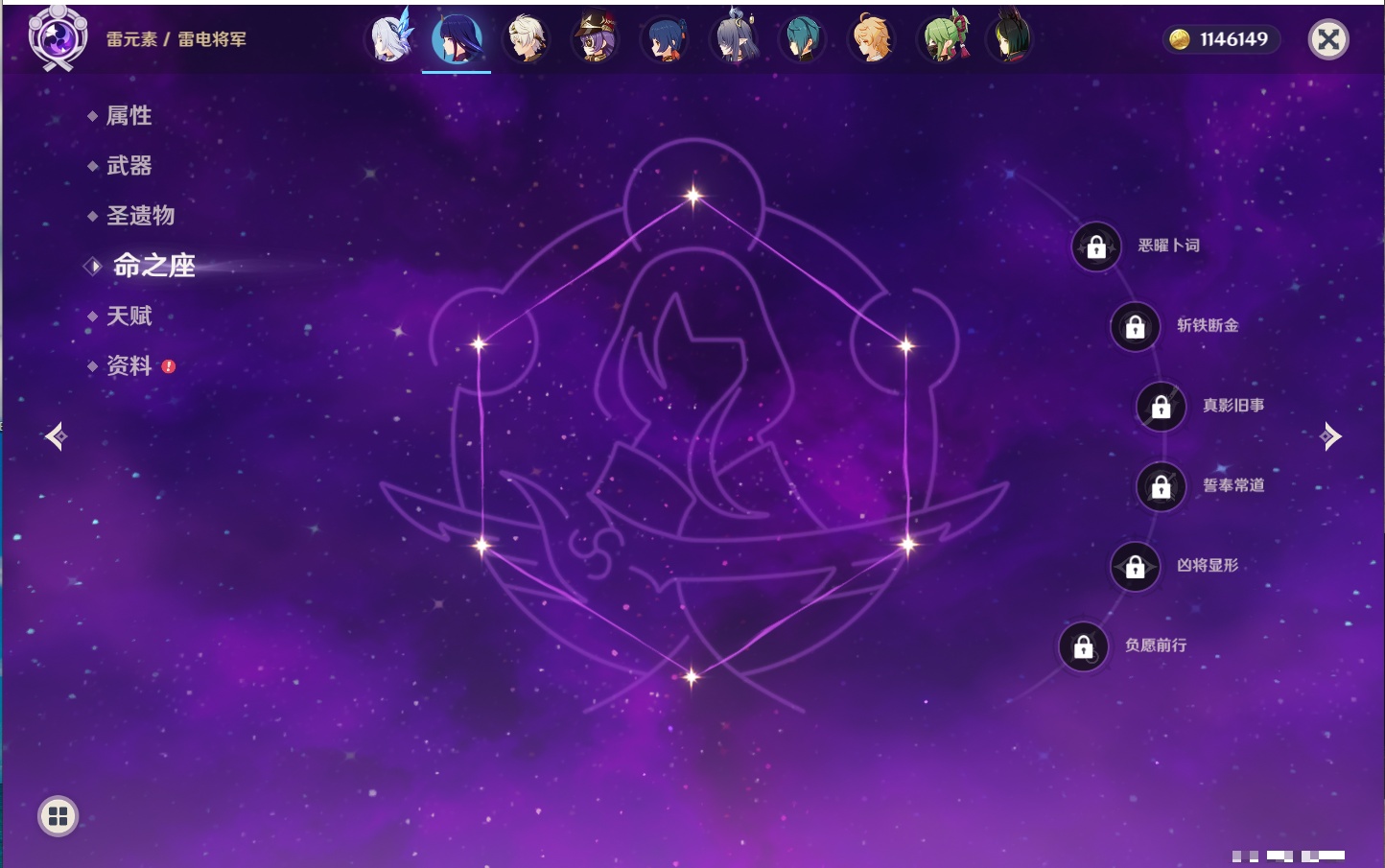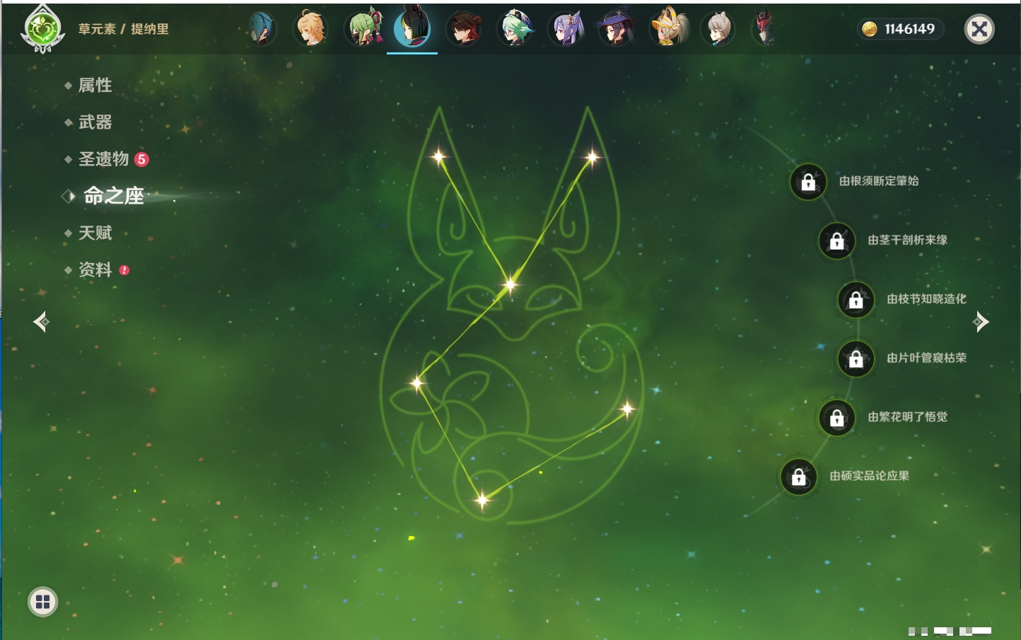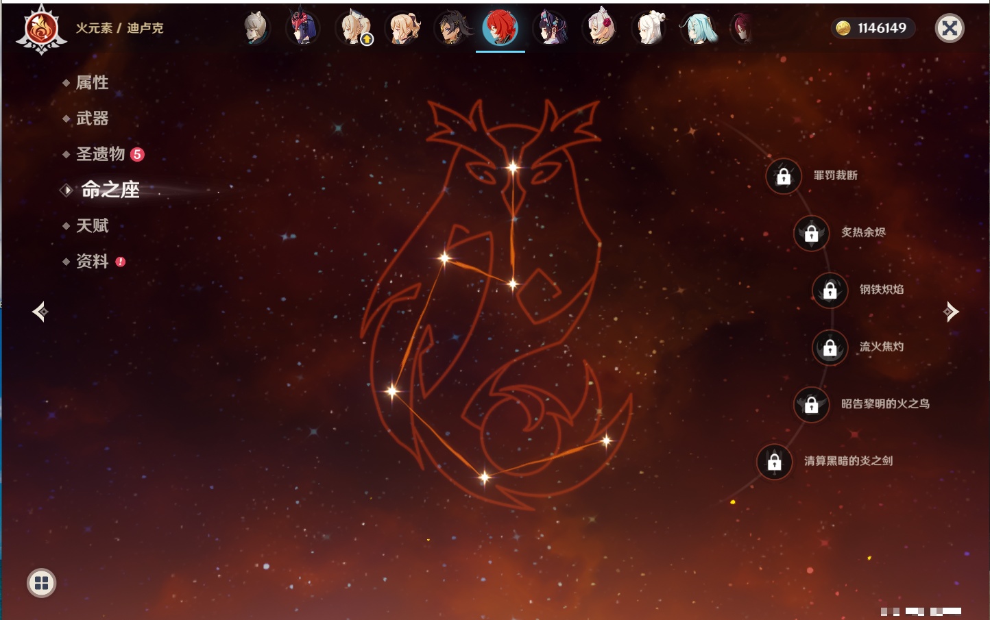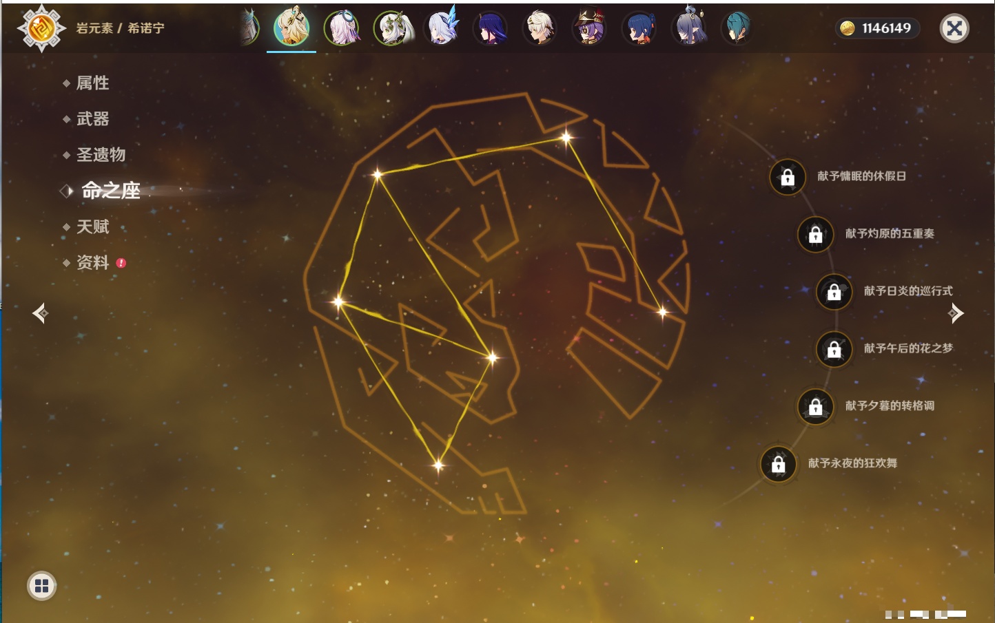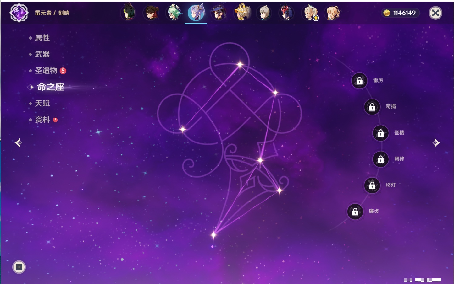 【13个五星角色】,2命莫娜,1命那维莱特,1命迪希雅,1命琴,0命纳西妲,0命提纳里,0命雷电将军,0命刻晴,0命迪卢克,0命希诺宁,0命茜特菈莉,0命丝柯克,0命菈乌玛,