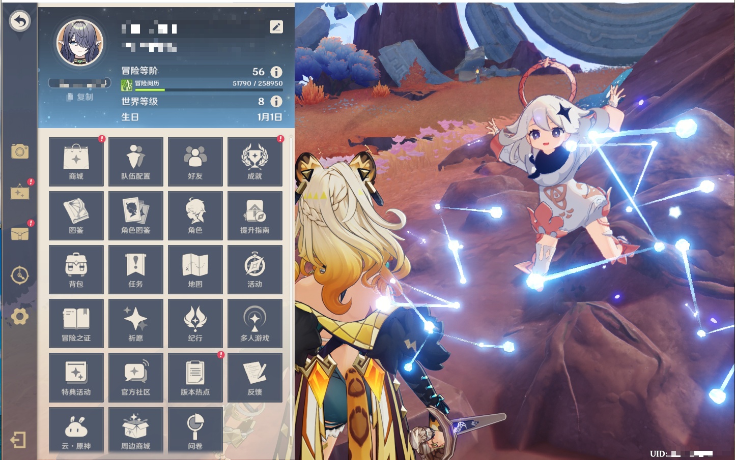 PX_2274571-,未绑定邮箱,,冒险等级56级,男主,22黄,13个五星角色,4个五星武器,纠缠之源0--原石197--圣遗物117--【时装】,炽绘奇旅,