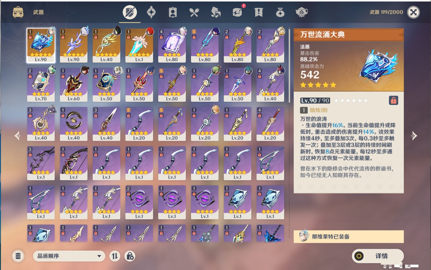 【4个五星武器】,精1万世流涌大典,精1苍耀,精1猎人之径,精1天空之傲,