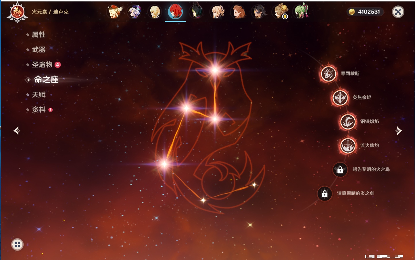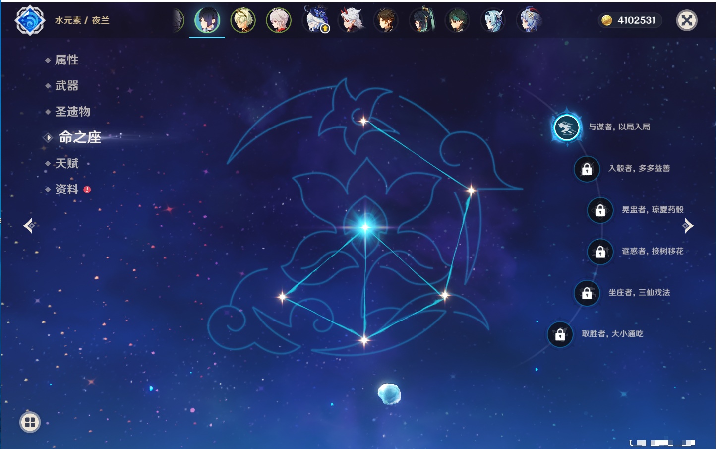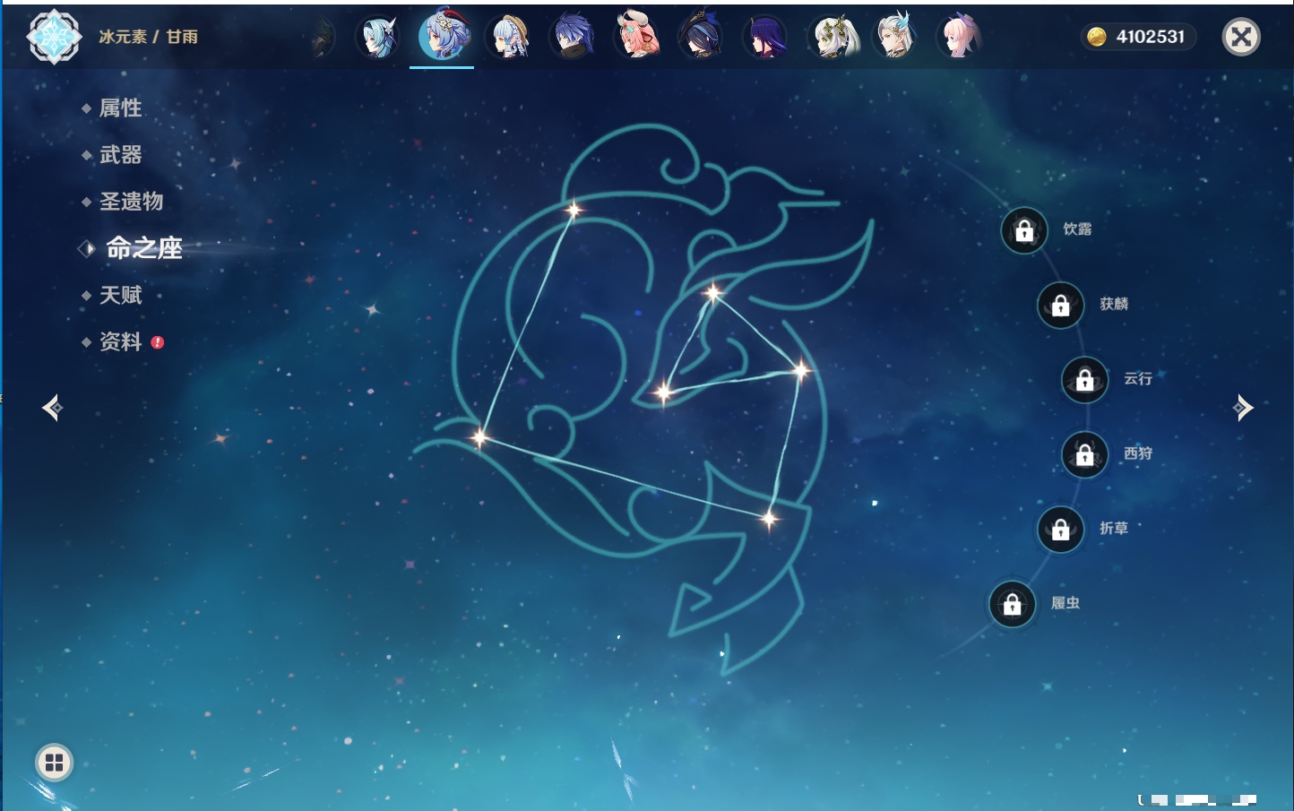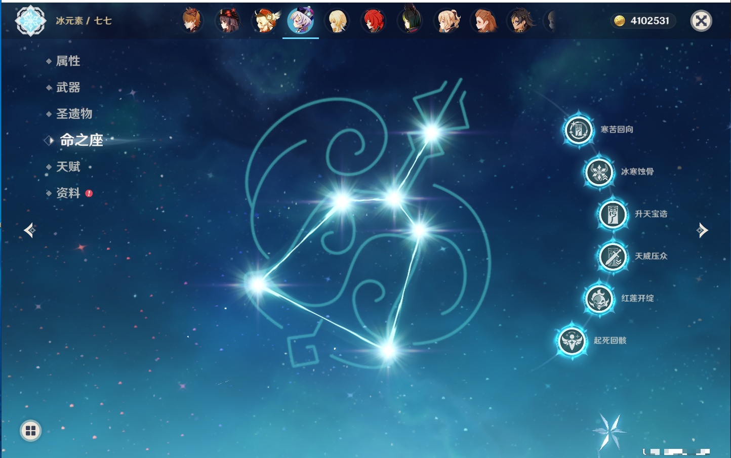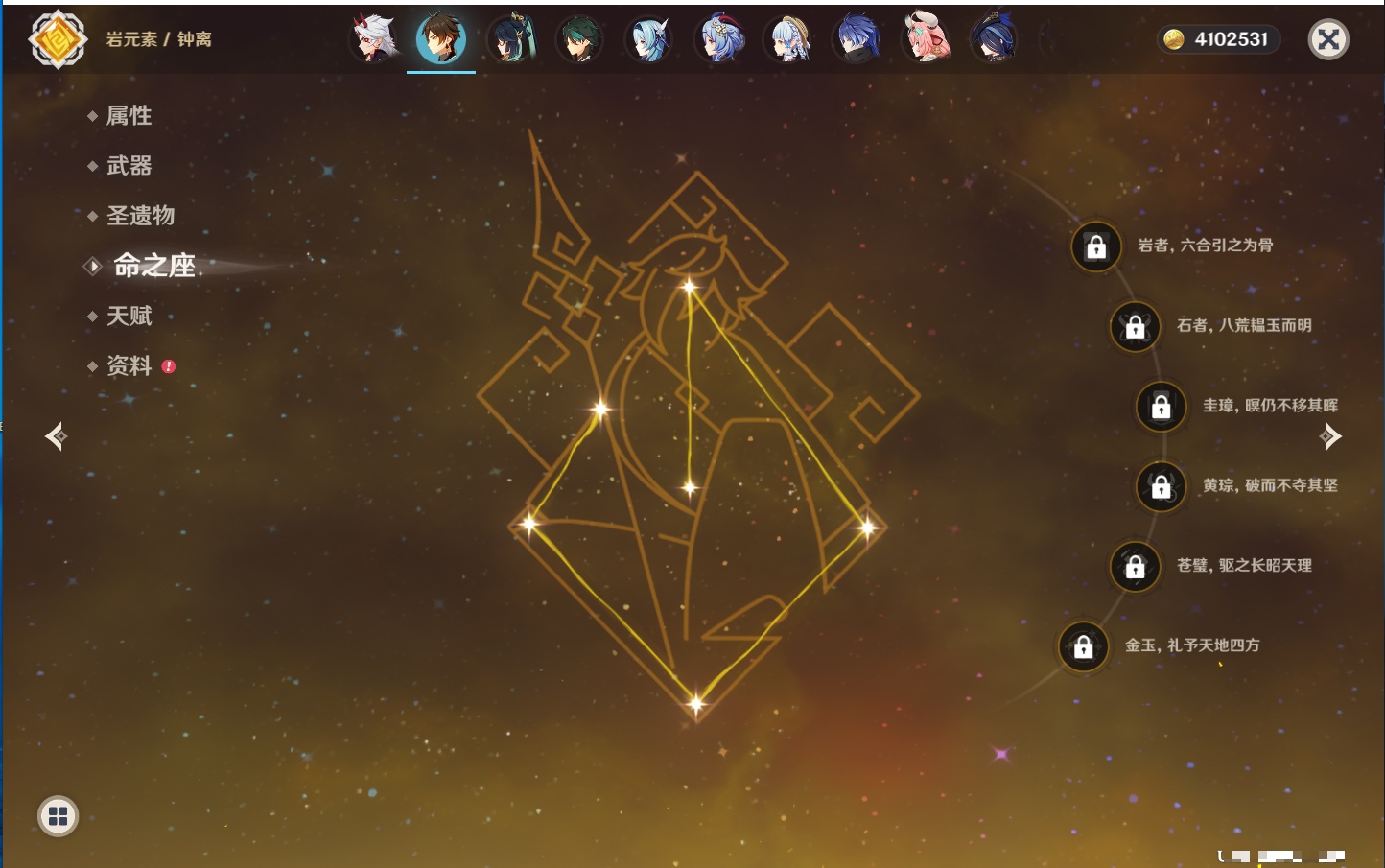 【26个五星角色】,满命七七,4命迪卢克,1命迪希雅,1命夜兰,1命雷电将军,1命胡桃,1命珊瑚宫心海,1命琴,0命克洛琳德,0命阿蕾奇诺,0命闲云,0命芙宁娜,0命那维莱特,0命纳西妲,0命提纳里,0命荒泷一斗,0命优菈,0命枫原万叶,0命神里绫华,0命钟离,0命甘雨,0命魈,0命可莉,0命达达利亚,0命菲林斯,0命瓦雷莎,