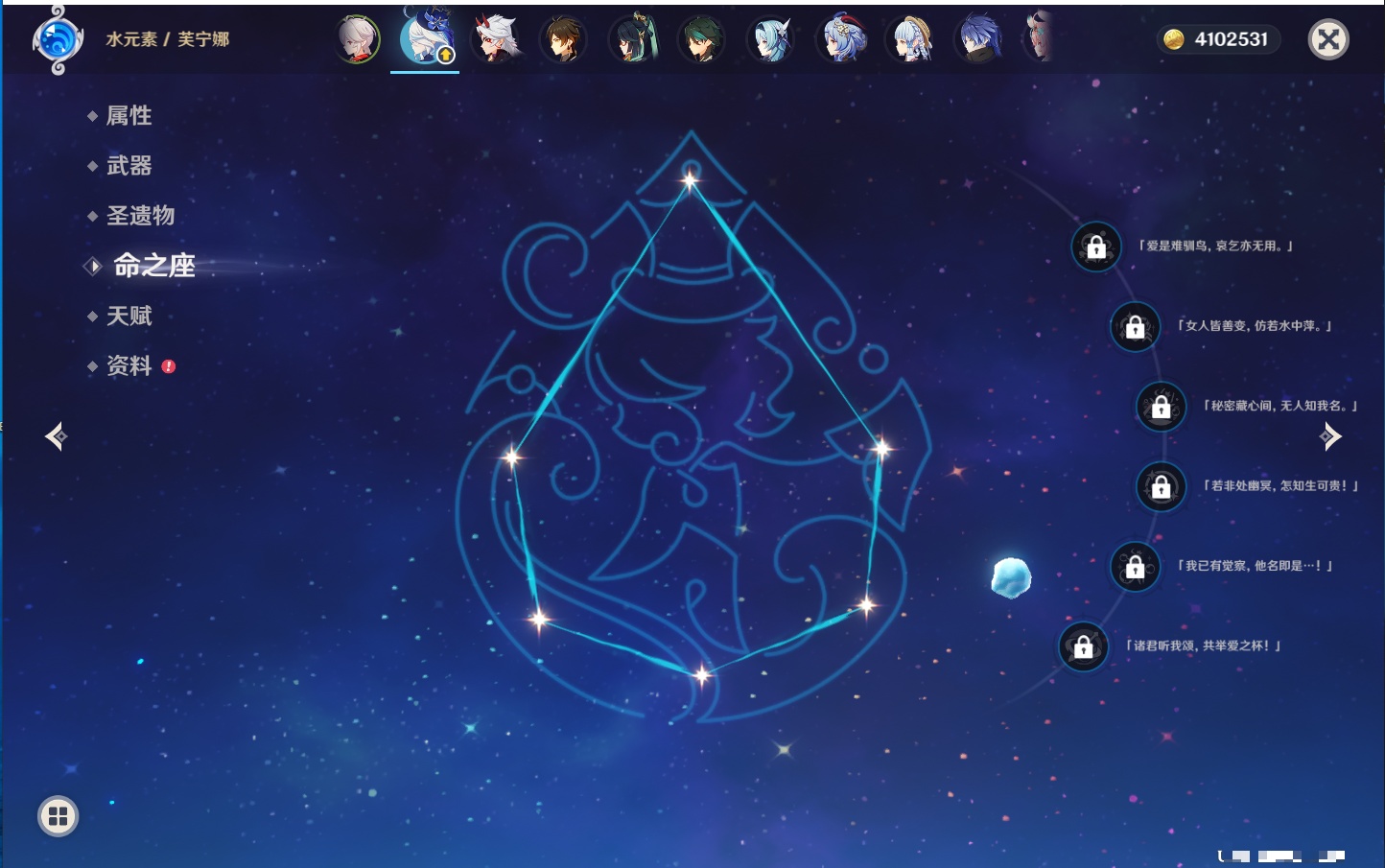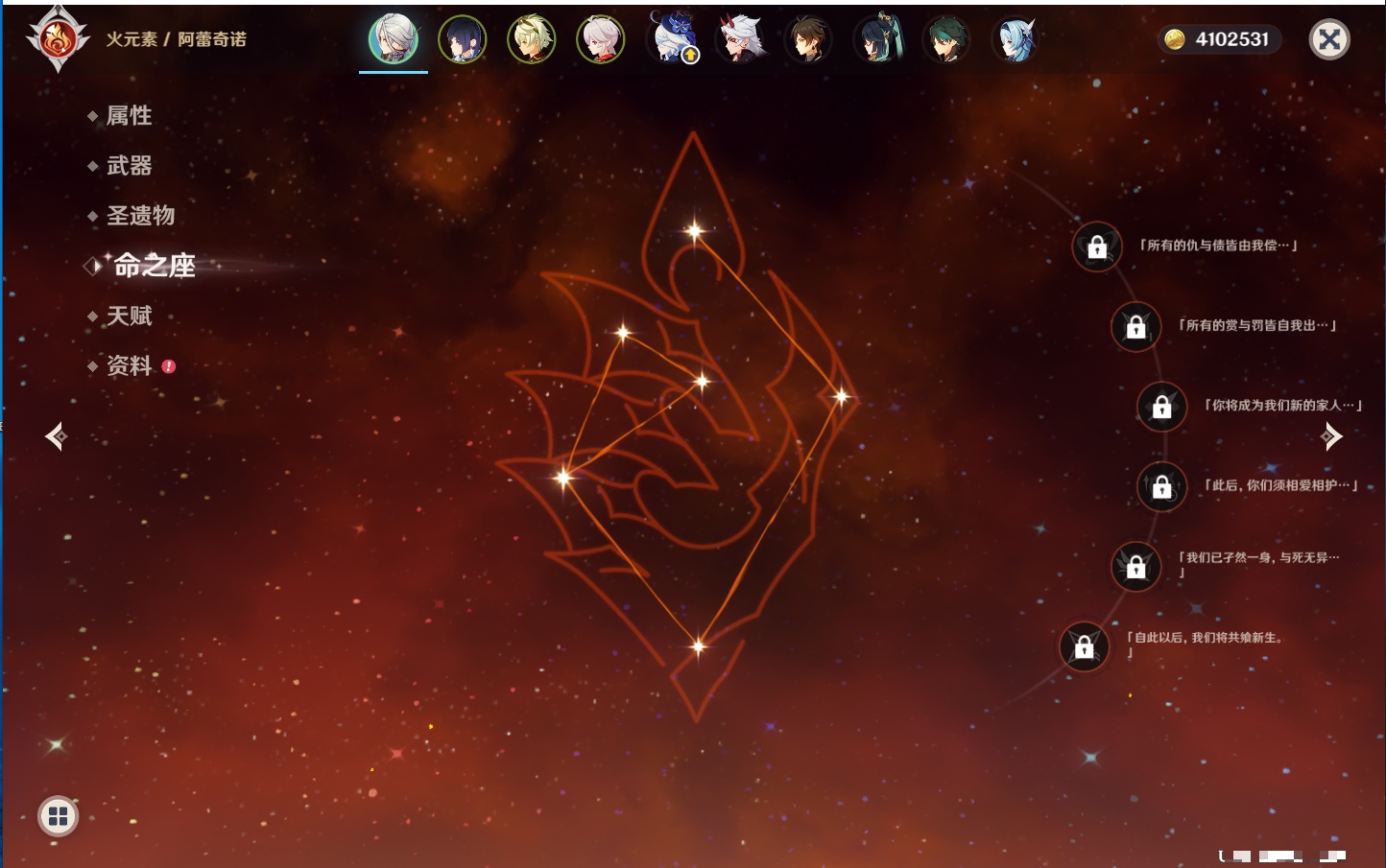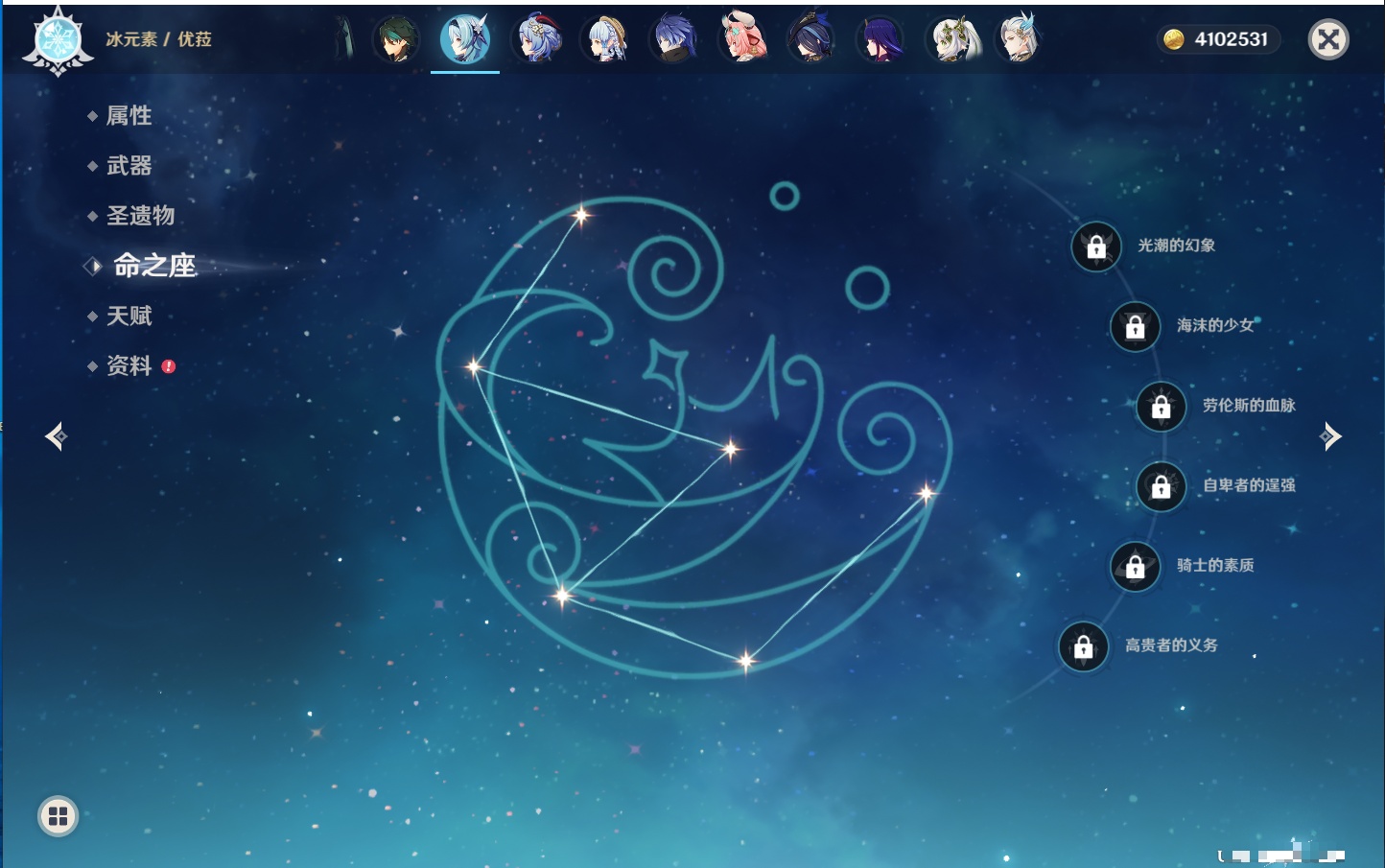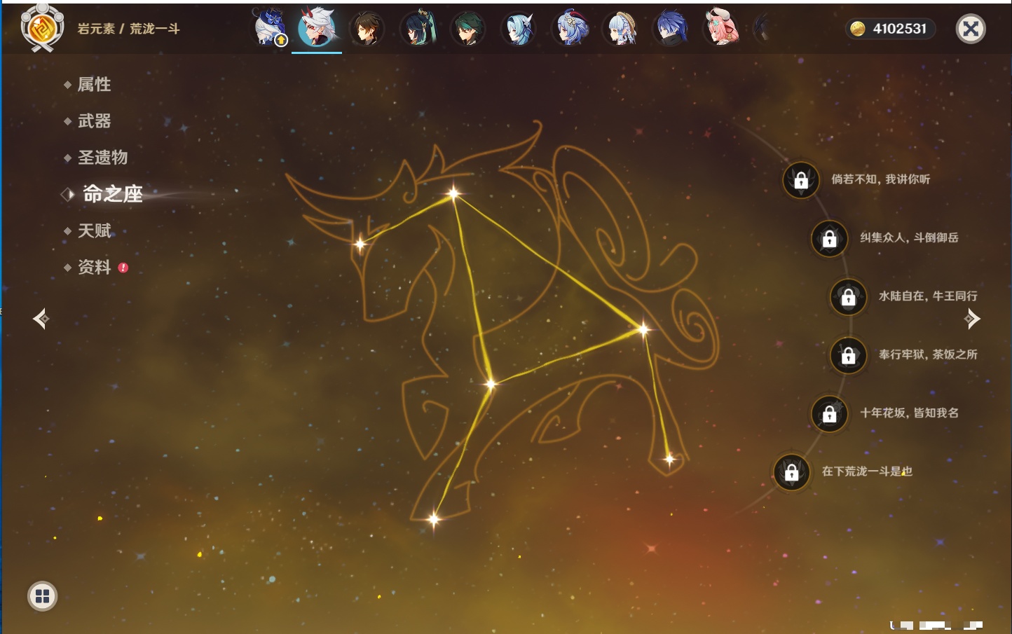 【26个五星角色】,满命七七,4命迪卢克,1命迪希雅,1命夜兰,1命雷电将军,1命胡桃,1命珊瑚宫心海,1命琴,0命克洛琳德,0命阿蕾奇诺,0命闲云,0命芙宁娜,0命那维莱特,0命纳西妲,0命提纳里,0命荒泷一斗,0命优菈,0命枫原万叶,0命神里绫华,0命钟离,0命甘雨,0命魈,0命可莉,0命达达利亚,0命菲林斯,0命瓦雷莎,
