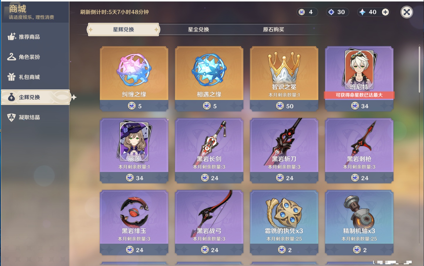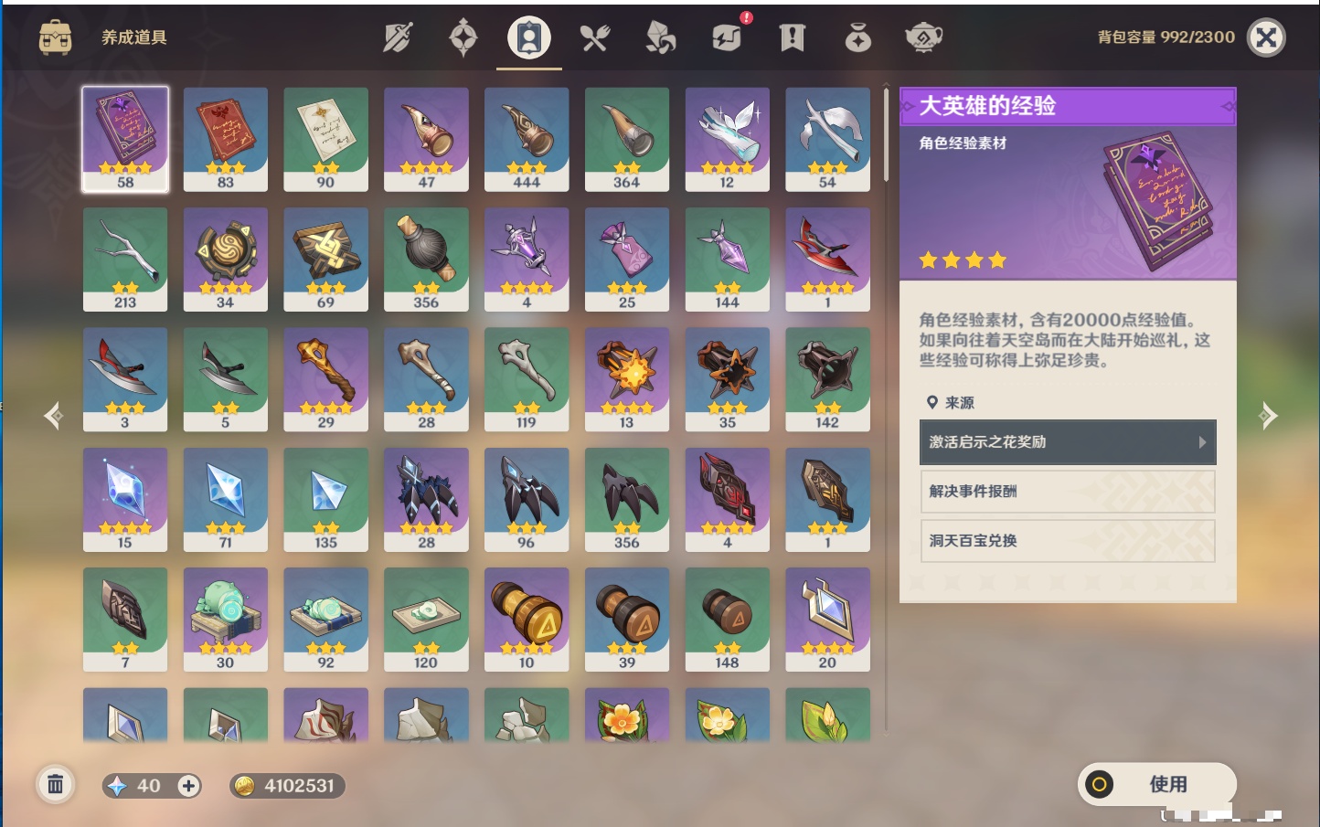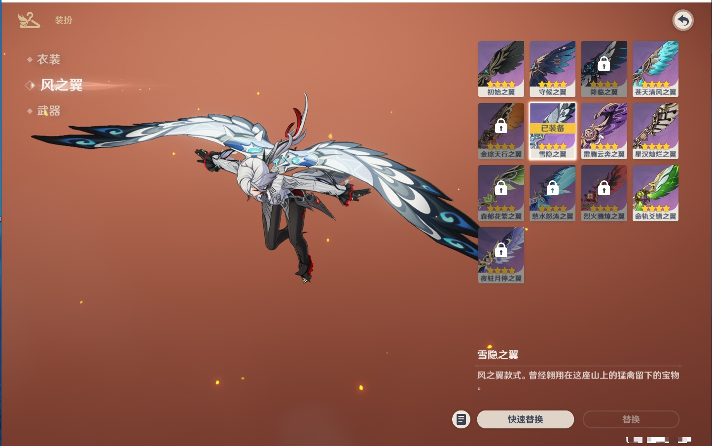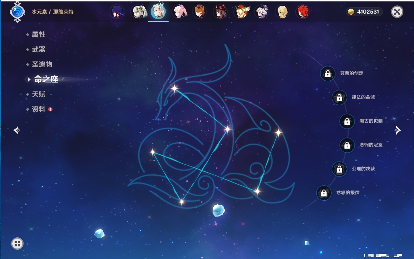 【20个五星武器】,精3天空之卷,精2阿莫斯之弓,精2天空之刃,精1若水,精1万世流涌大典,精1千夜浮梦,精1血染荒城,精1赤月之形,精1薙草之稻光,精1息灾,精1和璞鸢,精1护摩之杖,精1松籁响起之时,精1静水流涌之辉,精1雾切之回光,精1苍古自由之誓,精1风鹰剑,精1最初的大魔术,