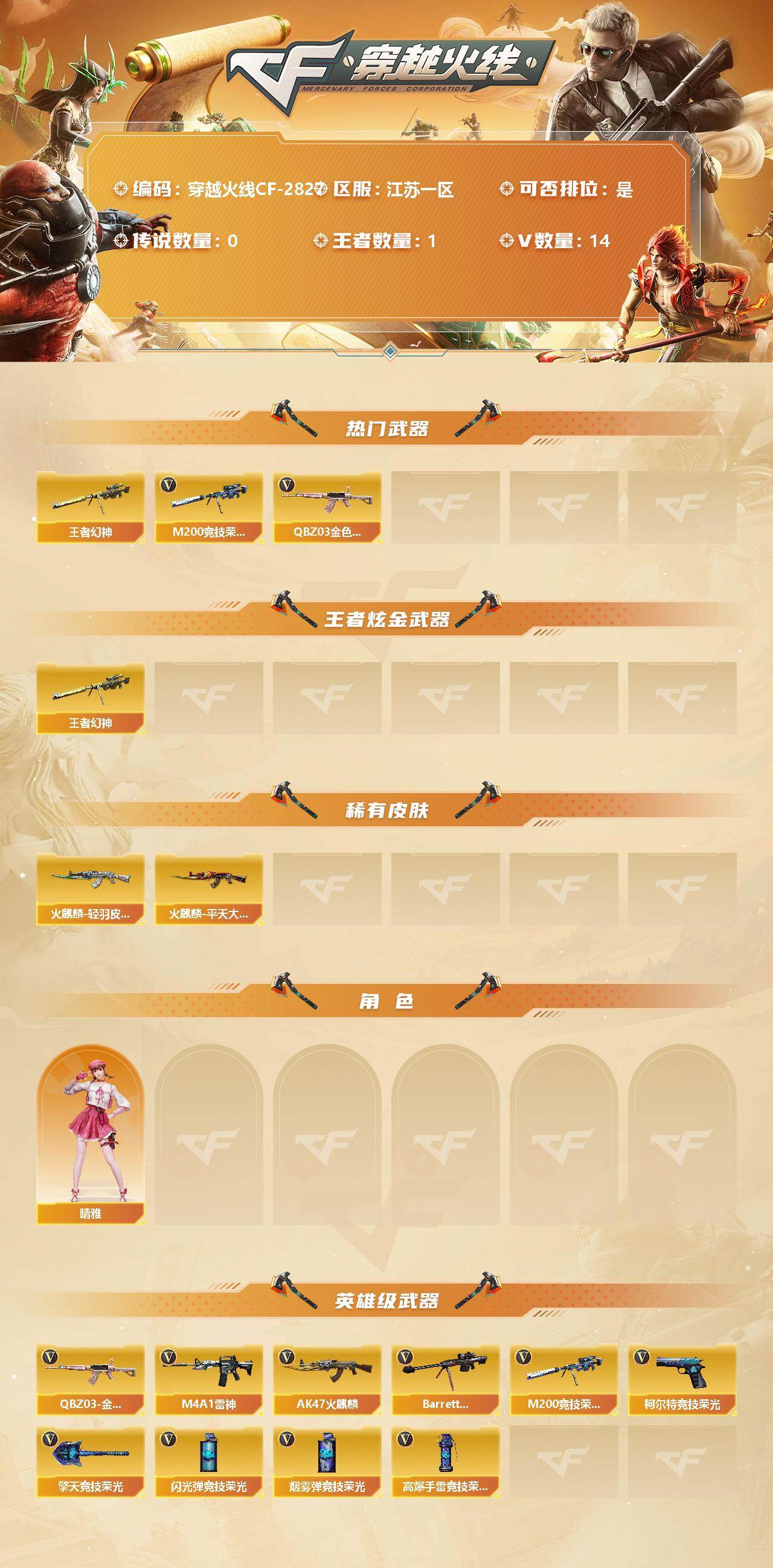 PX_2294452-02【东部战区,江苏一区,12V,1王者】,王者幻神,M200-竞技荣光,QBZ03-金色蔷薇,M4A1雷神,AK47火麒麟,,