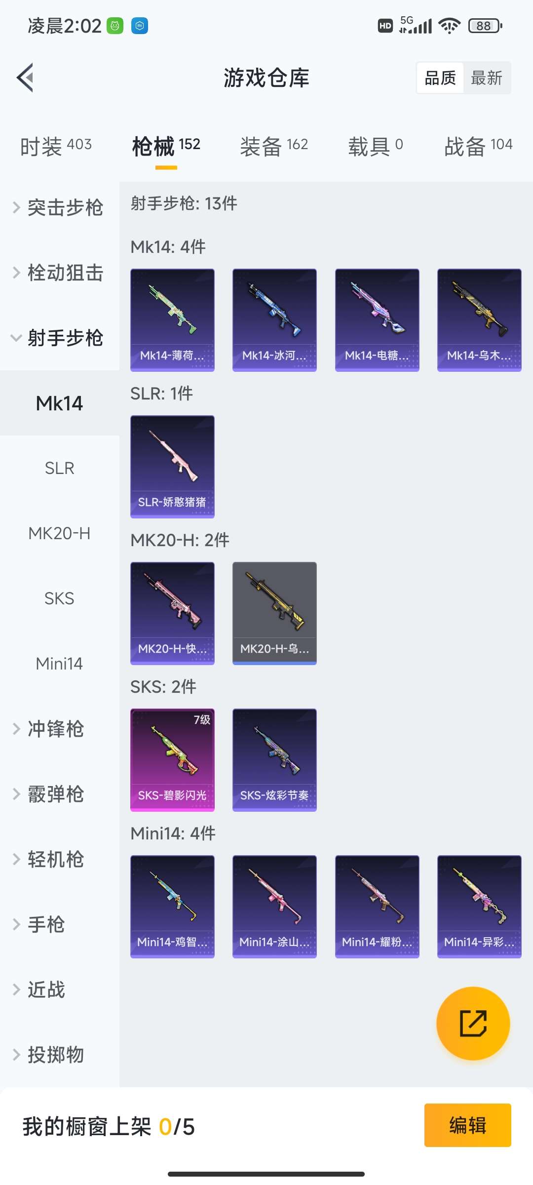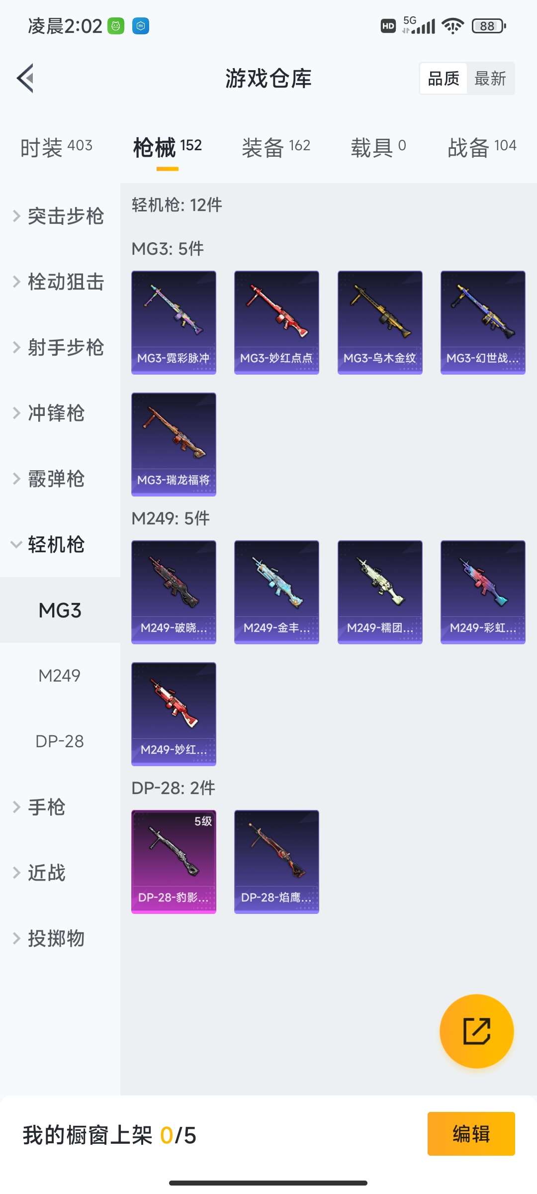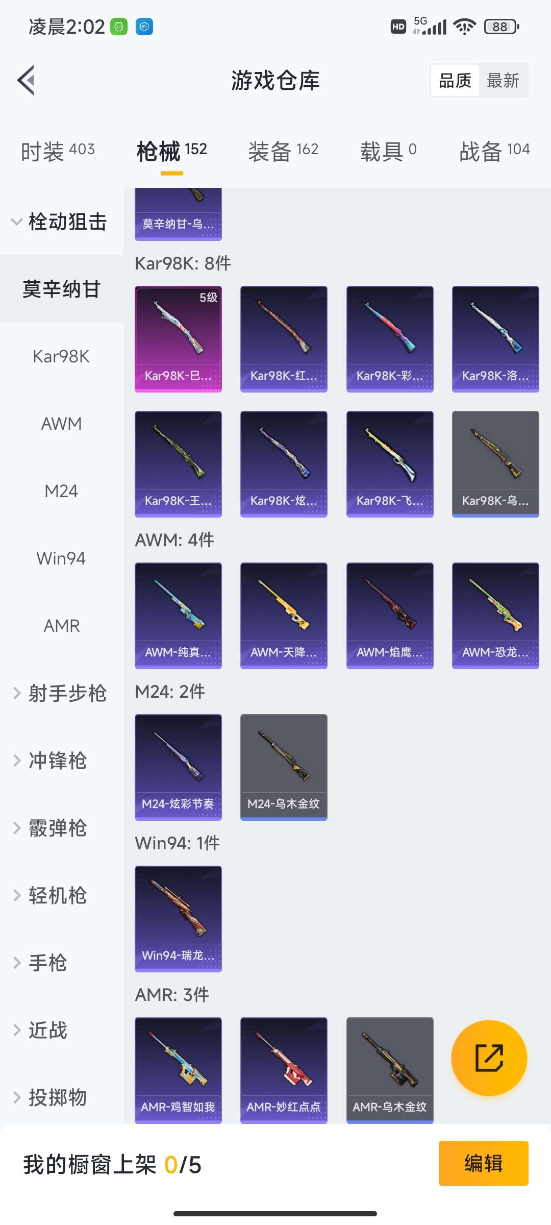 【4特效枪】,Kar98K-巳巳如意,(5级),DP-28-豹影疾电,(5级),SKS-碧影闪光,(7级),SCAR-L-青春物语,(7级),