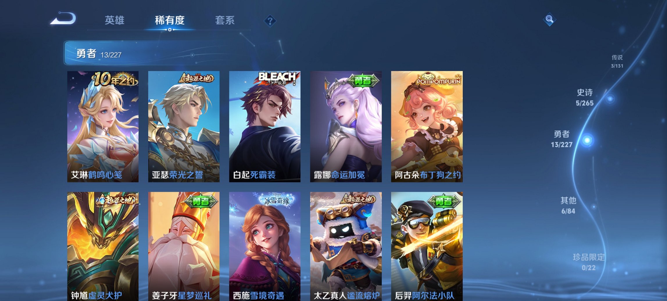 W10022【安卓区V8】可二次实名,英雄104,皮肤161,典藏:李白鸣剑.曳