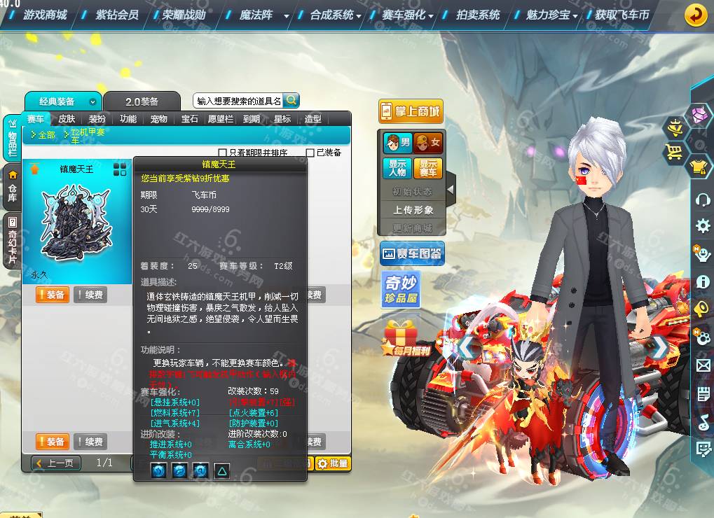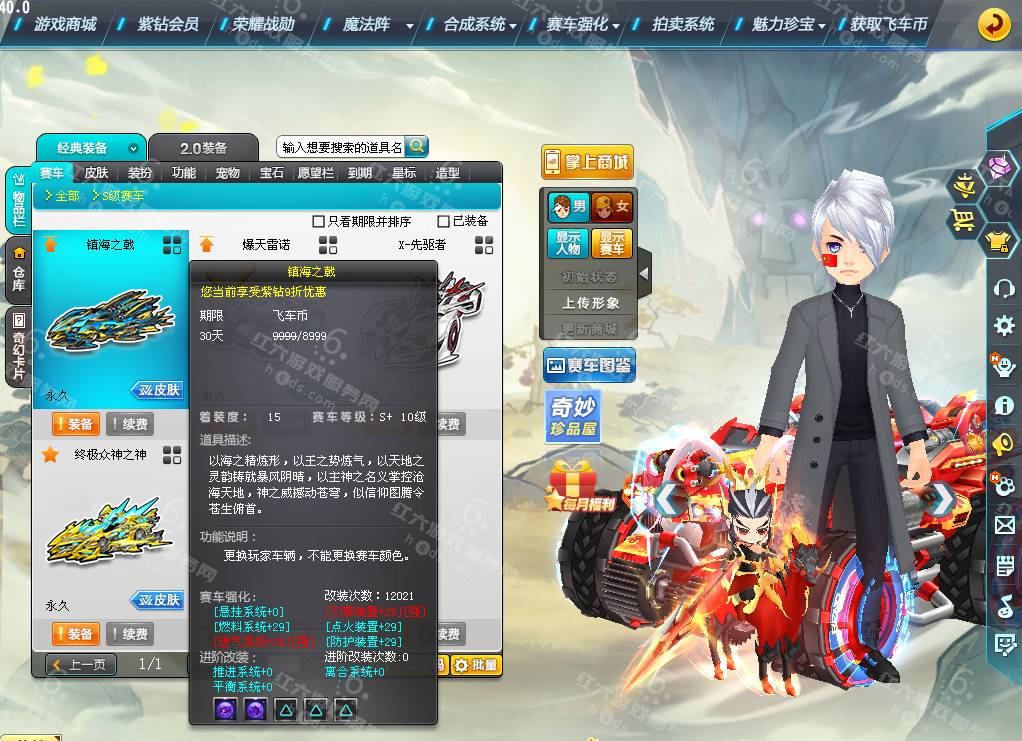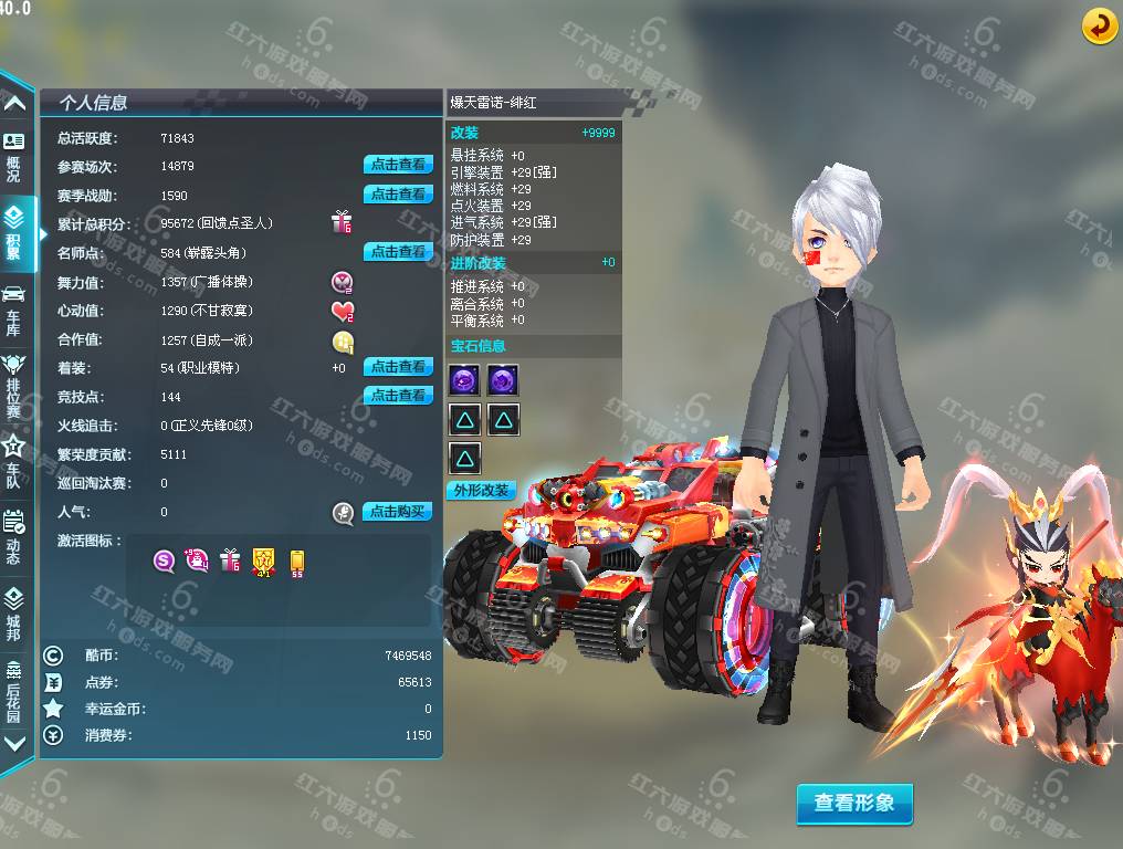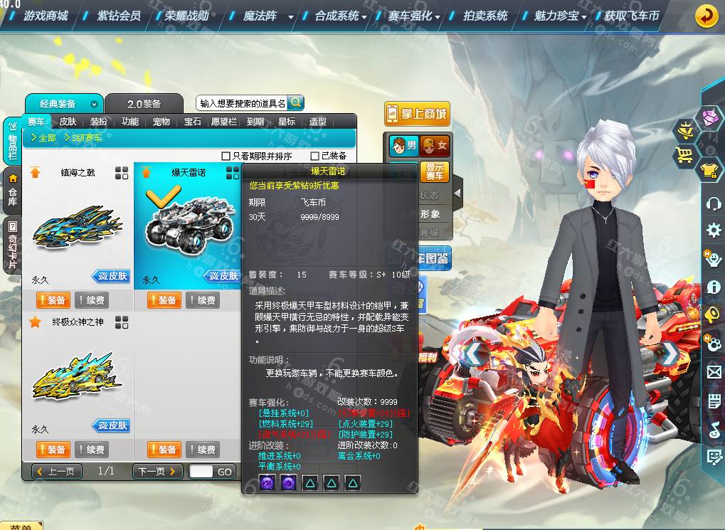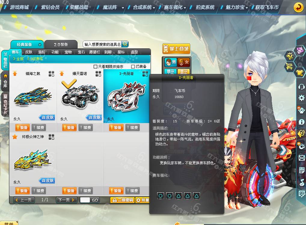 DS1936【电信一区】,等级161级,魅力8888,荣誉136W,紫钻4级,S车;双四爆天雷诺绯红+29,双四镇海之戟+29,终极众神之神,X先驱者,T2;镇魔天王,A车*10,T1*2,宠物*9,骑宠*9;小吕布+9,坐骑*2,套装男16页,套装女5页,夺宝碎片783,6666R,