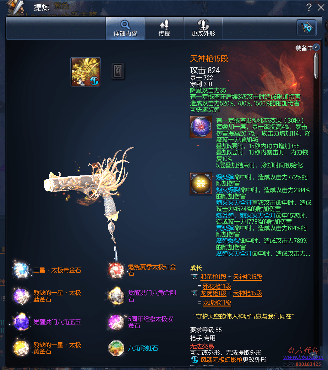 12570,无日峰枪手,侠义团70段,三星太极石X1,邪花元气石11段,天罚真气石11段,天神枪15段,极限卓越暗海戒指1段,极限卓越泰天耳环3段,极限卓越泰天项链3段,天阳手镯12段,圣天腰带12段,铁腕手套12段,觉醒昆仑秘功牌8段,觉醒无限神功牌7段,毁灭之梦幻胡11段,觉醒白鹿灵1段,不灭之守护石1段,雷神星9段,衣服141件,2000R