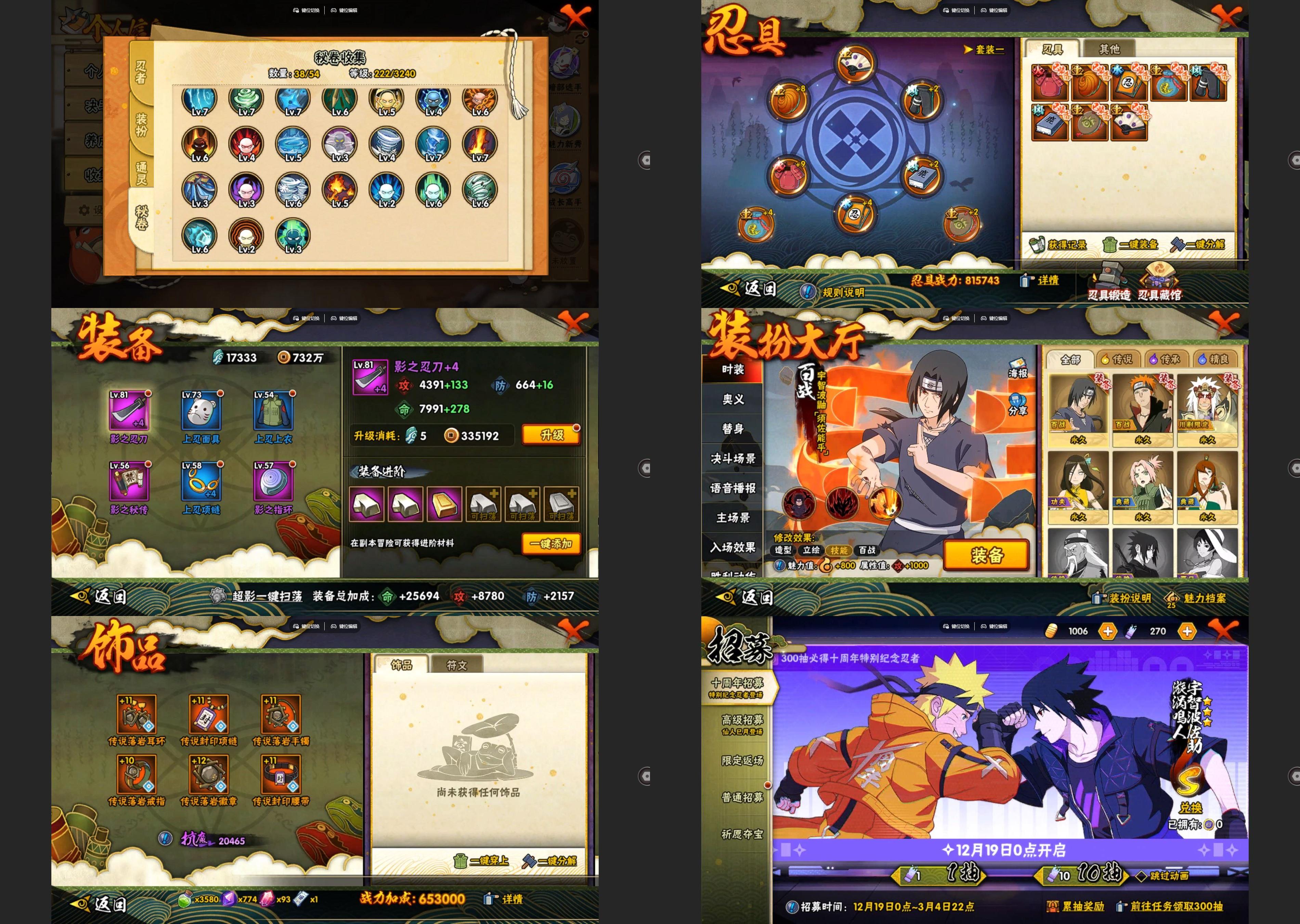 【S忍者】,春野樱「忍界大战」,自来也「舞之豪杰」,旗木卡卡西「须佐能乎」,宇智波鼬「须佐能乎」,佩恩「天道」,
